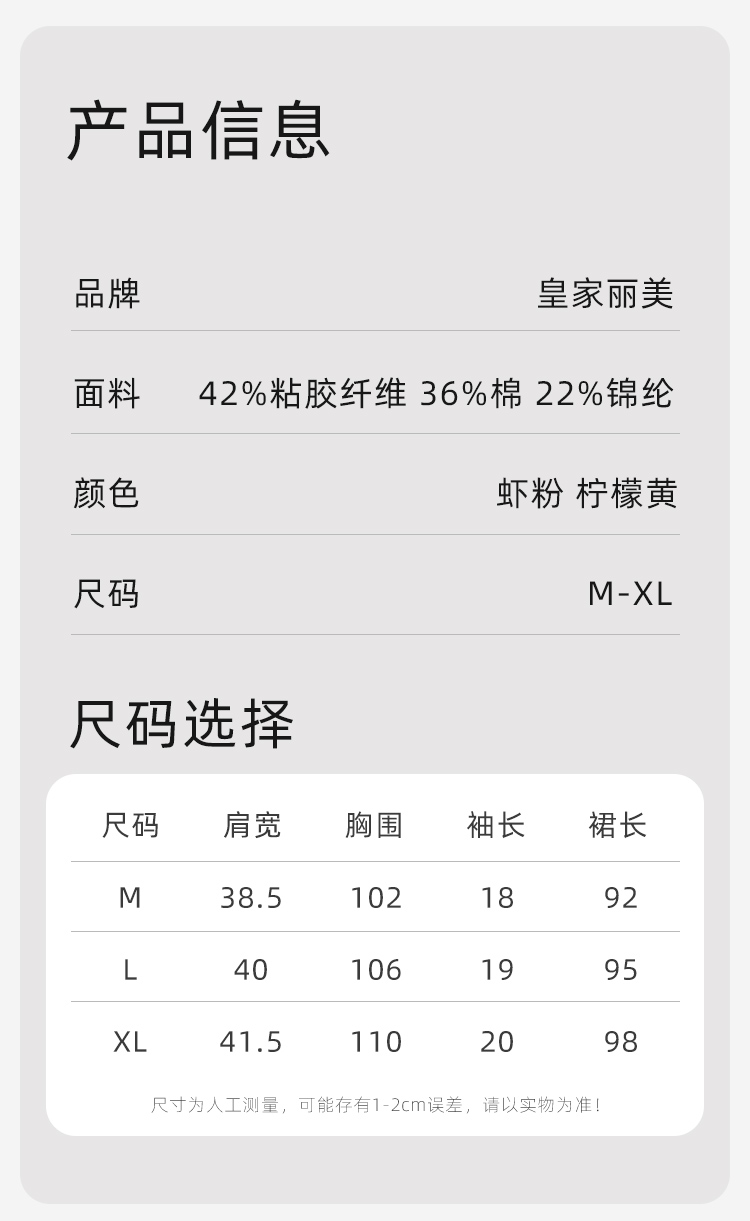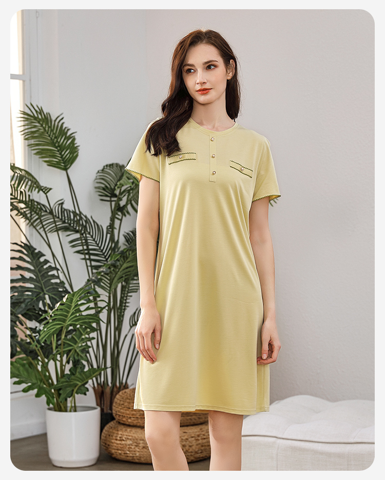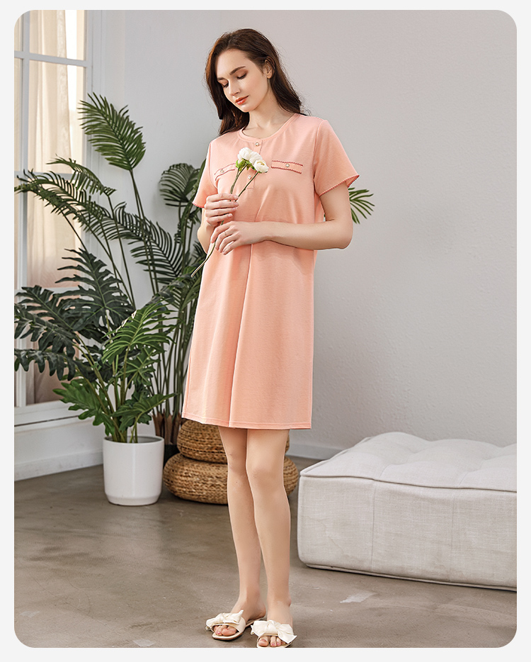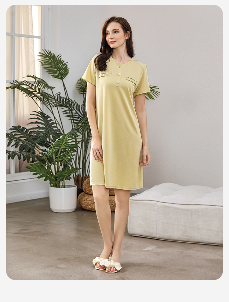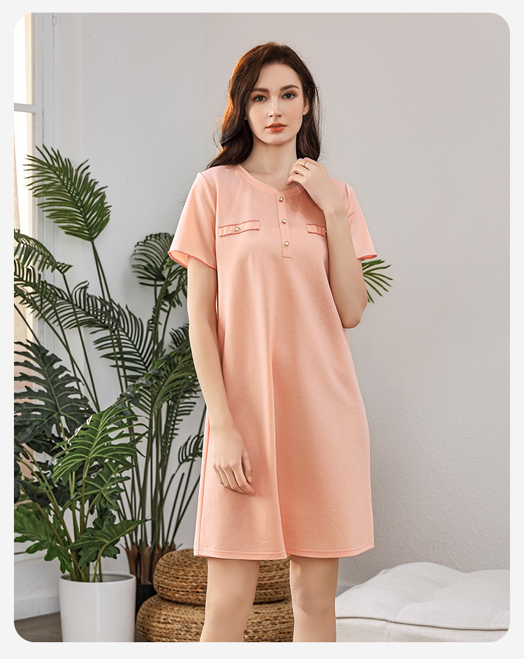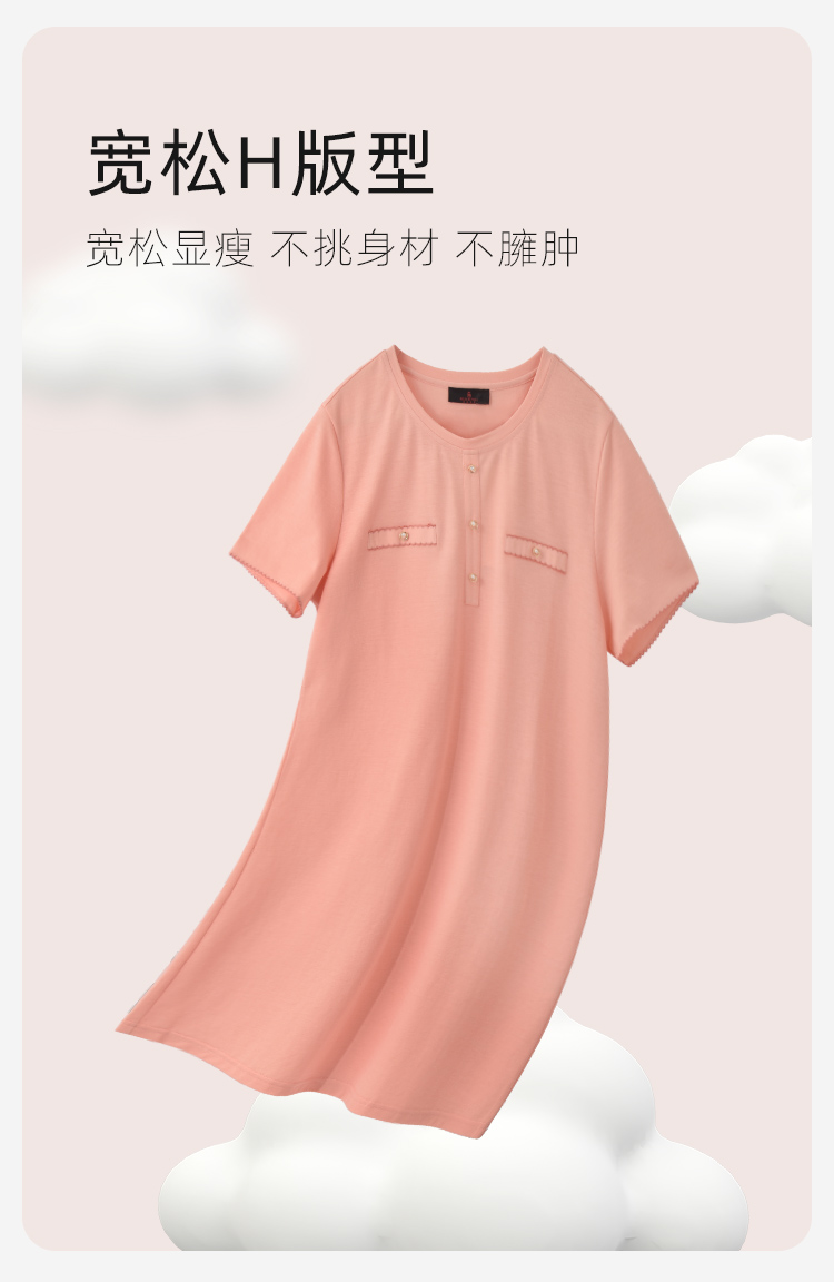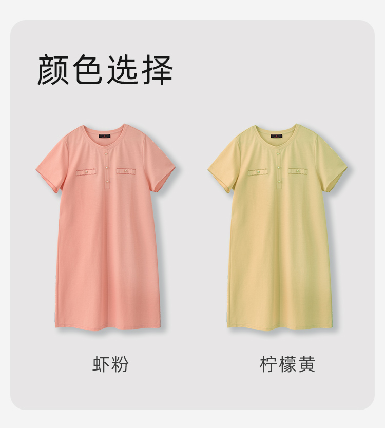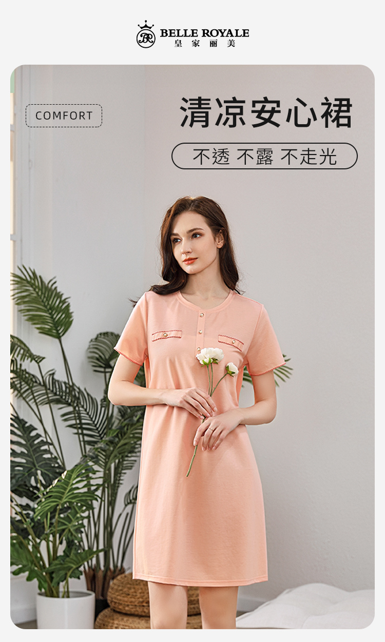 皇家丽美睡衣女夏季可外穿薄款家居服简约圆领舒适短袖睡裙JJQ9918