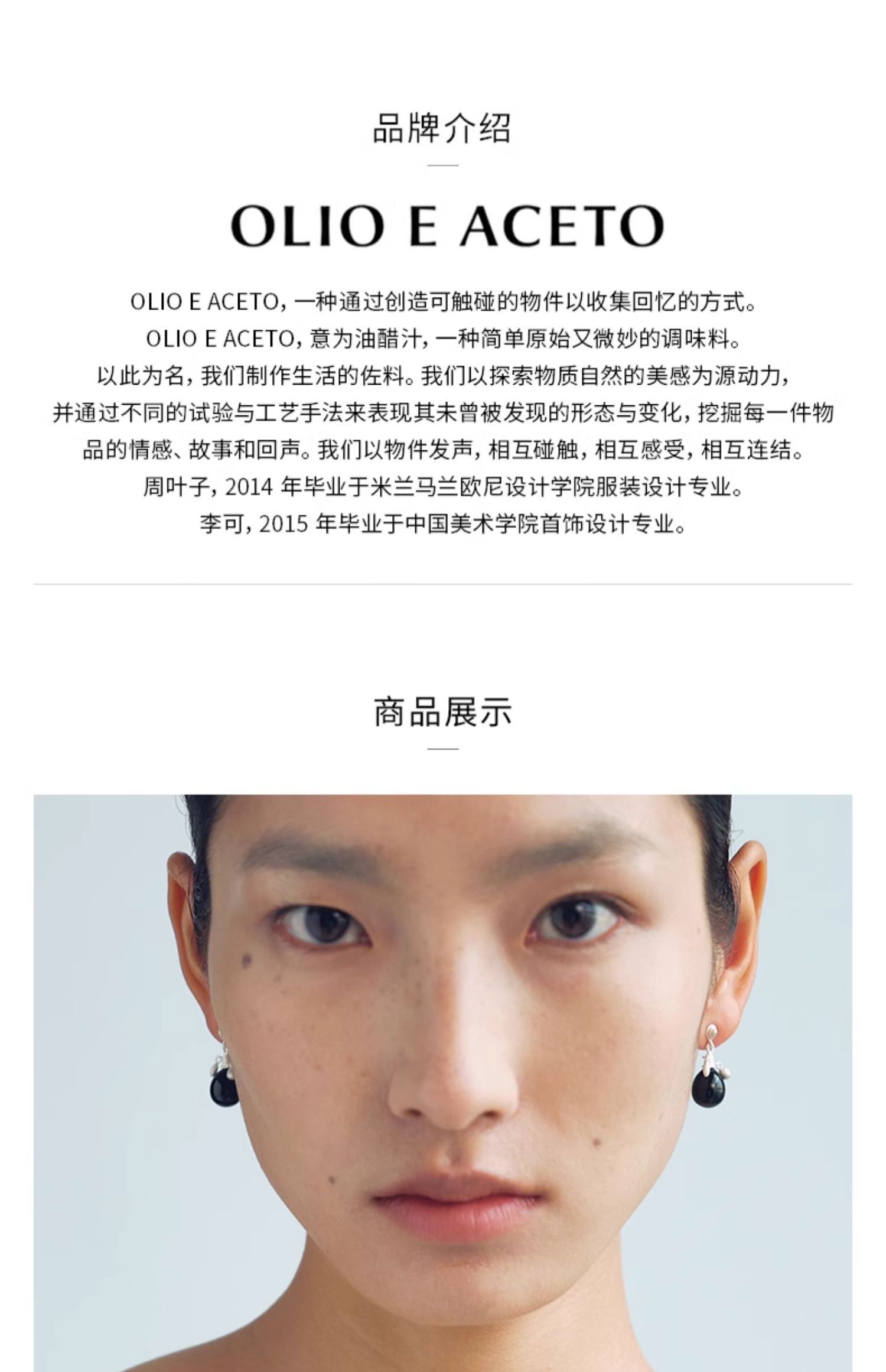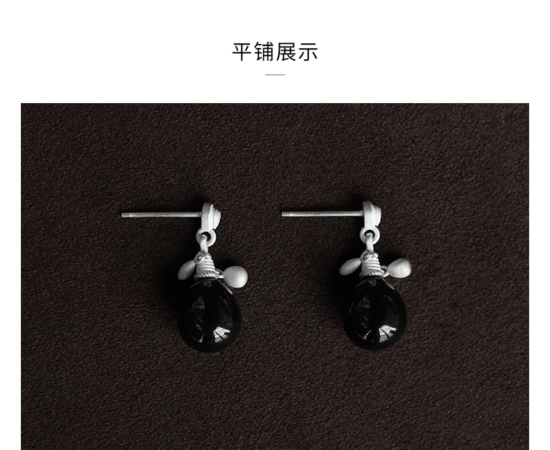 【Olio E Aceto】蕾虎纯银黑灰玛瑙珍珠圆球耳环2025春装新款配饰