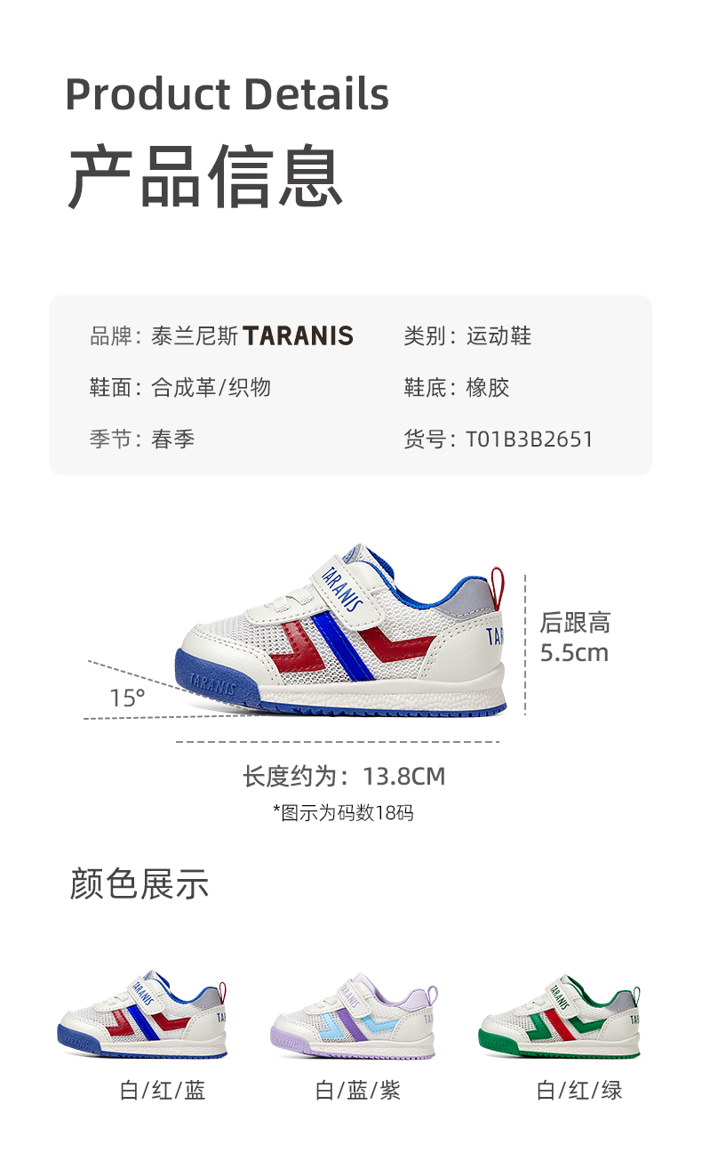 泰兰尼斯夏季婴童段柔软舒适机能学步鞋T01B3B2651