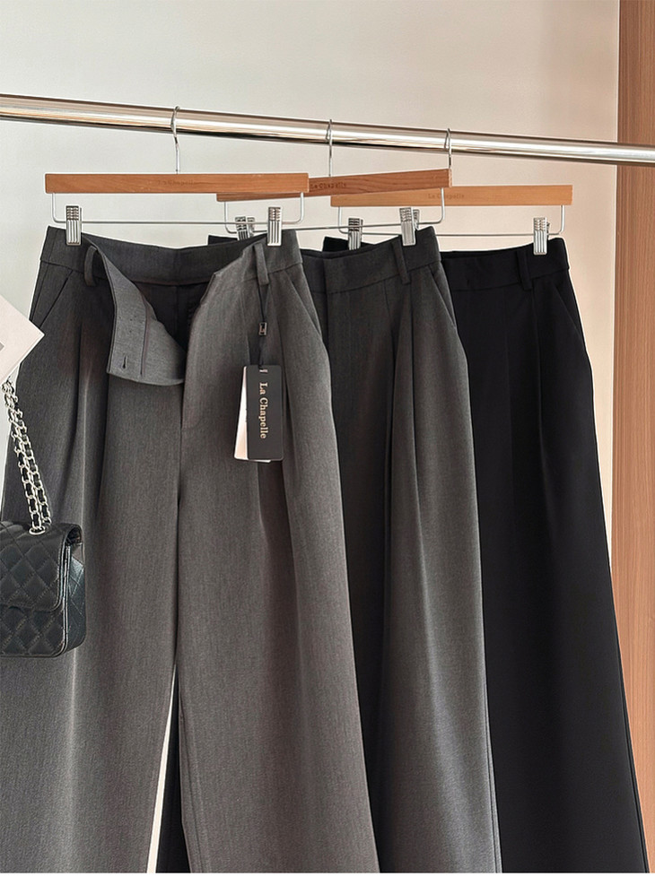专柜实拍【垂感通勤西裤】拉夏贝尔/La Chapelle实穿百搭/长期主义高腰压褶通勤显瘦休闲长裤