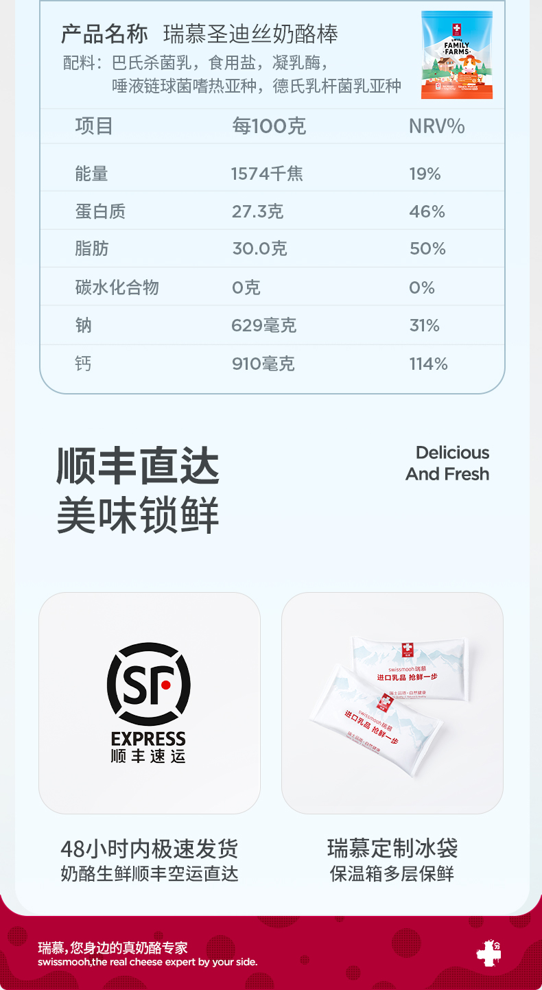 【送正装】瑞慕瑞士原装进口儿童补钙芝士奶酪棒奶酪140g*2袋/500g