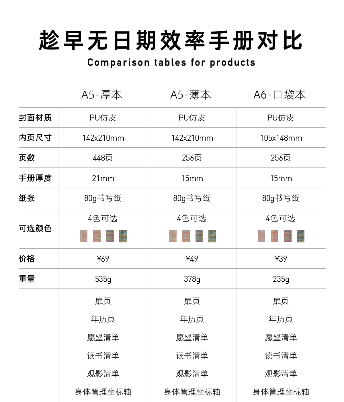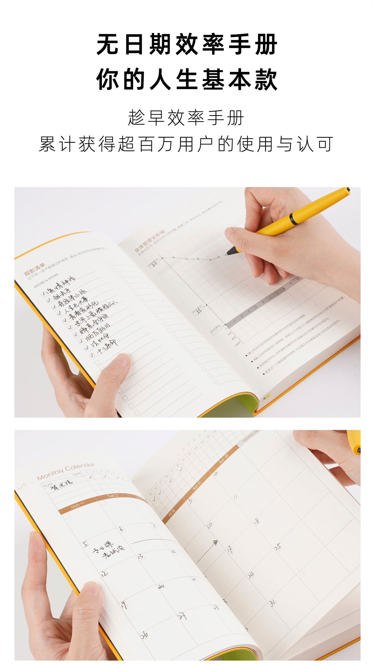 趁早编织系列自填日期效率手册A5厚本一天一页自律打卡手账本高颜值办公日程本每日计划本笔记本子记事本