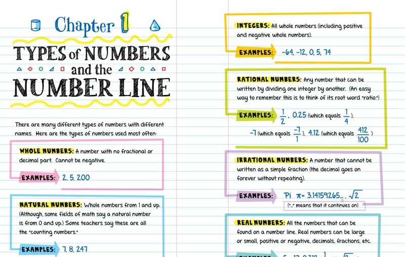 《Everything You Need to Ace Math in One Big Fat Notebook》其中一章讲正数负数的,可以看到因为叫Notebook,所以还特意用了笔记本线格的排版形式。开章还是讲概念,不得不说这种学习方法对词汇量真的是很有帮助。