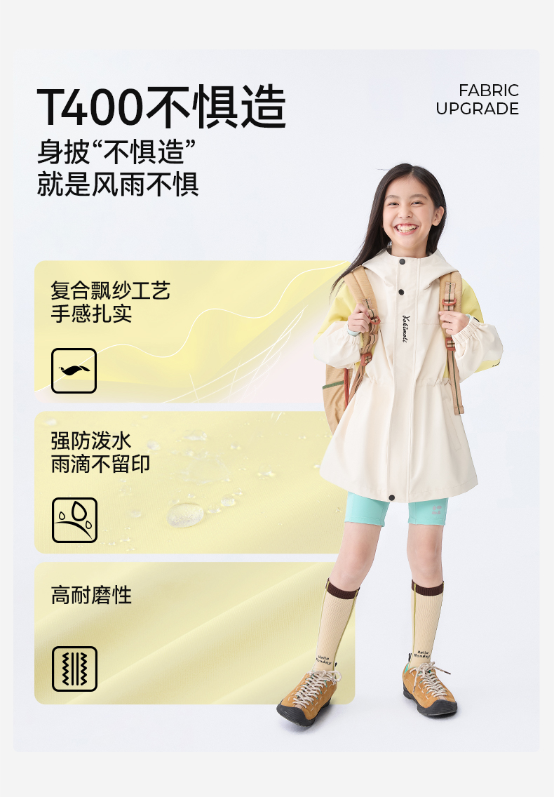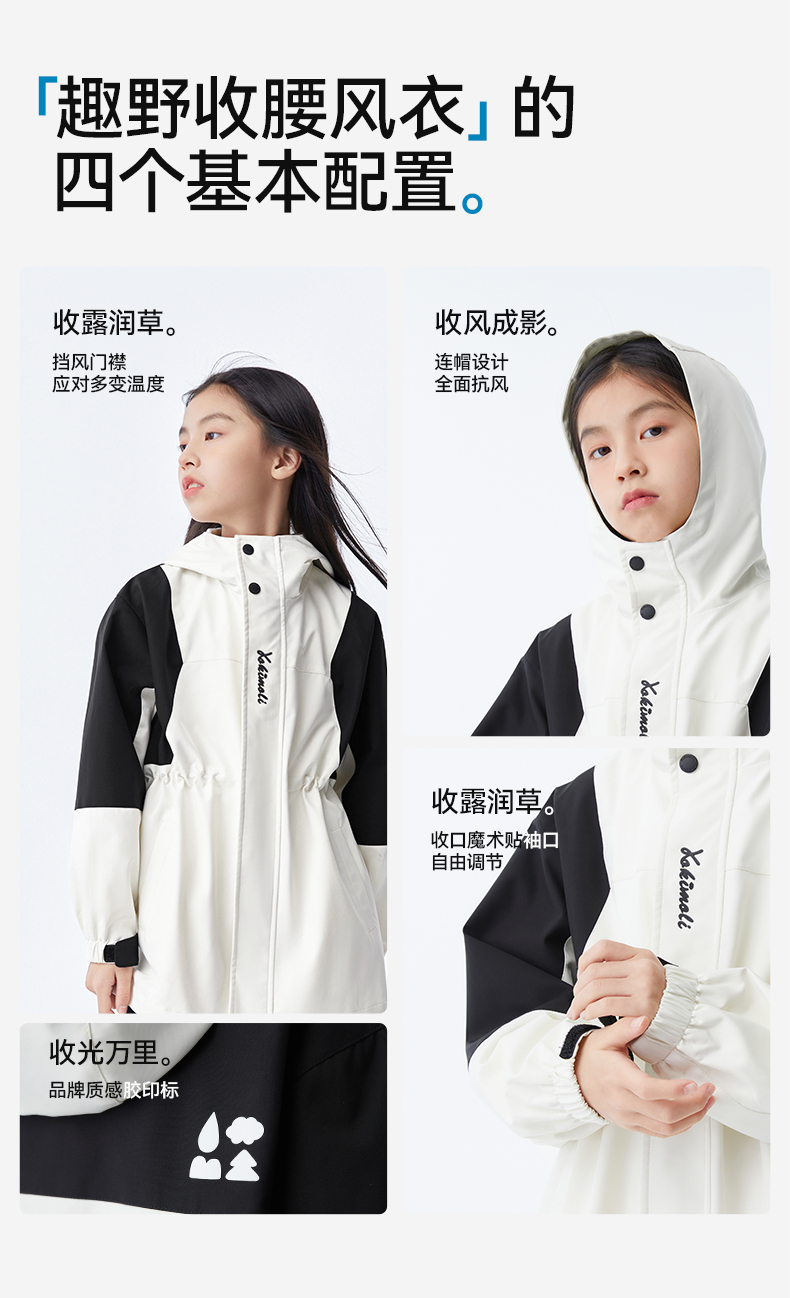 【品牌优选】【收腰三防风衣】森林棠25春款“不惧造”亲子款女拼色连帽风衣外套40832403