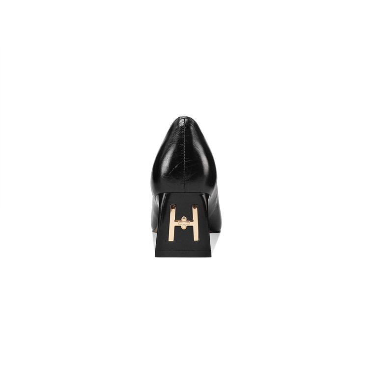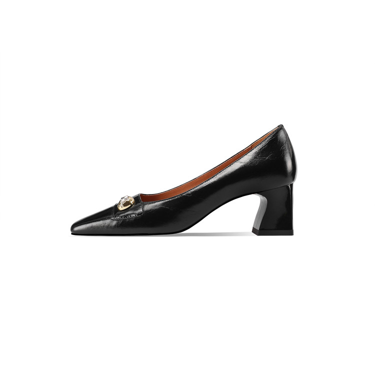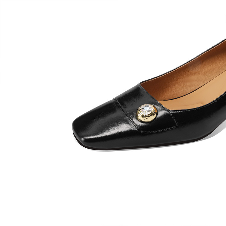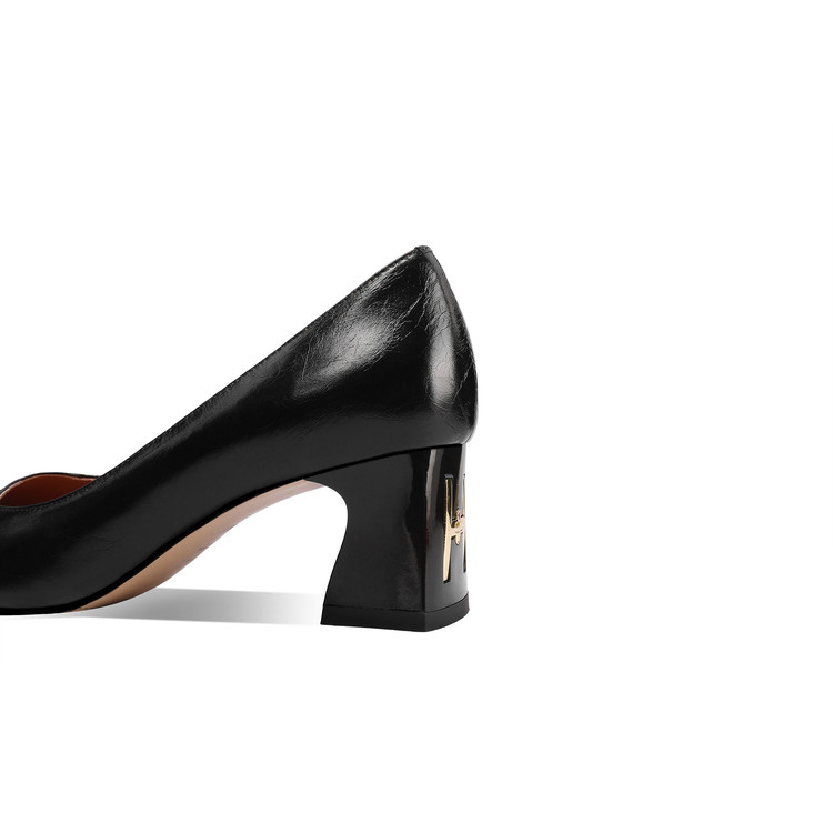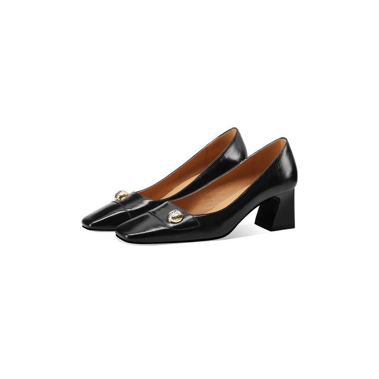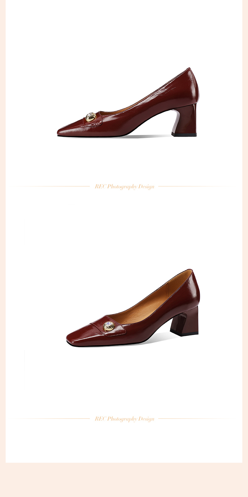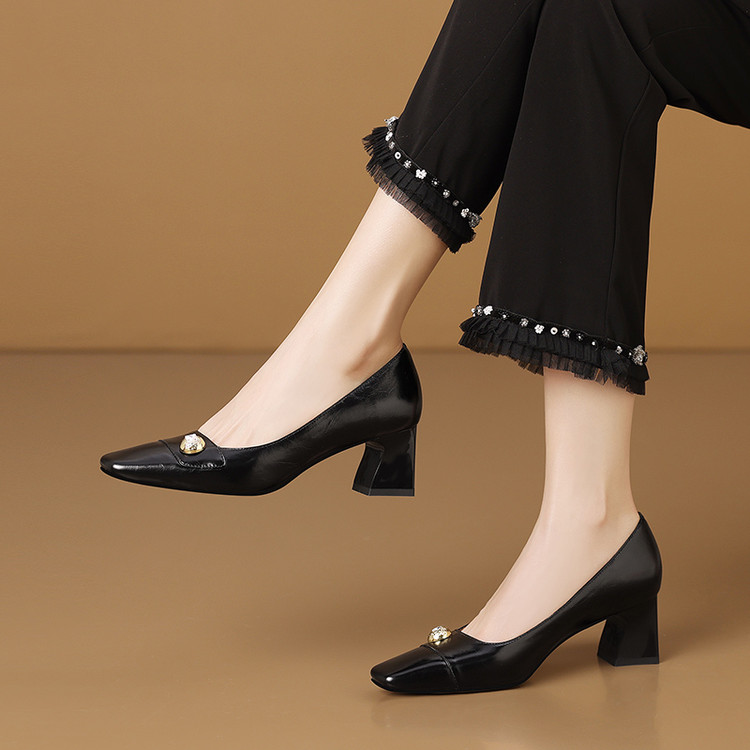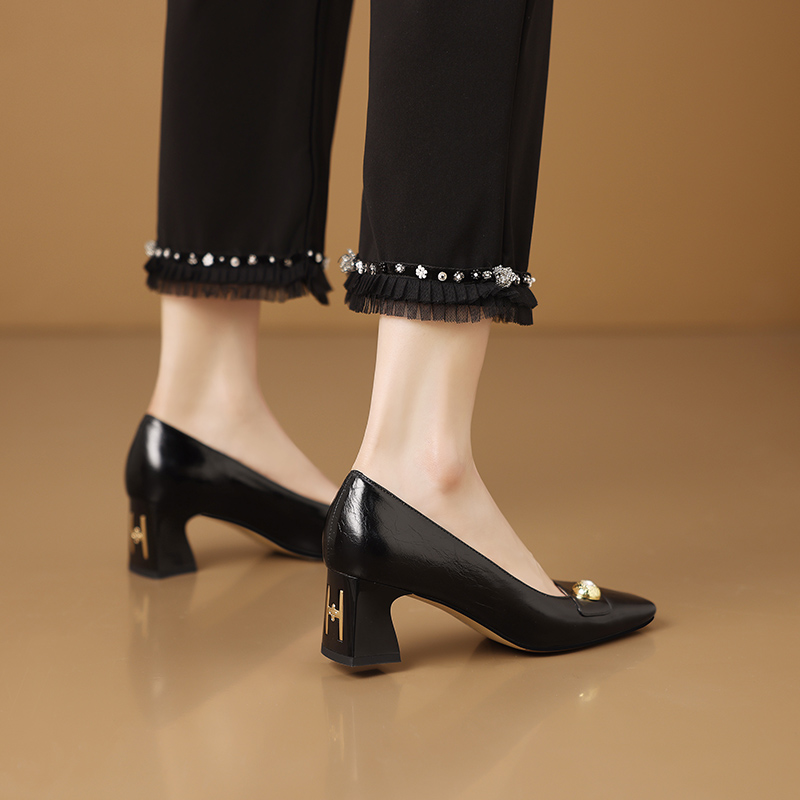 【预售5天】真皮方头法式复古浅口中跟单鞋女粗跟时尚百搭酒红色女鞋子HY&H3620