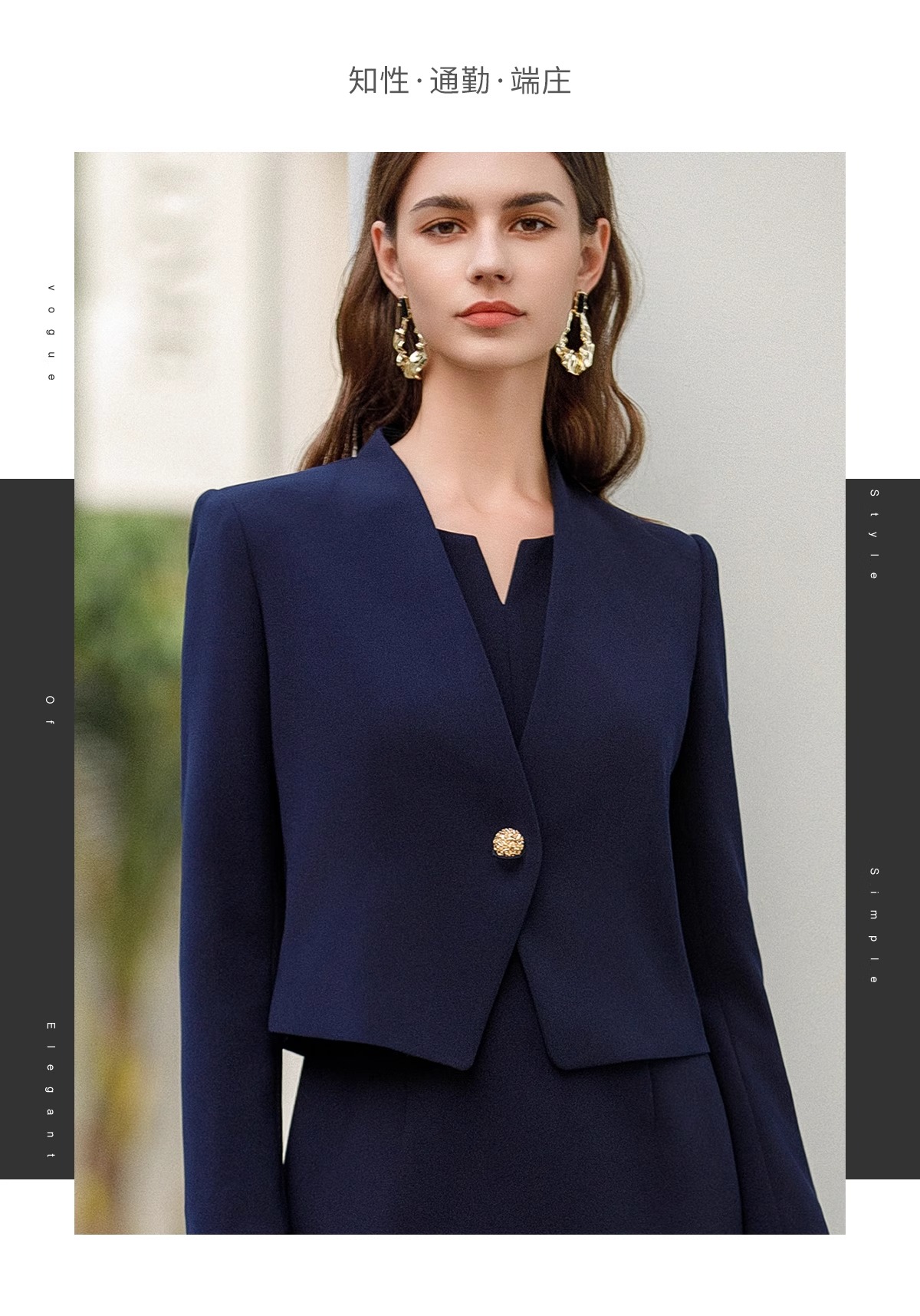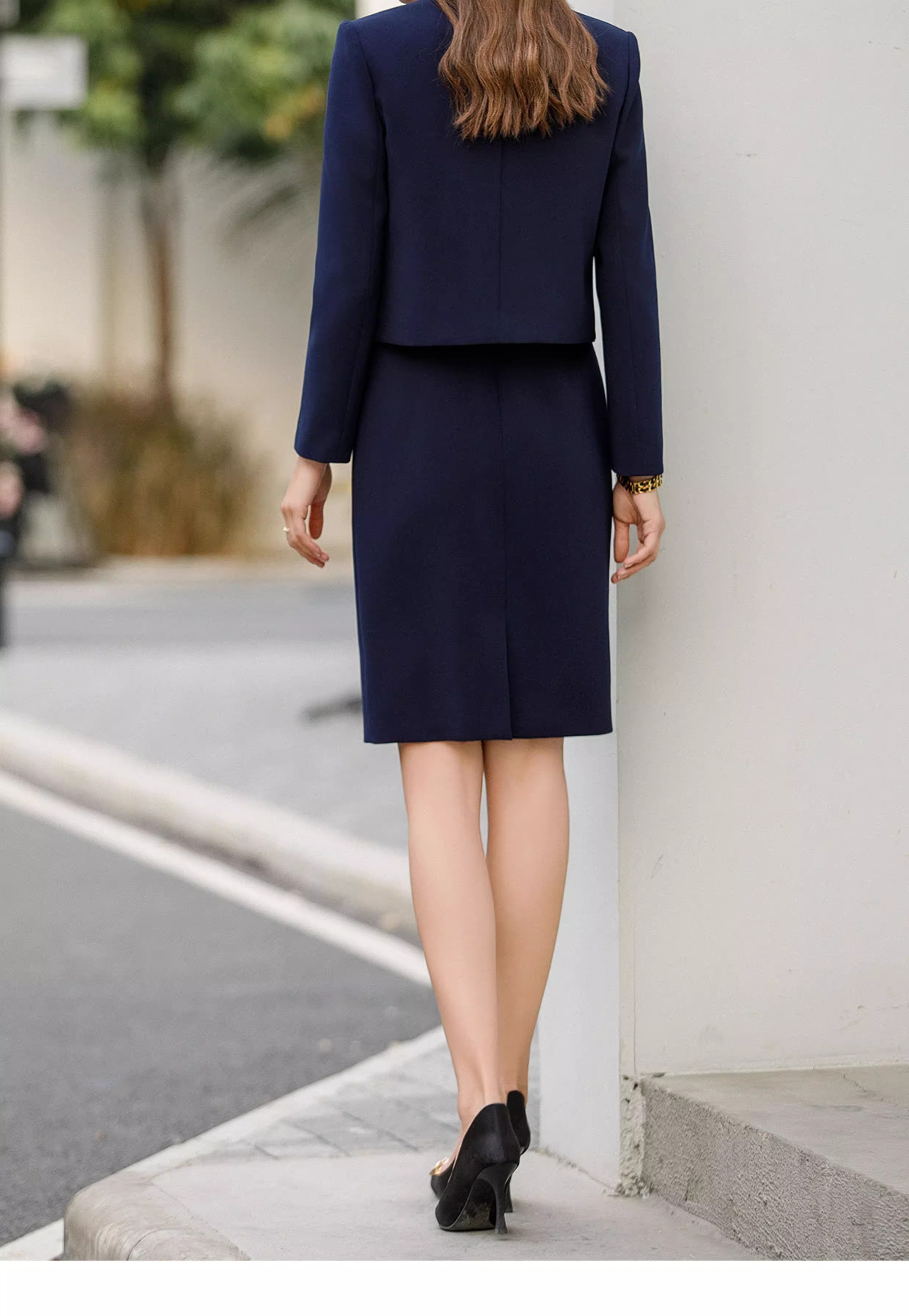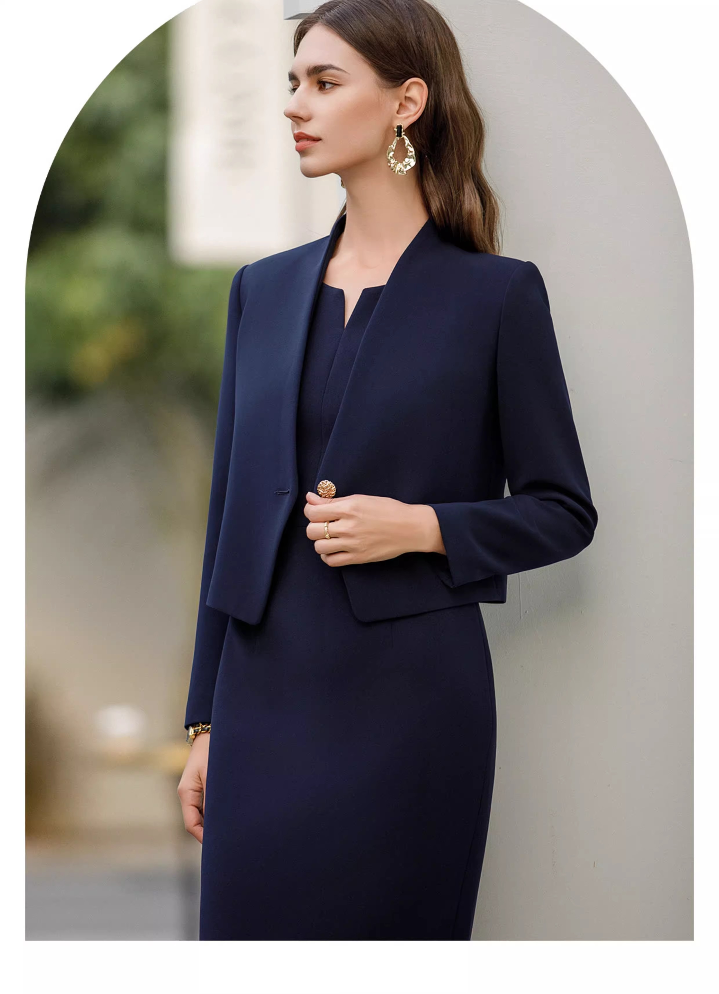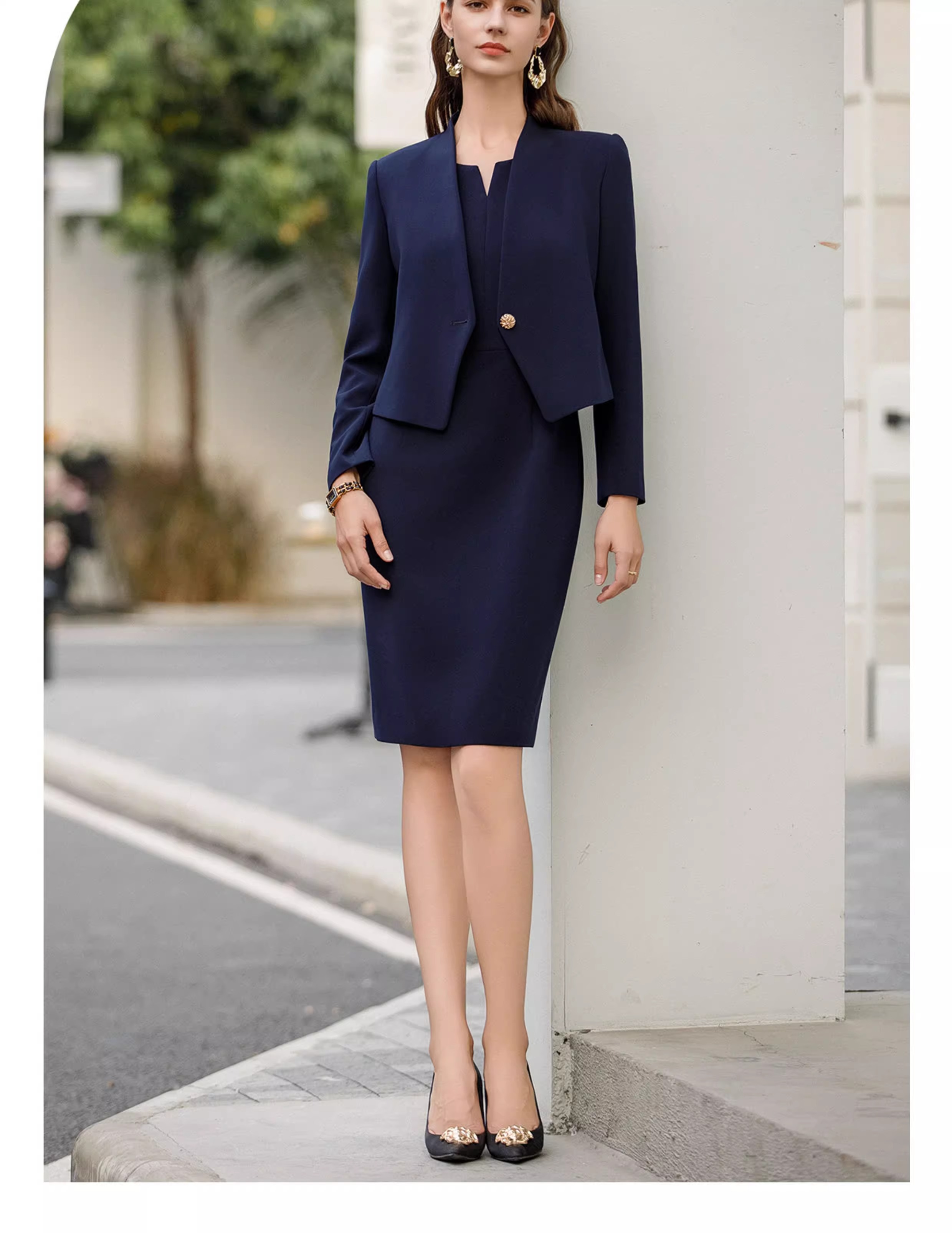 IWY/春季新款藏青色西装套装女高端气质英伦风收腰内搭职业连衣裙C1968+Q1071