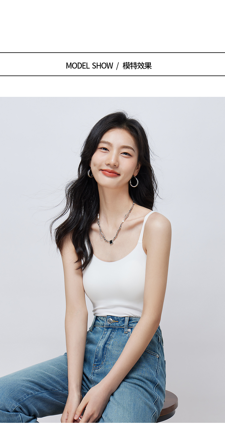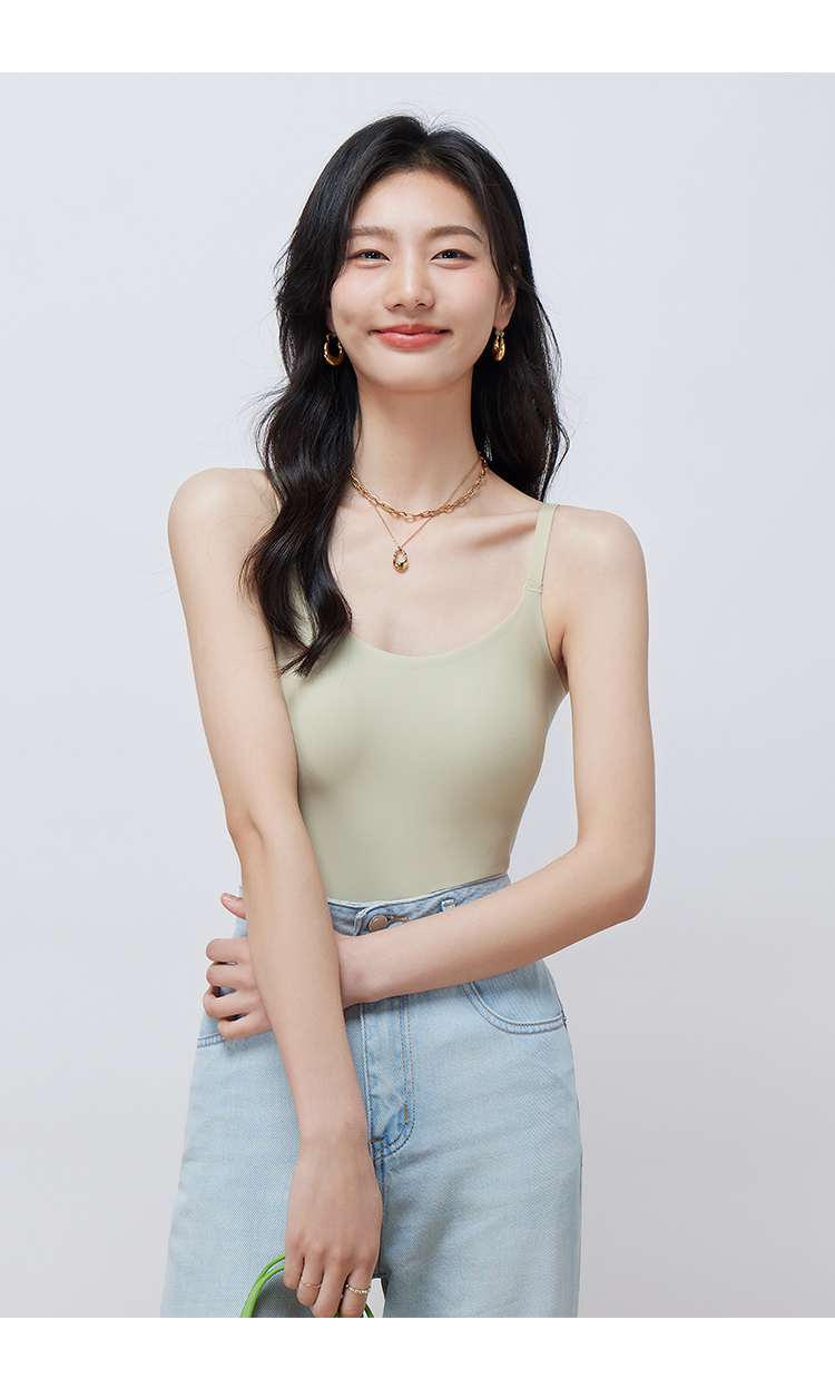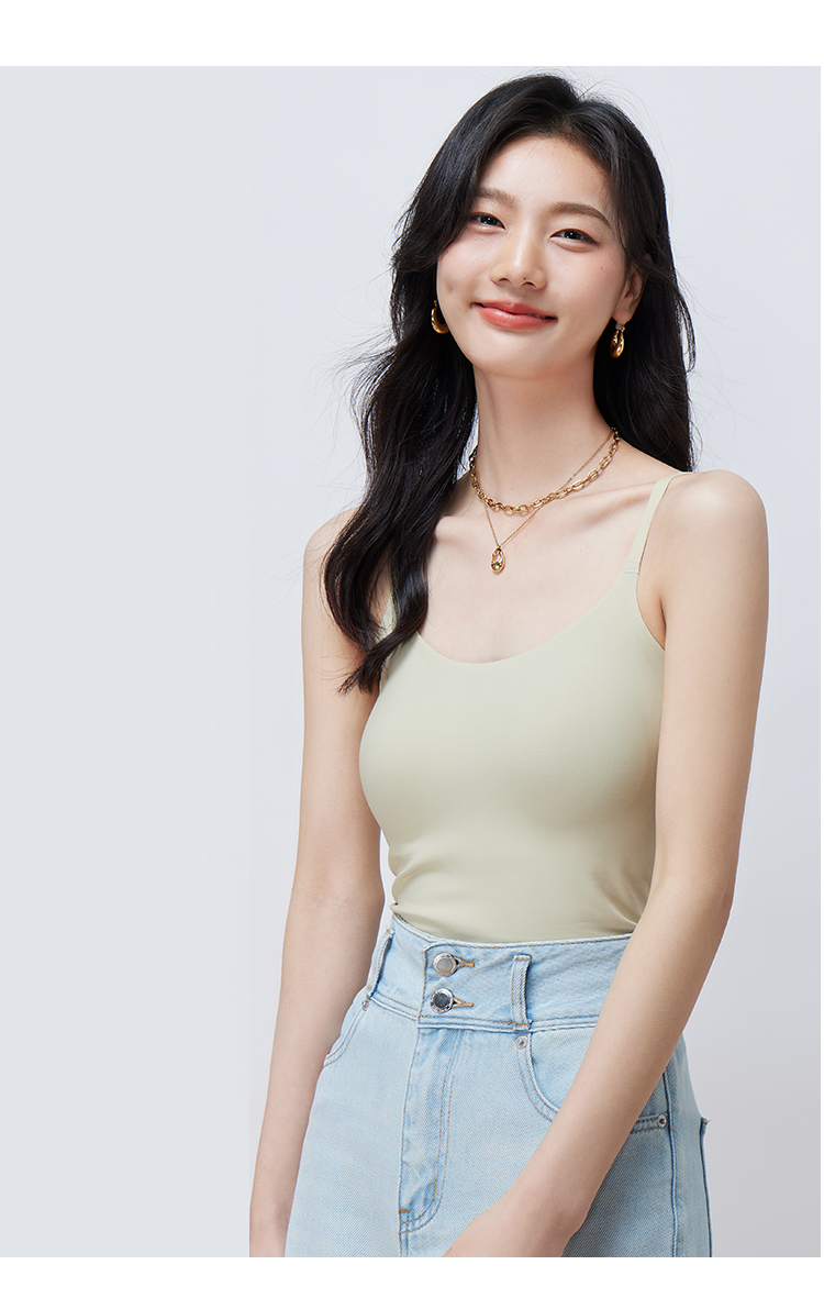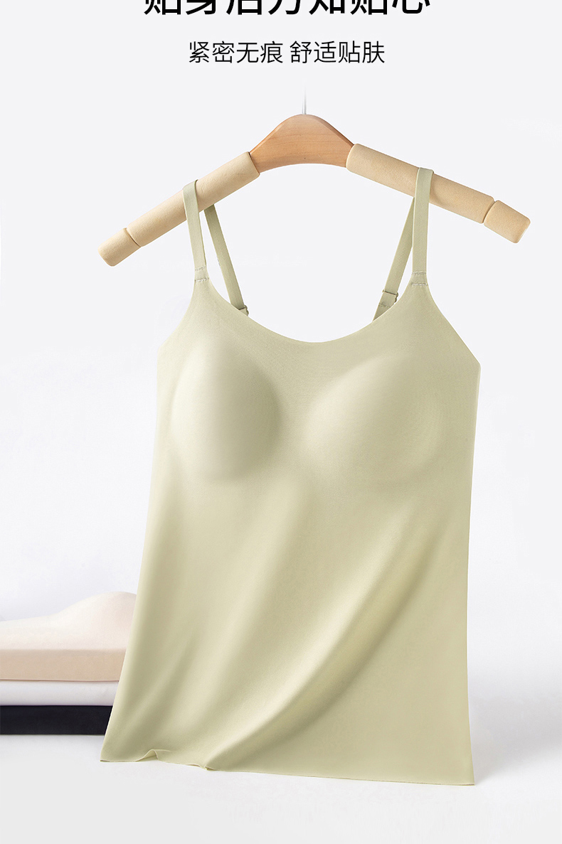 LILY MOON冰丝凉感无痕带胸杯长款吊带背心——力优甄选