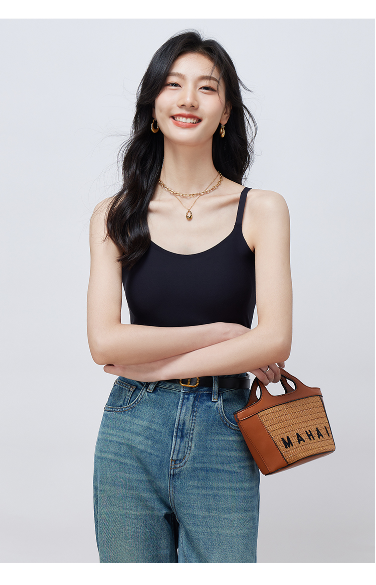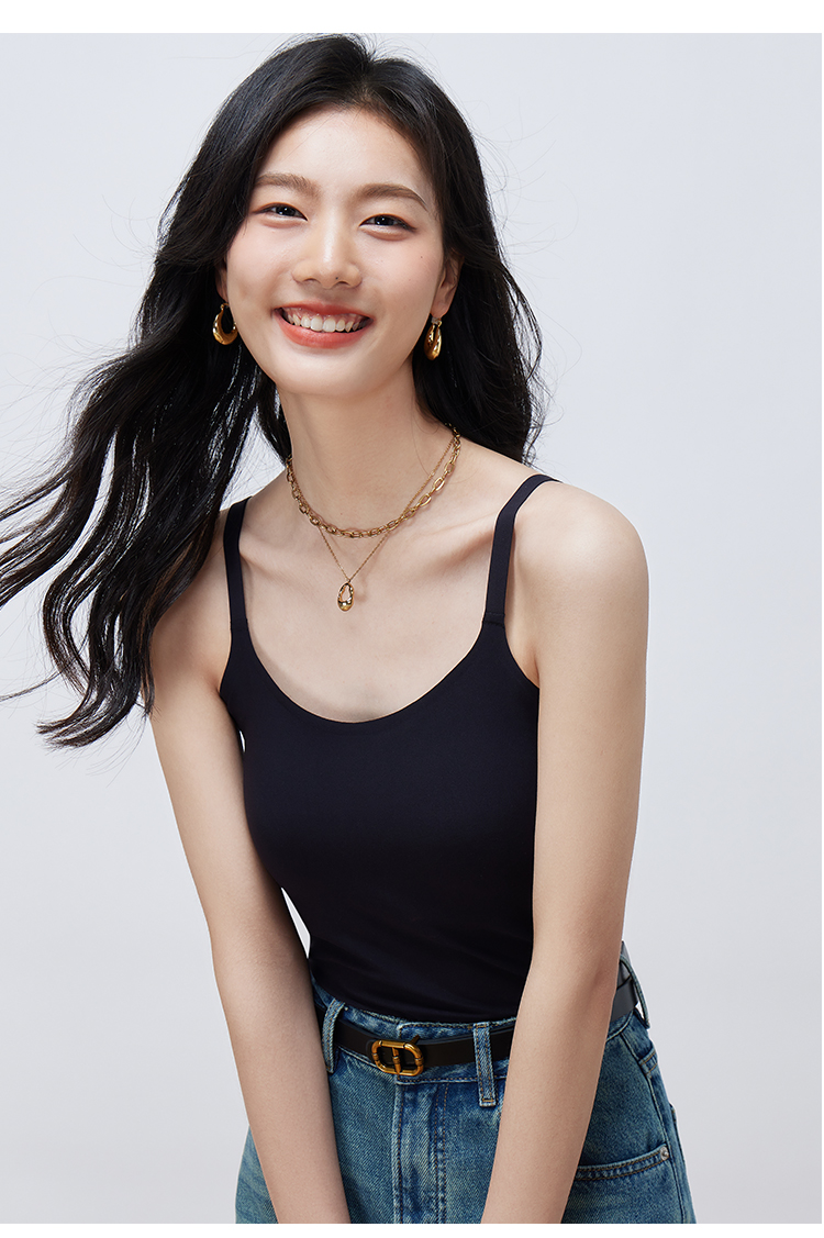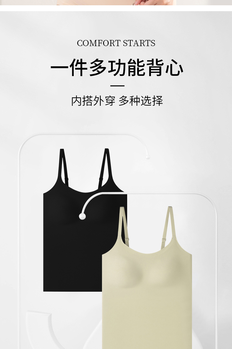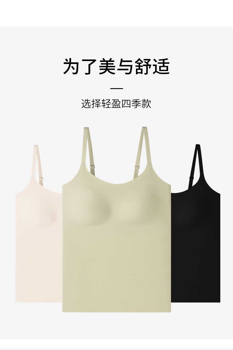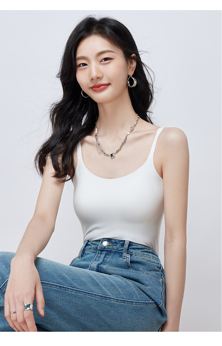 LILY MOON冰丝凉感无痕带胸杯长款吊带背心——力优甄选