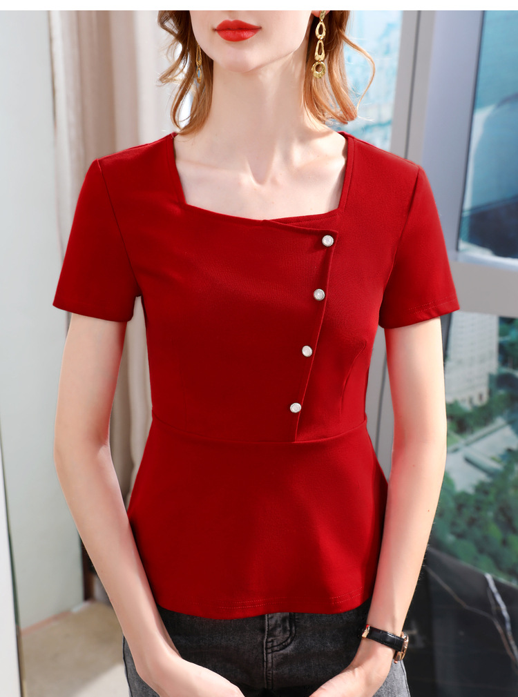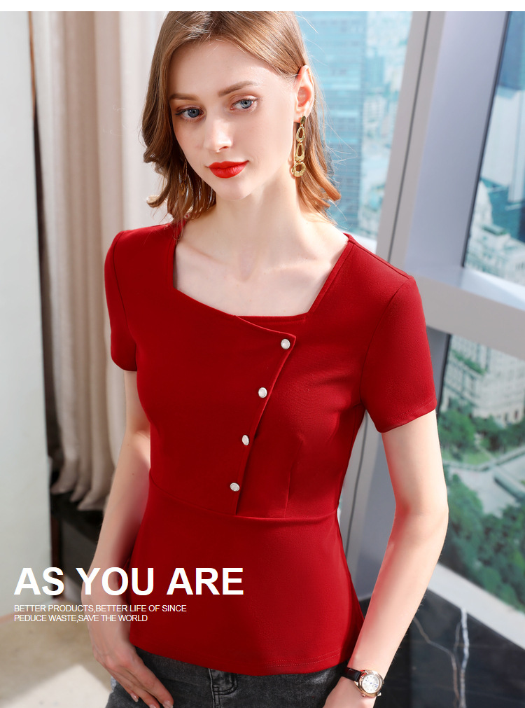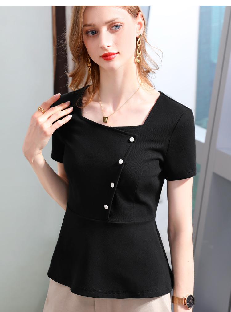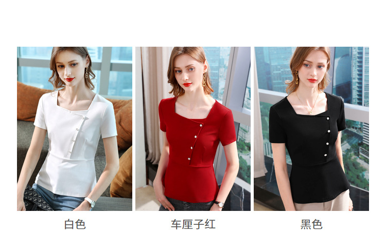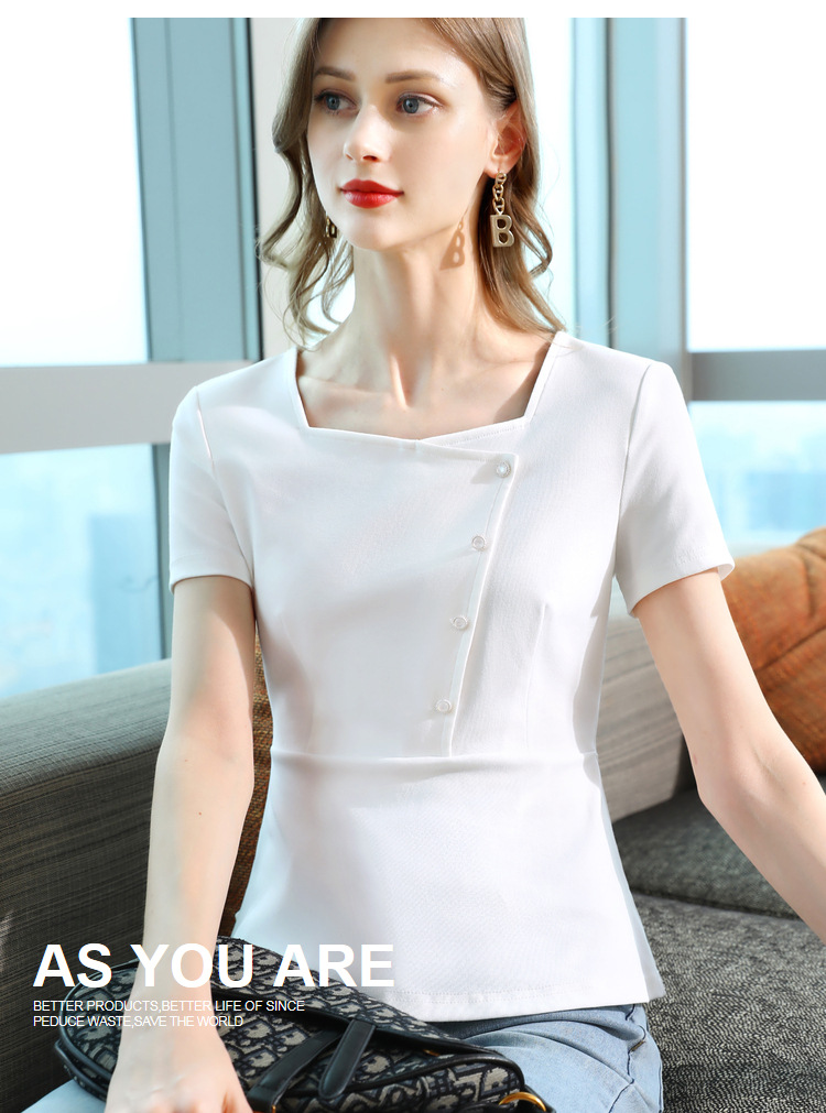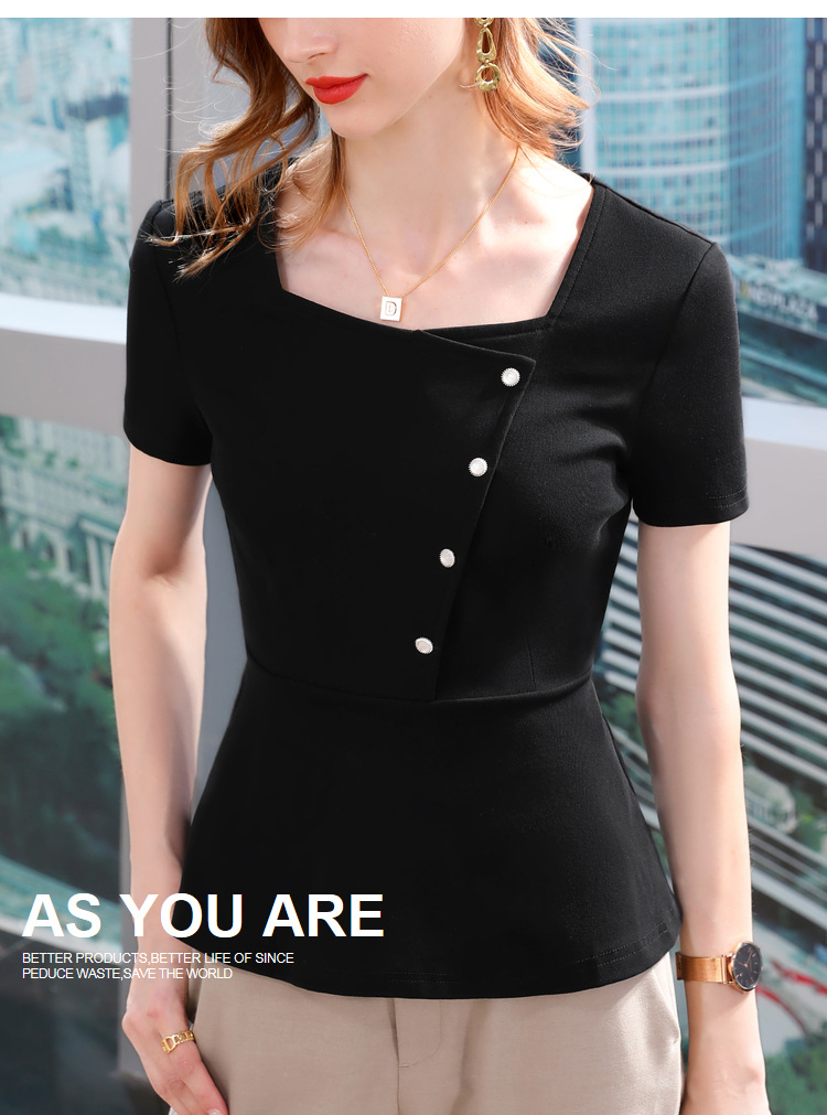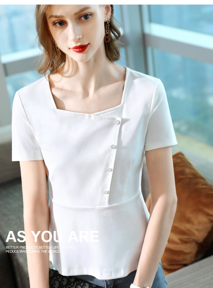 轻熟风扣子方领棉体恤,气质伞摆收腰上衣SG-T2C0150