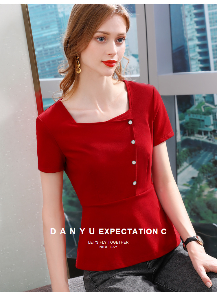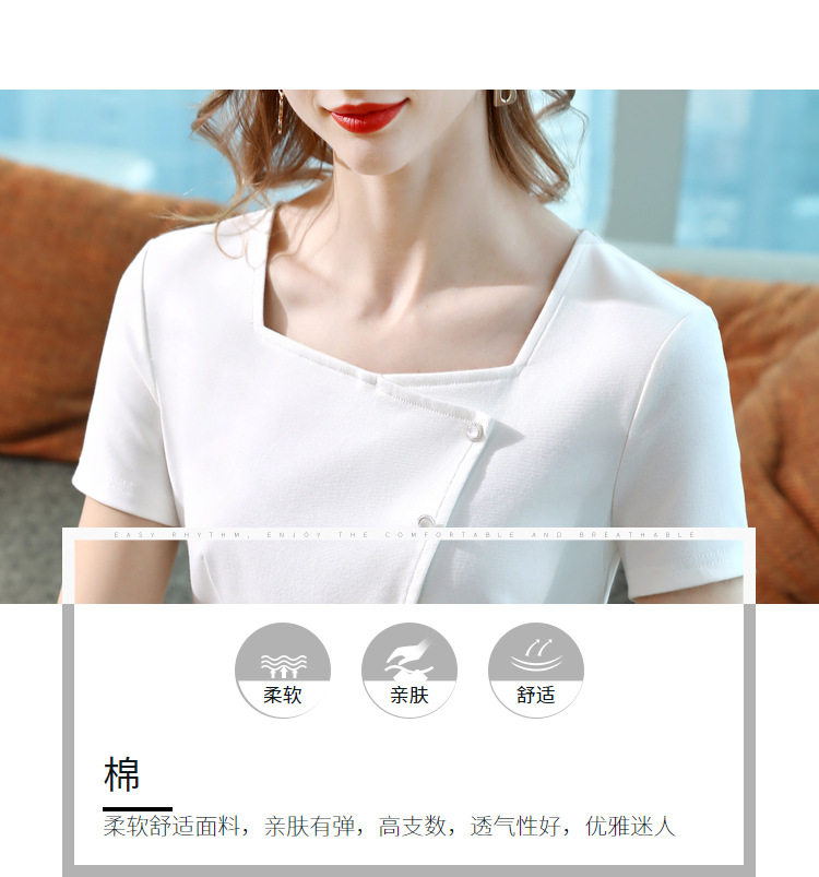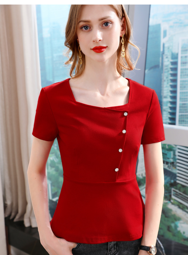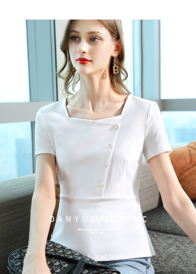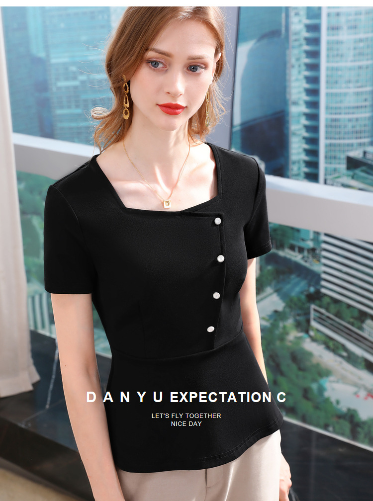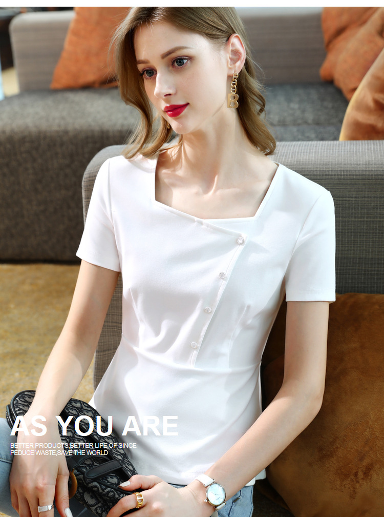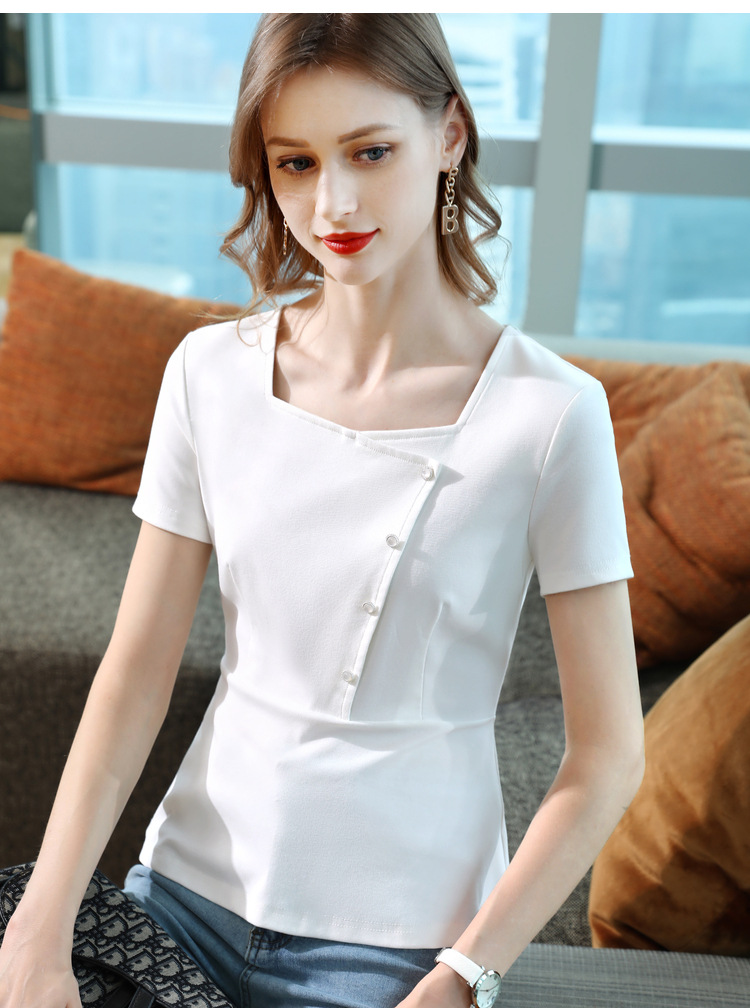 轻熟风扣子方领棉体恤,气质伞摆收腰上衣SG-T2C0150