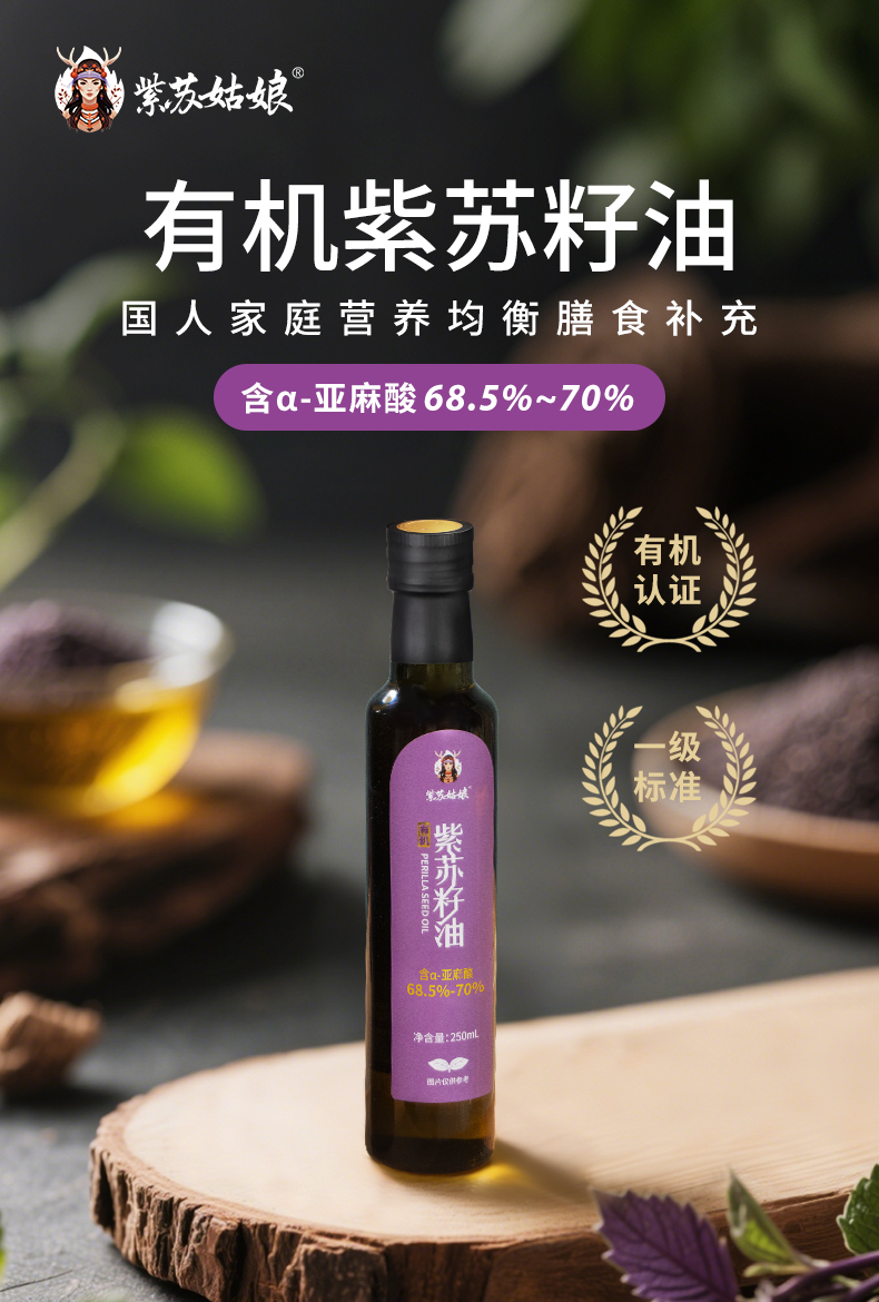 紫苏姑娘有机紫苏籽油 含α-亚麻酸68.5%~70%