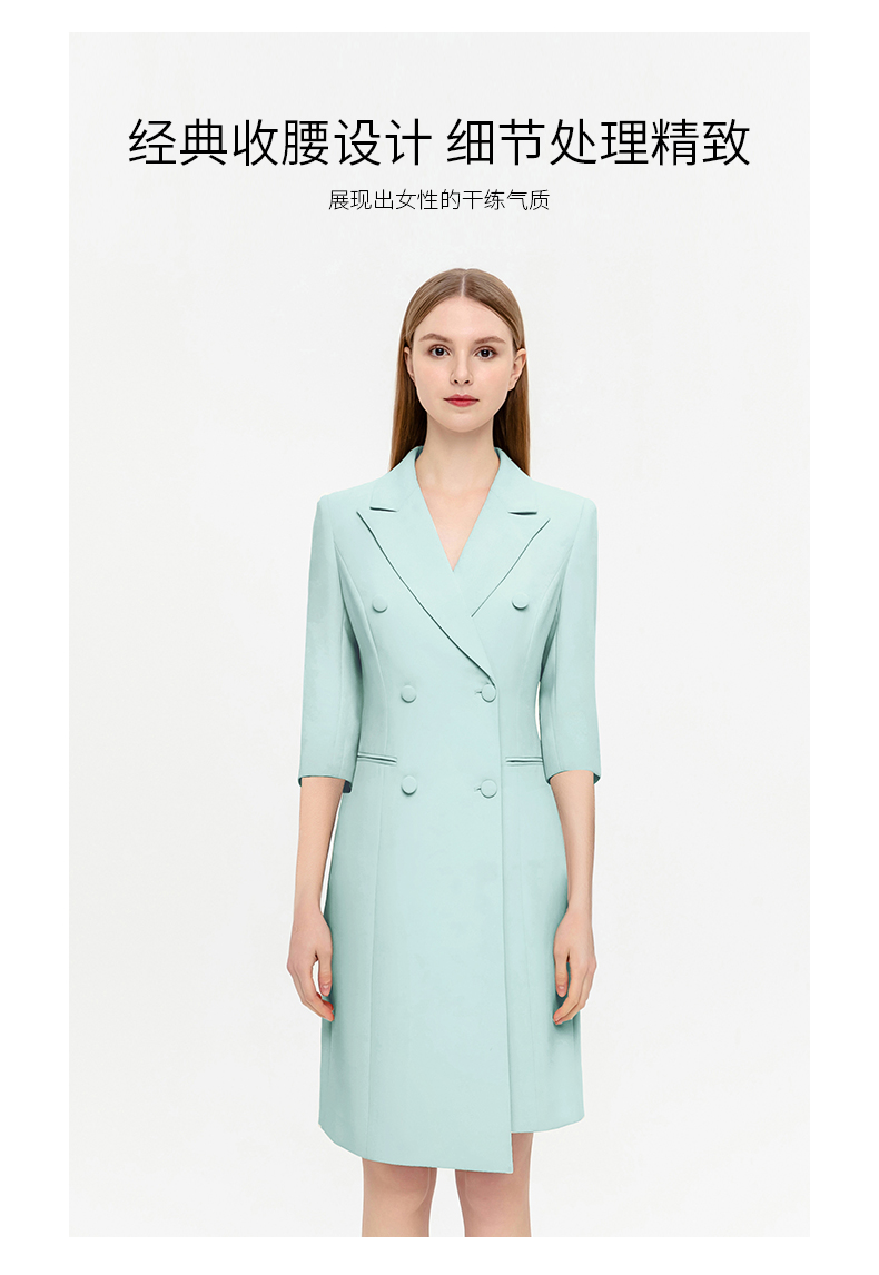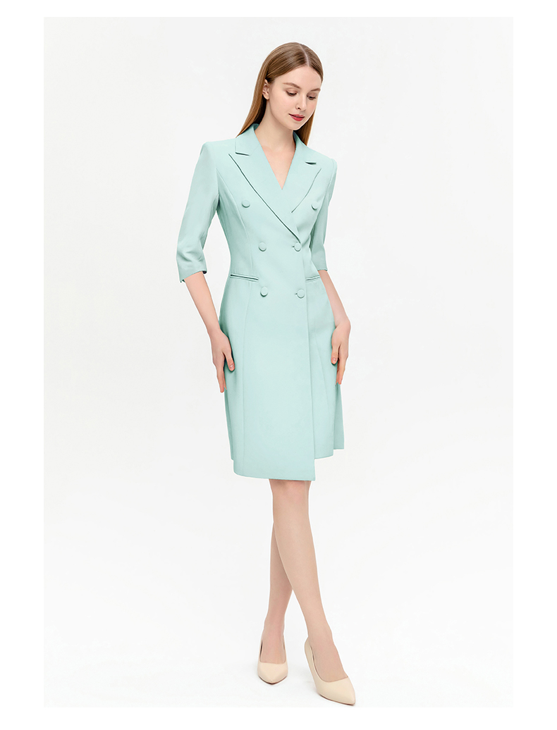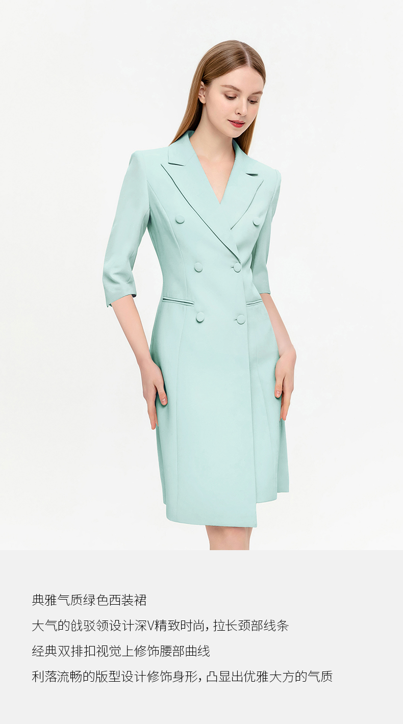 IWY/夏季新品绿色七分袖连衣裙半裙通勤干练职业装女高级感西装裙Q14253