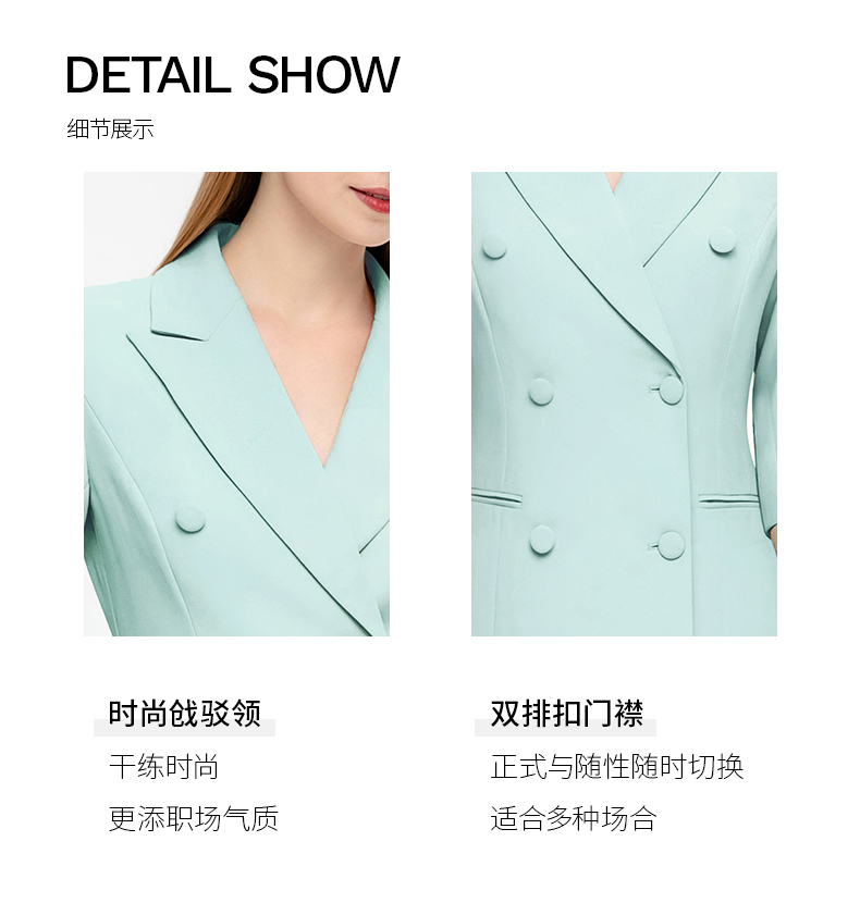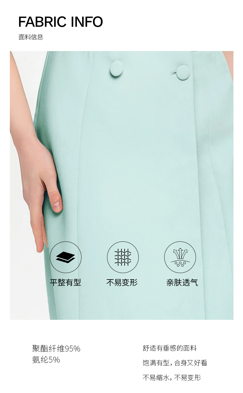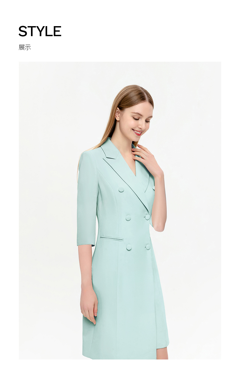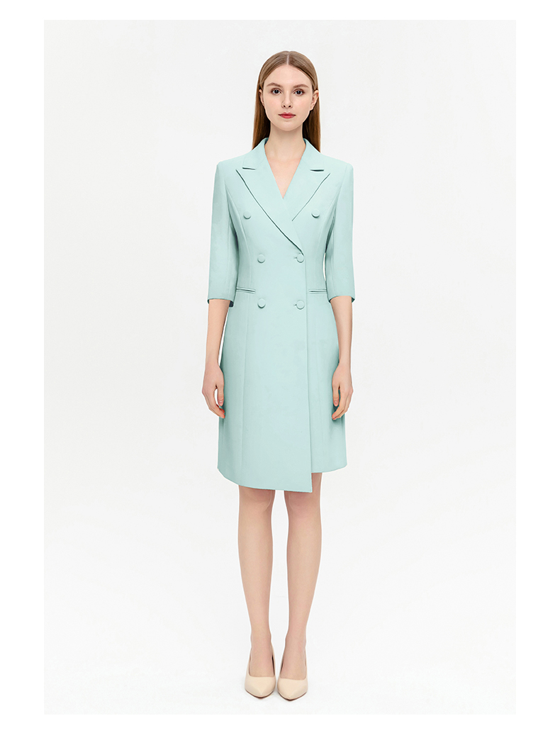 IWY/夏季新品绿色七分袖连衣裙半裙通勤干练职业装女高级感西装裙Q14253
