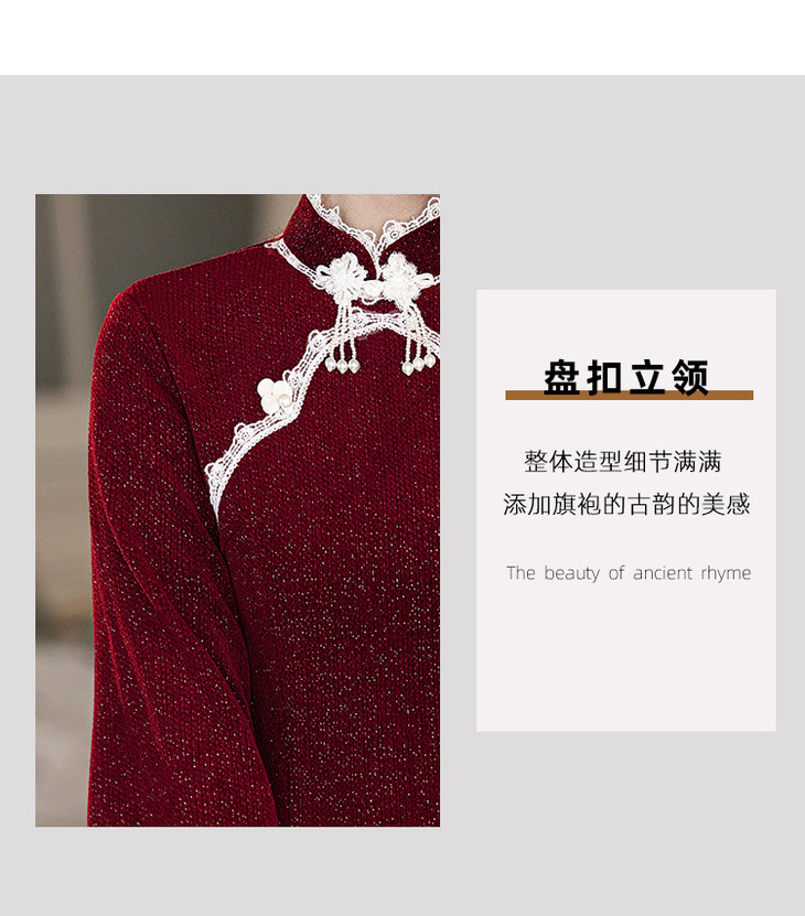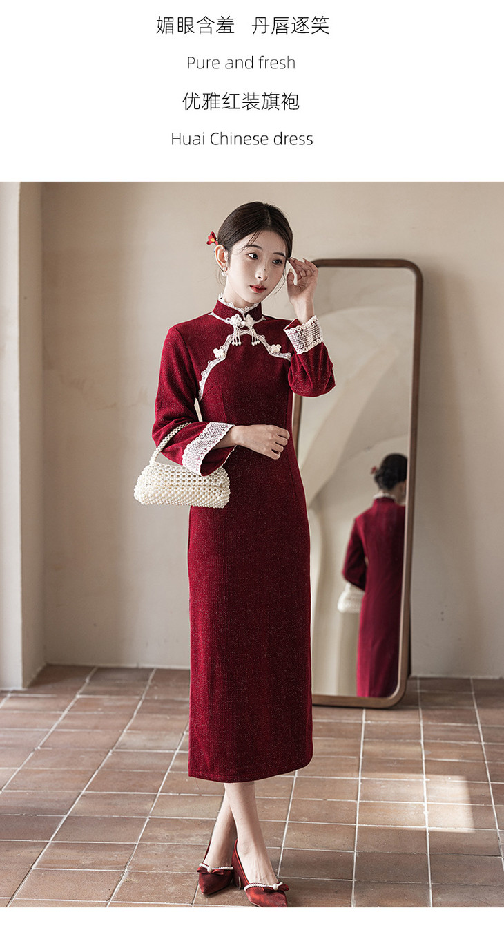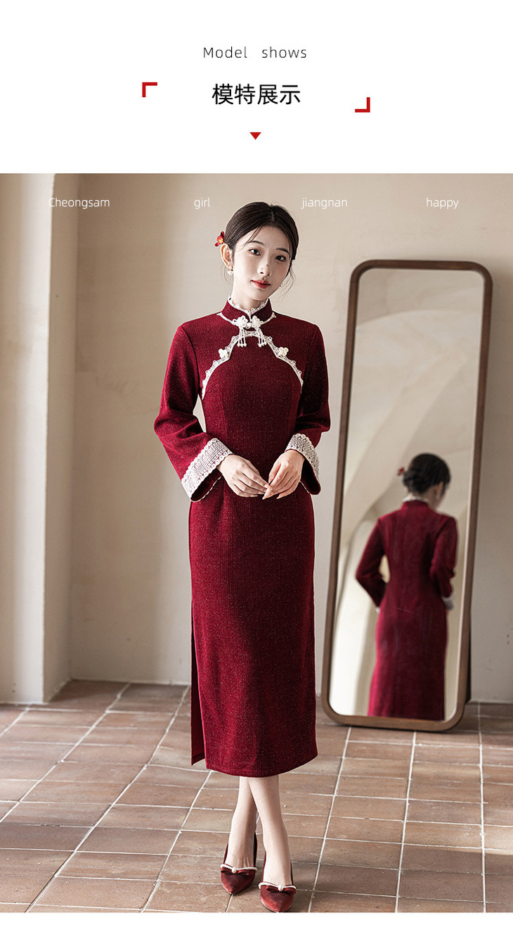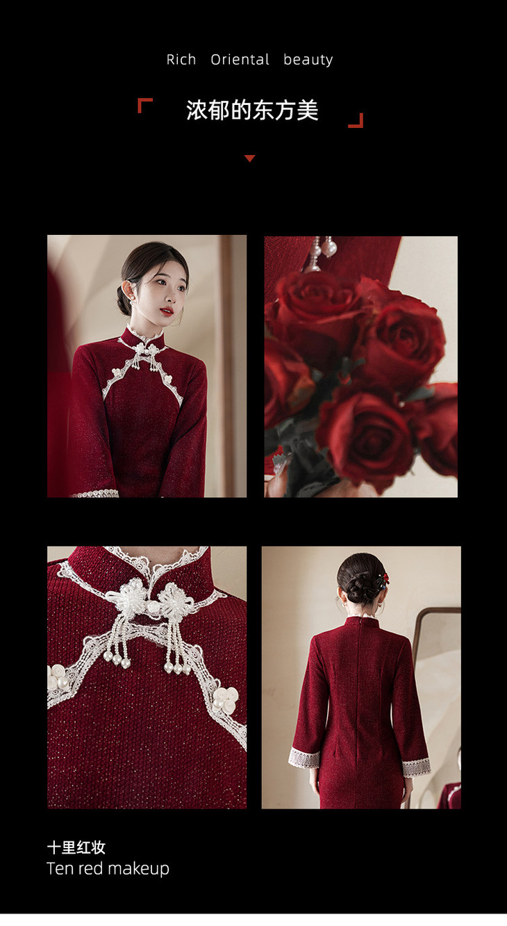 秋冬加绒红色旗袍敬酒服,新中式婚服订婚礼服LSB3329 商品图4