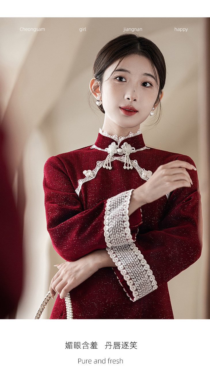 秋冬加绒红色旗袍敬酒服,新中式婚服订婚礼服LSB3329 商品图1