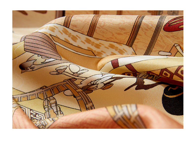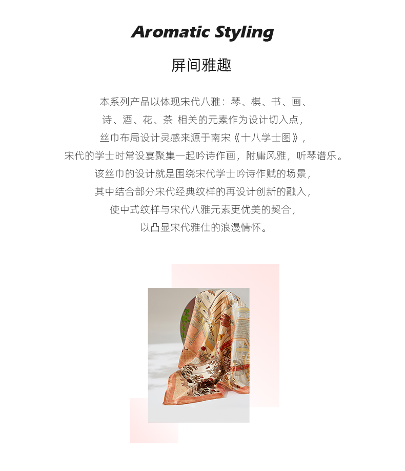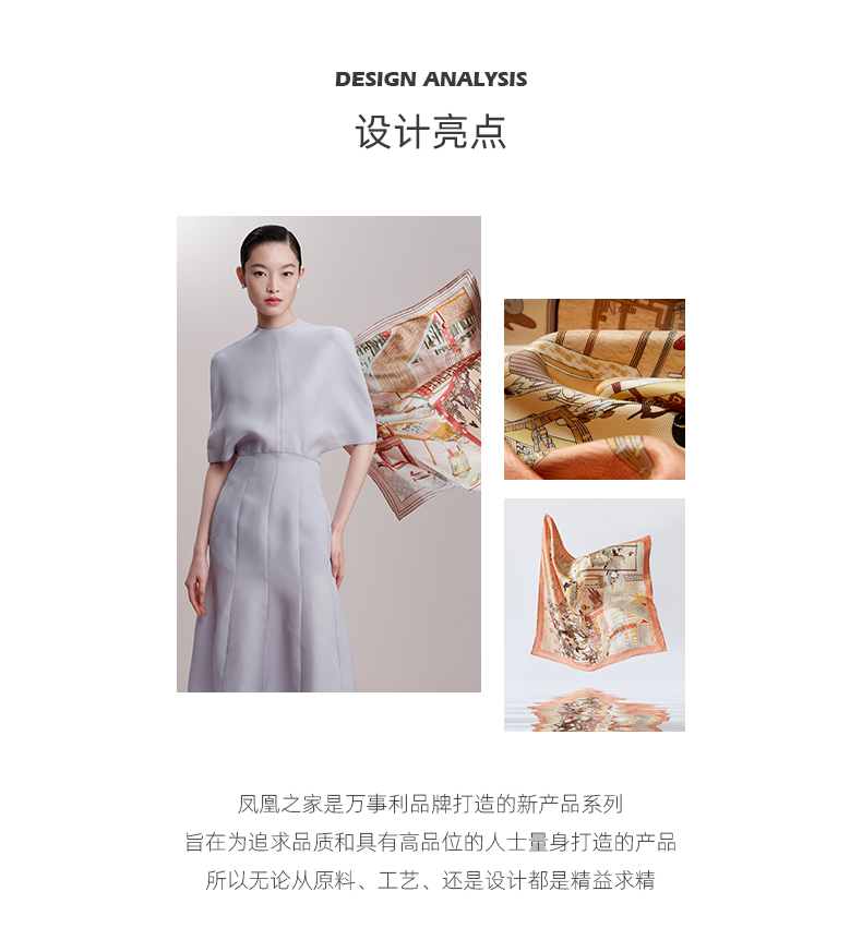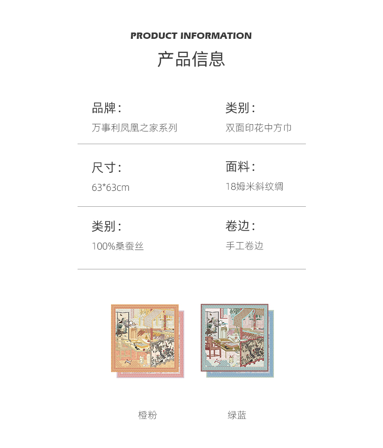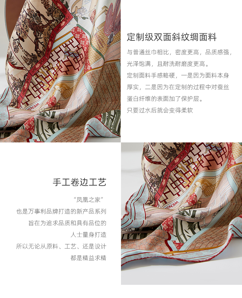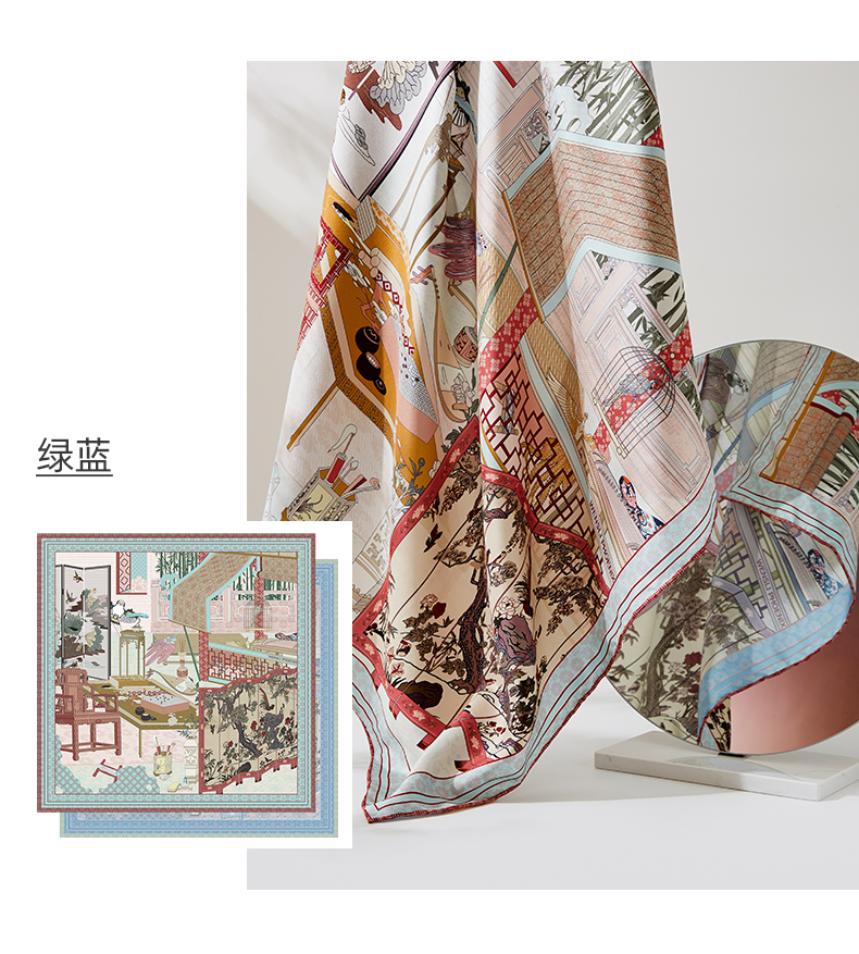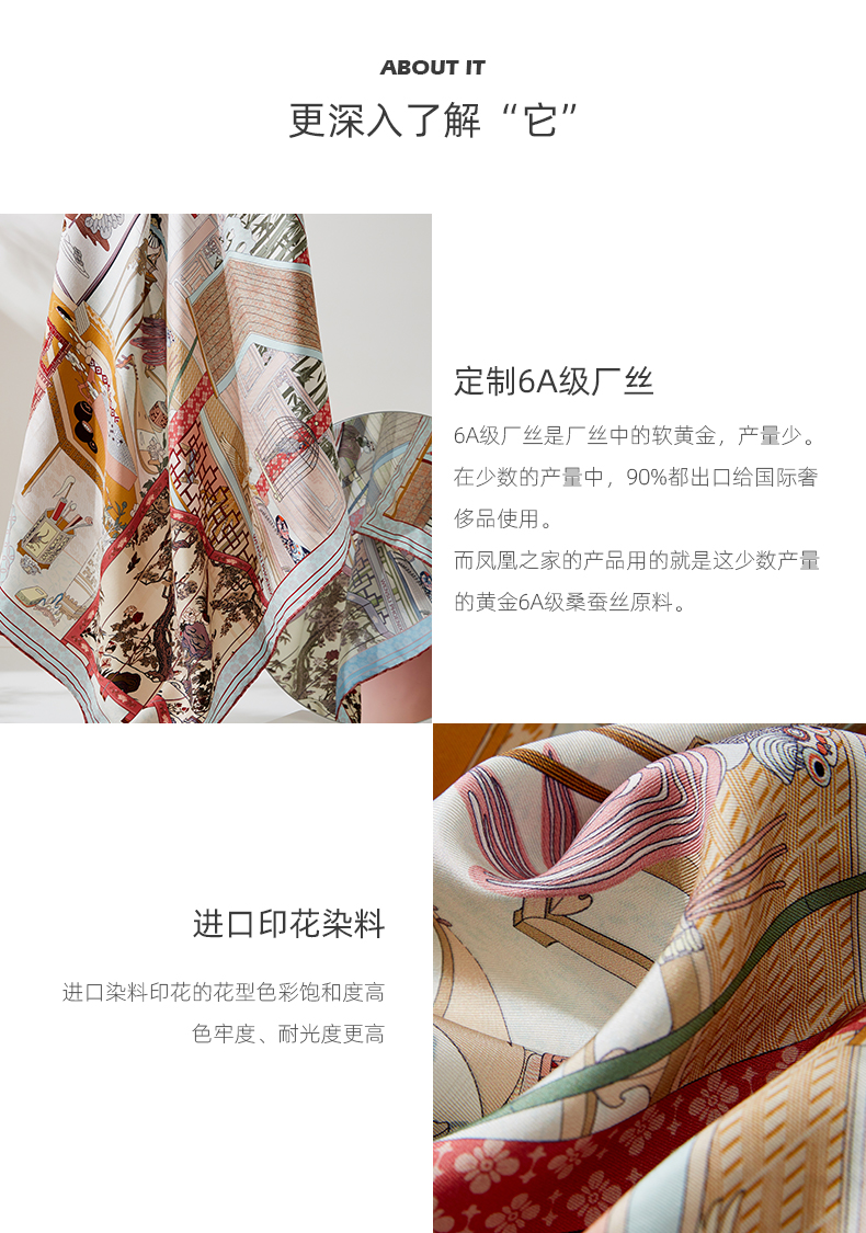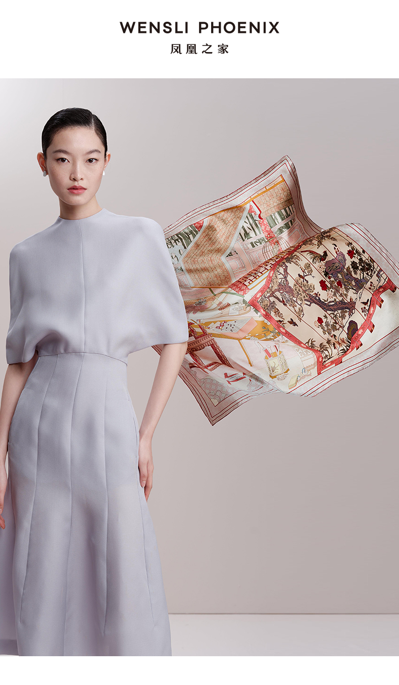 凤凰之家“屏间雅趣”63厘米双面印花真丝中方巾
