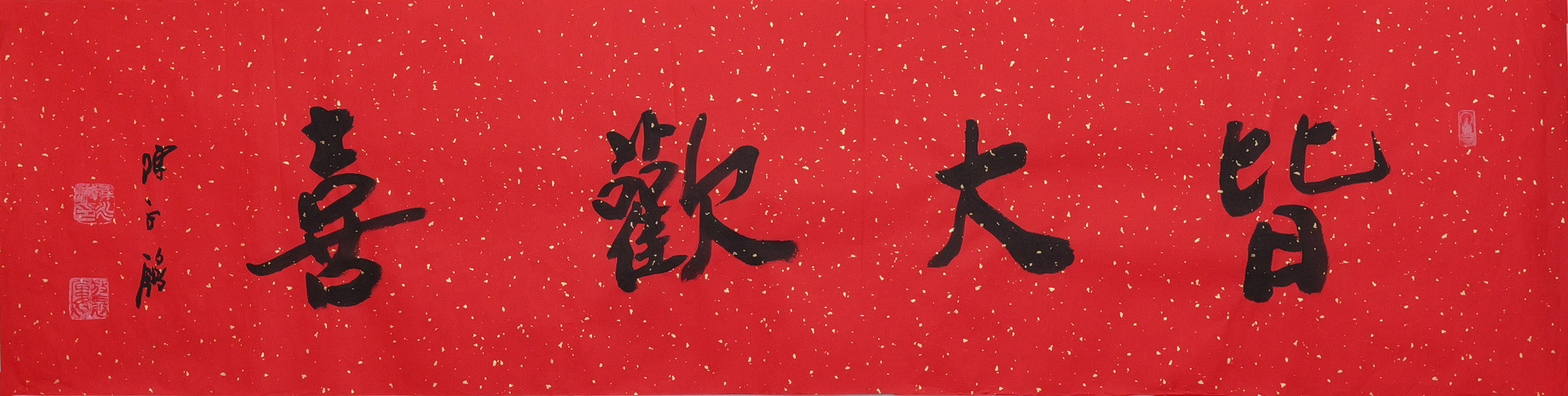 陈永锵书法33x138CM《皆大欢喜》一4平尺手写纸本宣纸新春福语作品[原作编号:SF0617]