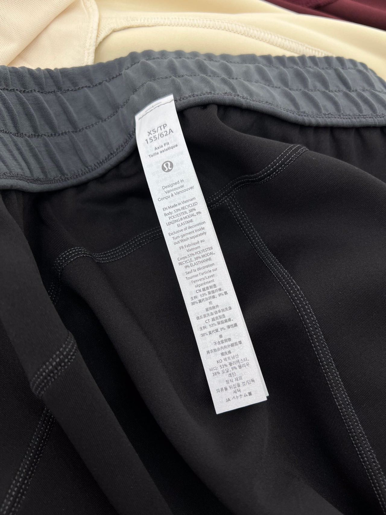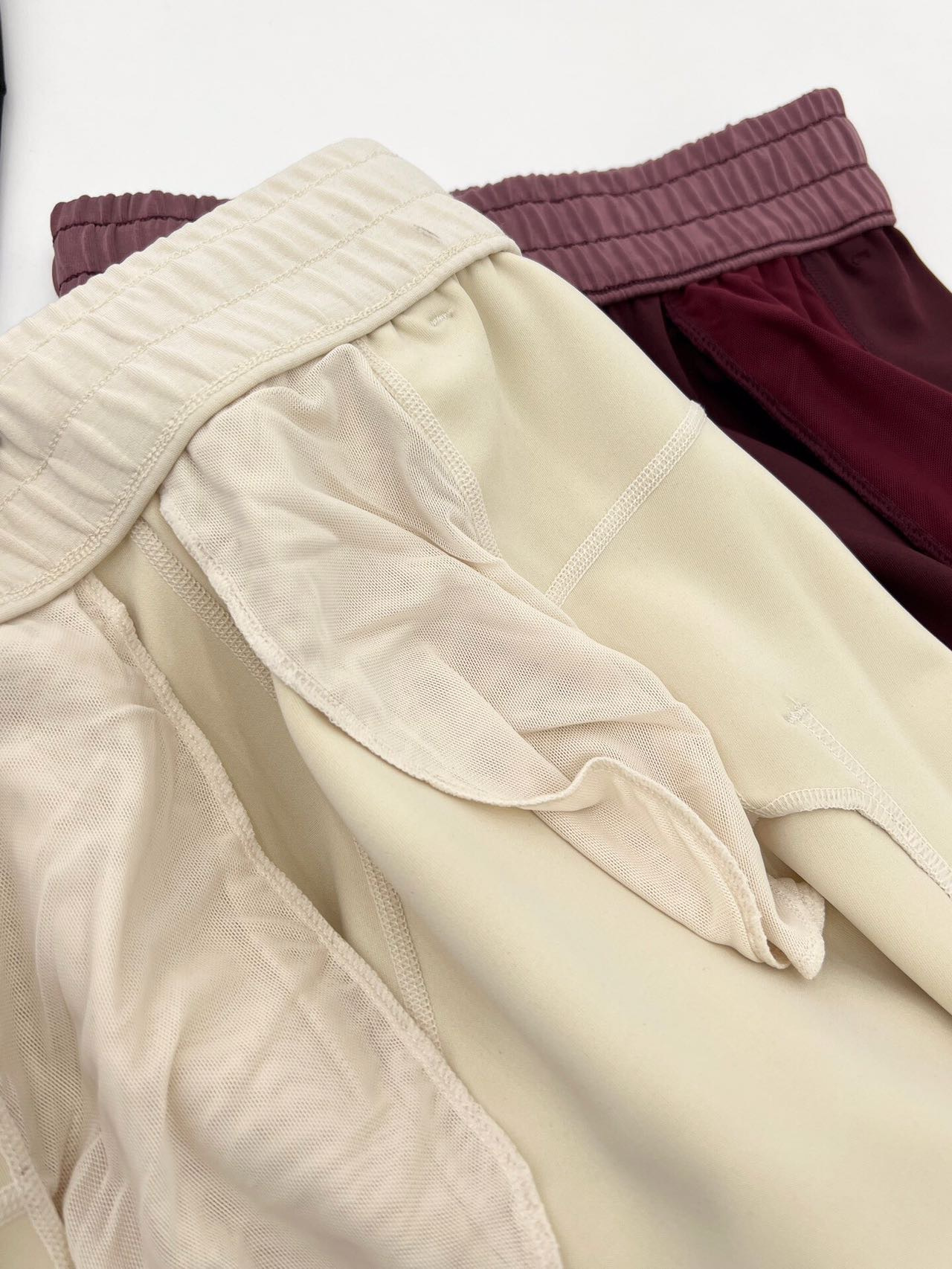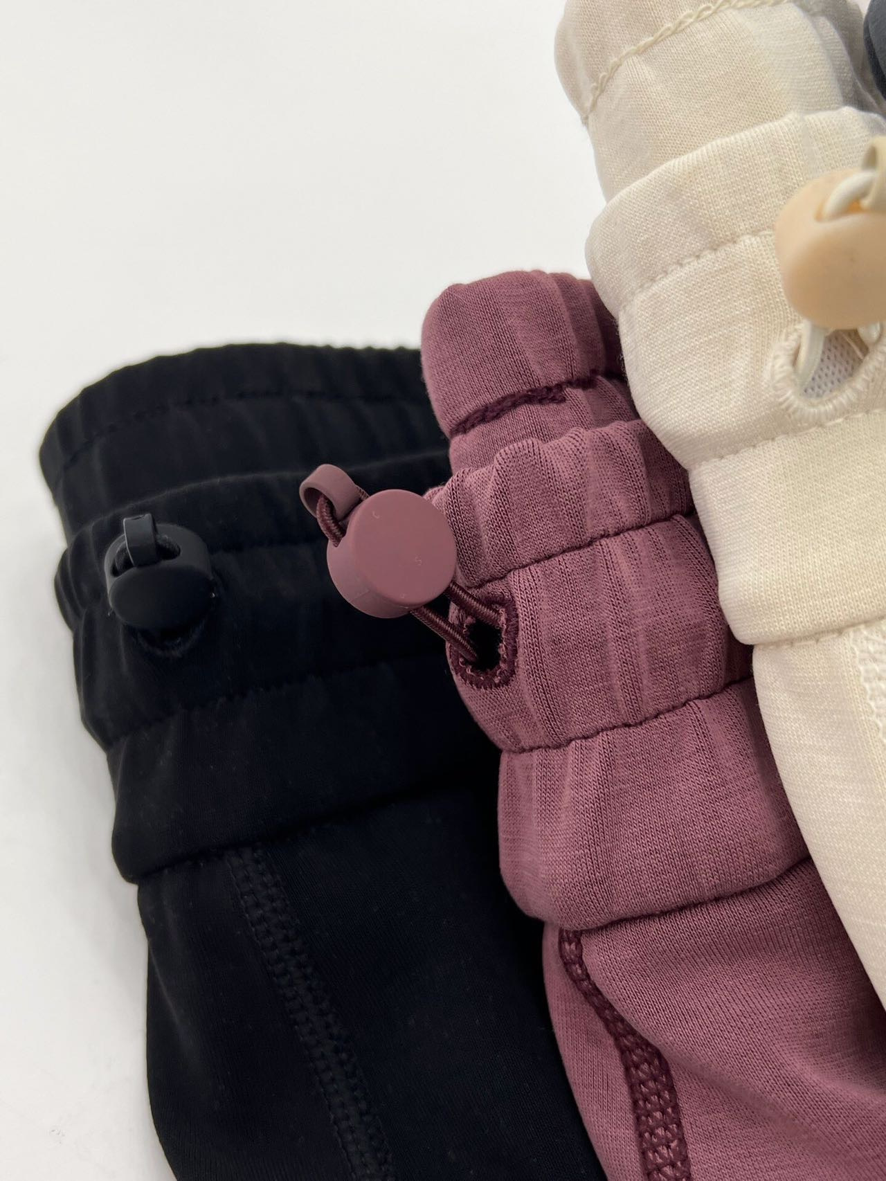 弹力松紧抽绳腰头,双针压线加宽橡筋,