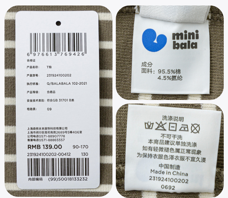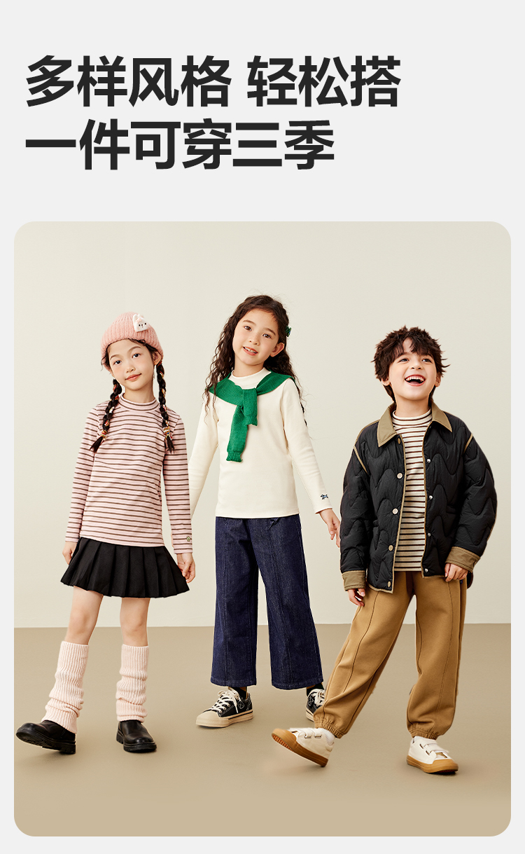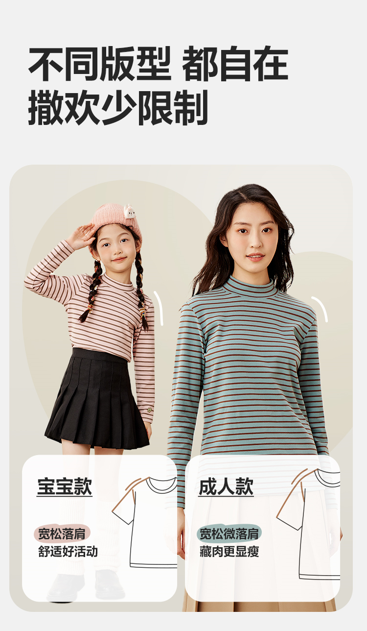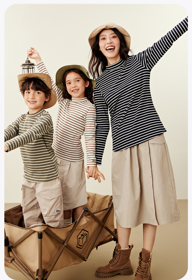 【mini亲子】迷你巴拉男女童简约修身打底T恤一家三口秋