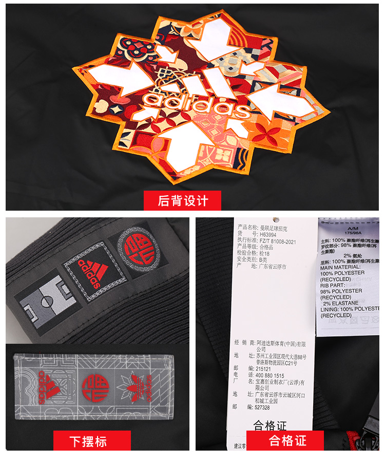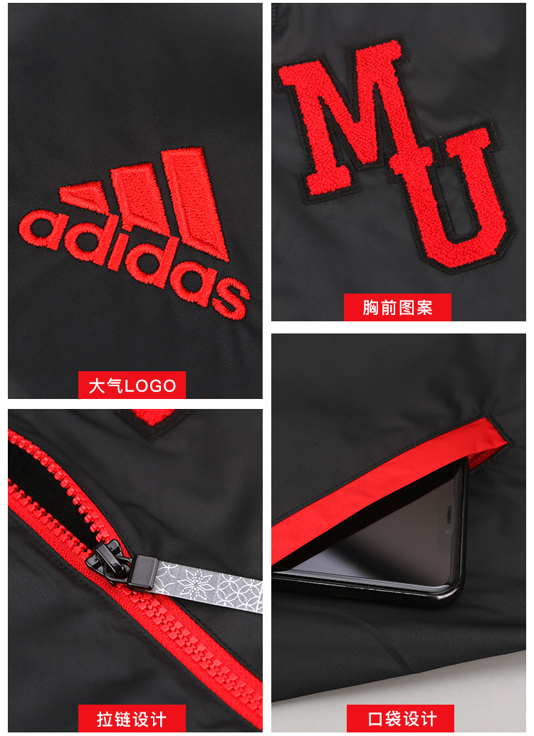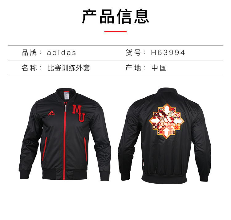 ADIDAS/阿迪达斯曼联春秋款足球运动休闲拉链夹克外套成人男H63994