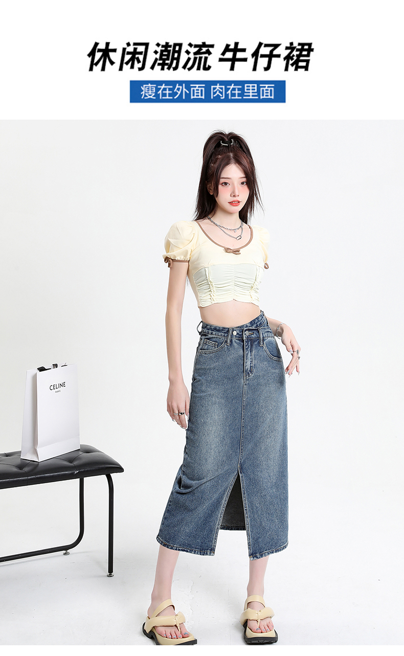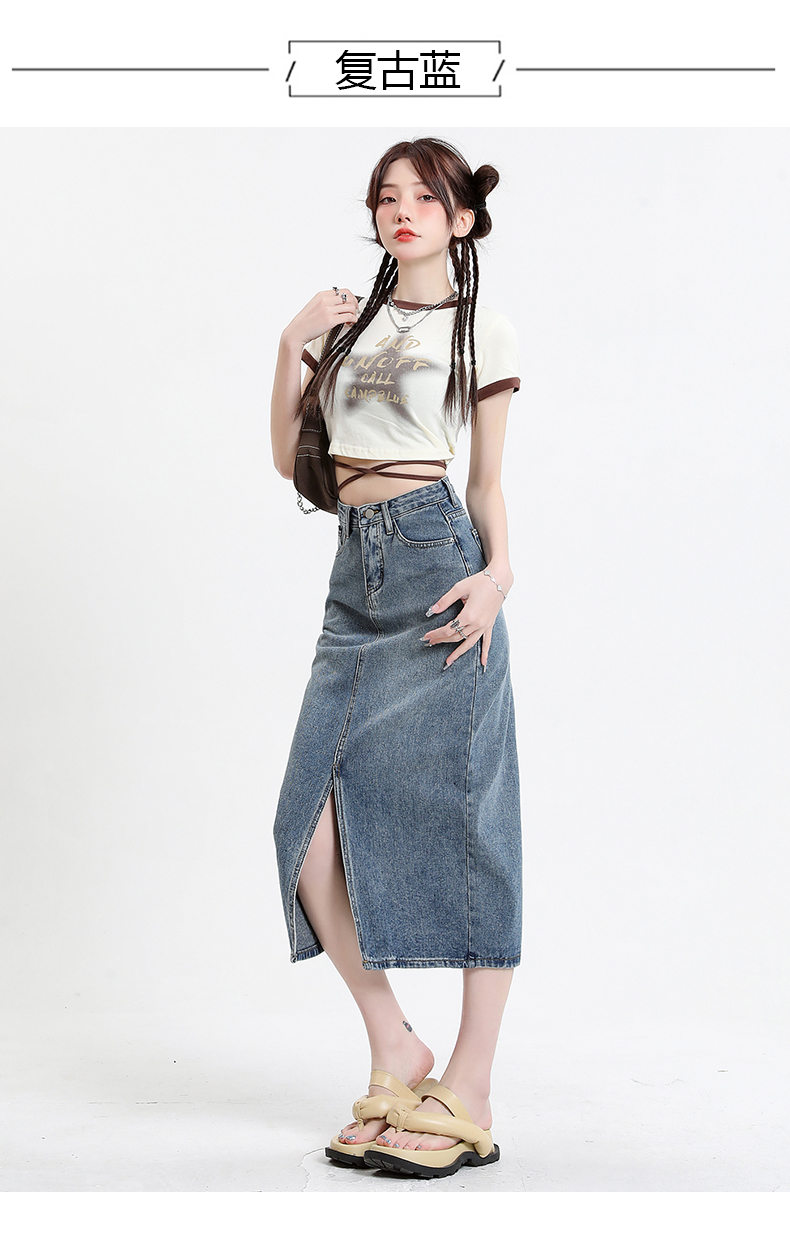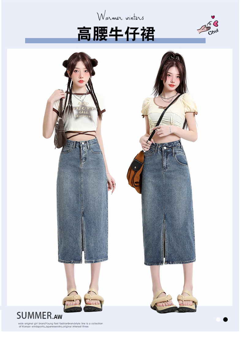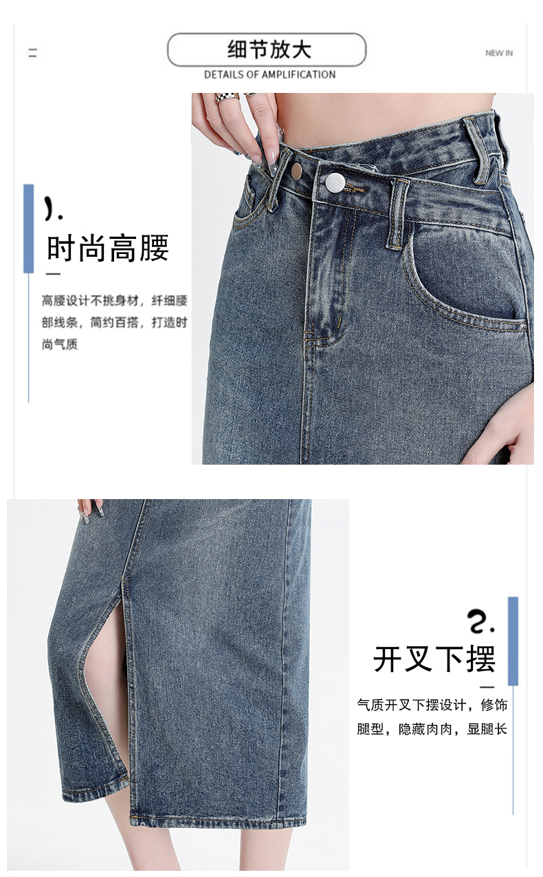高腰牛仔A字半身裙 棉质牛仔裙【233-18】