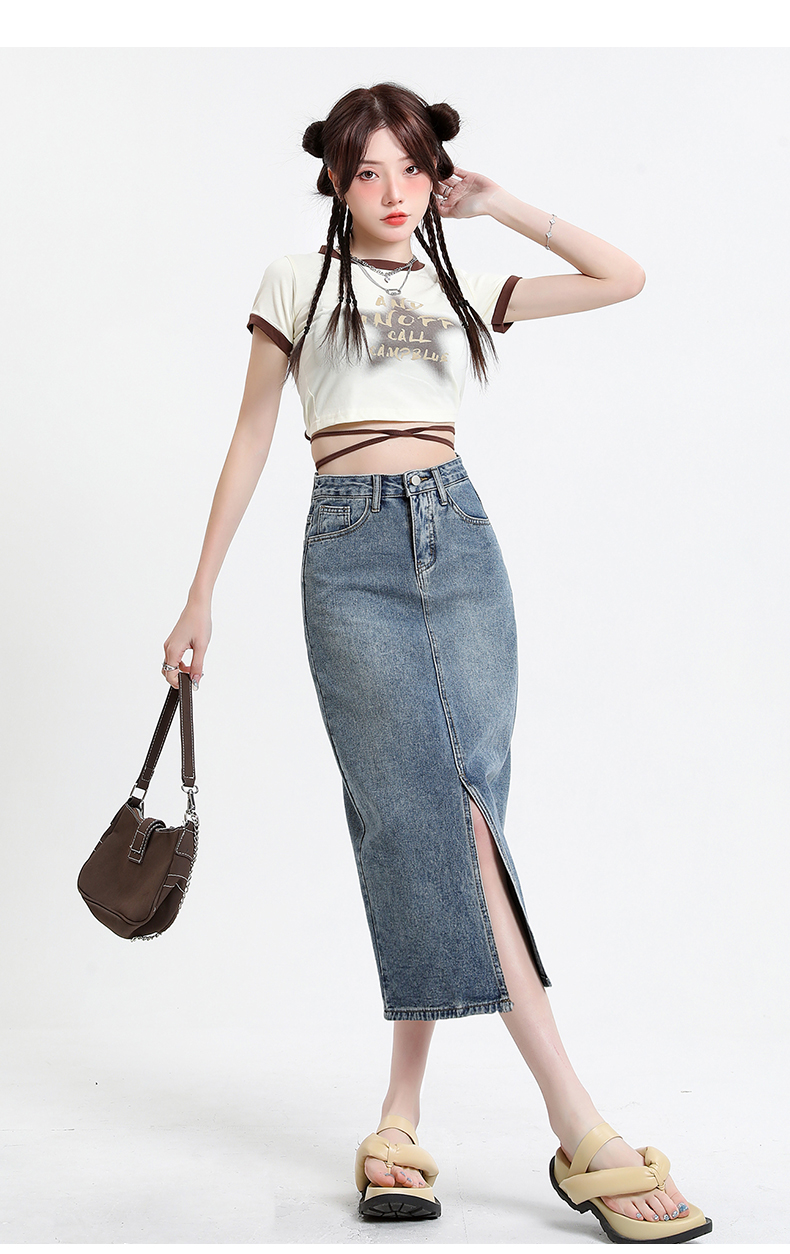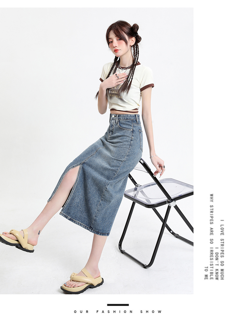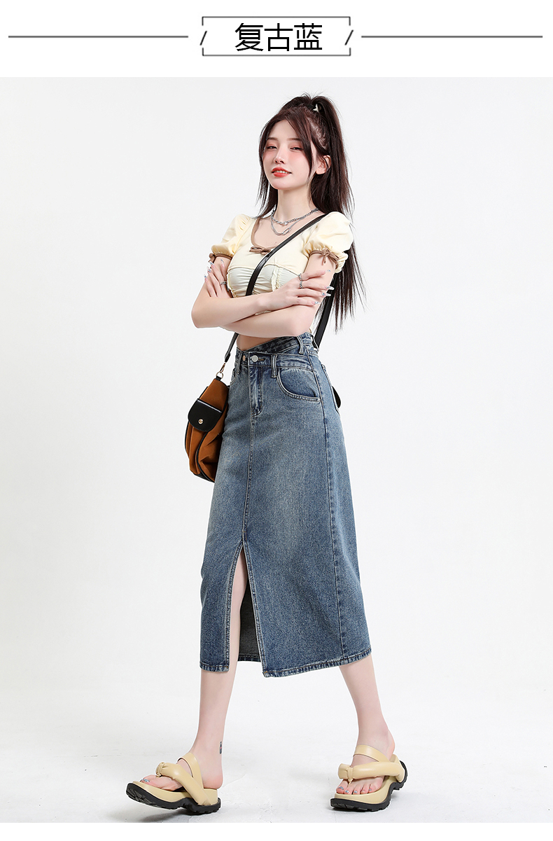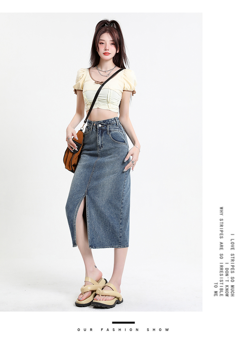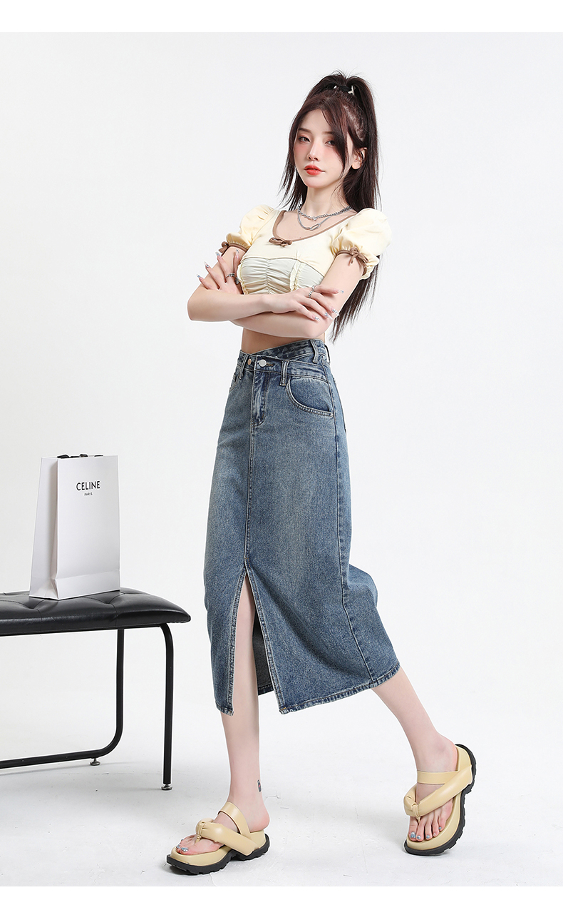 高腰牛仔A字半身裙 棉质牛仔裙【233-18】