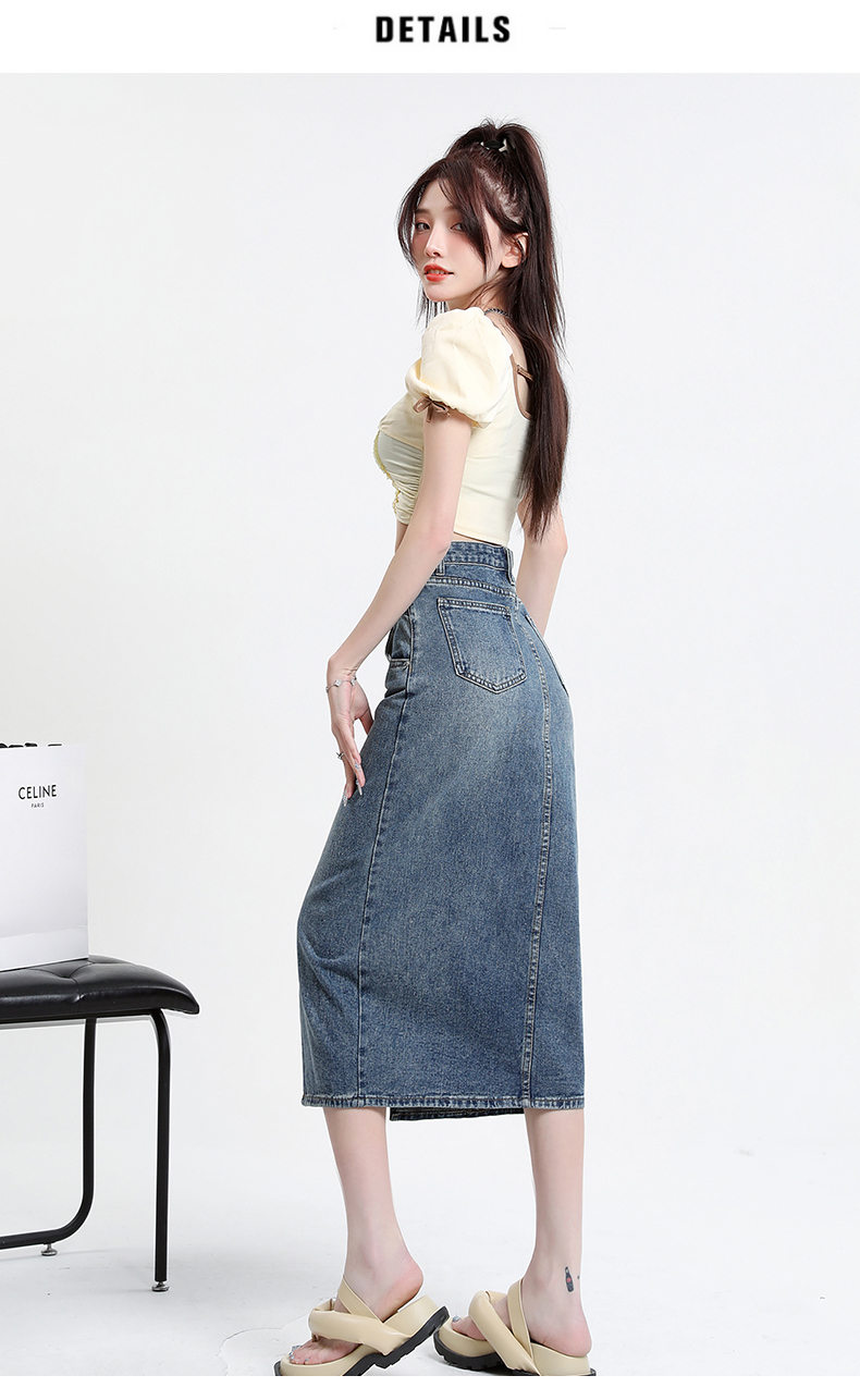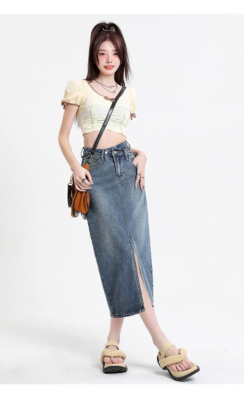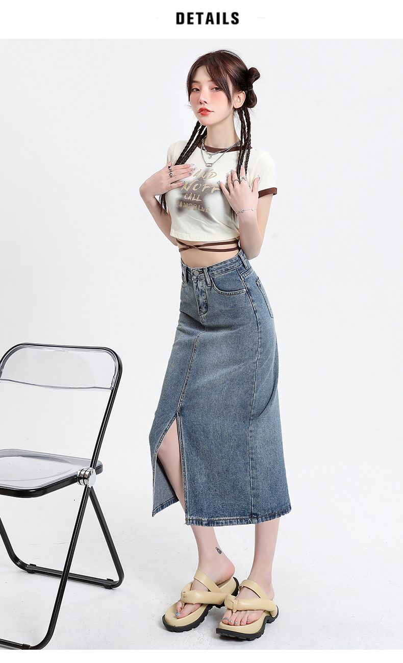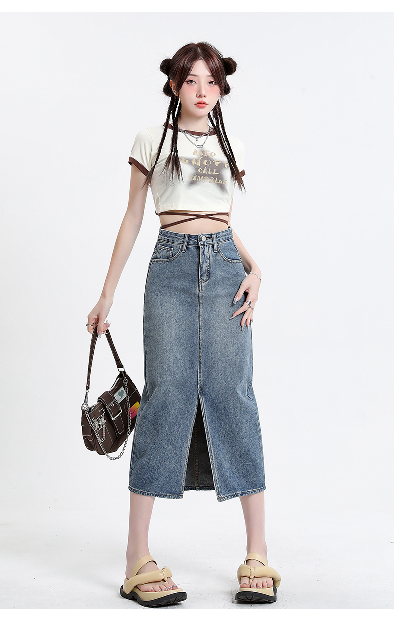 高腰牛仔A字半身裙 棉质牛仔裙【233-18】