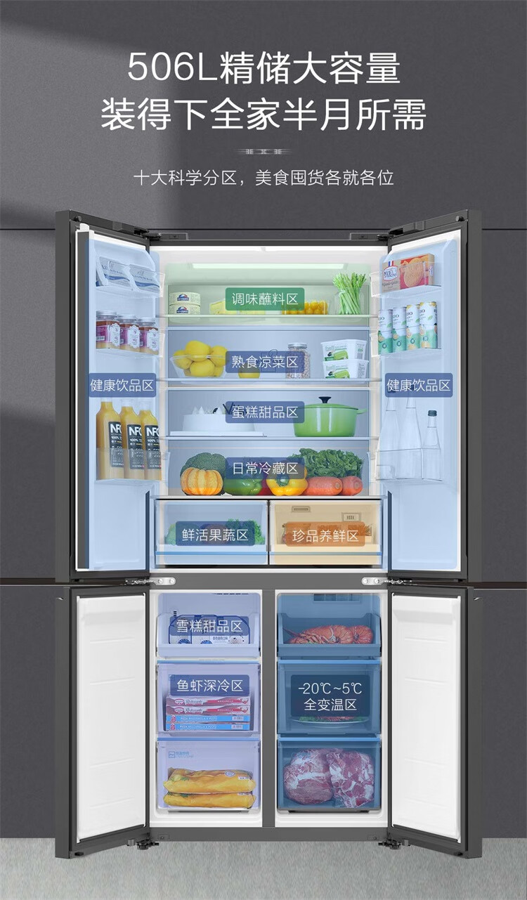 【星珀系列】海尔冰箱506升零距离嵌入全空间保鲜 风冷无霜一级能效双循环除菌净味十字对开门四门家用星珀系列冰箱 506L星韵银+全空间保鲜+零距离嵌入+EPP超净