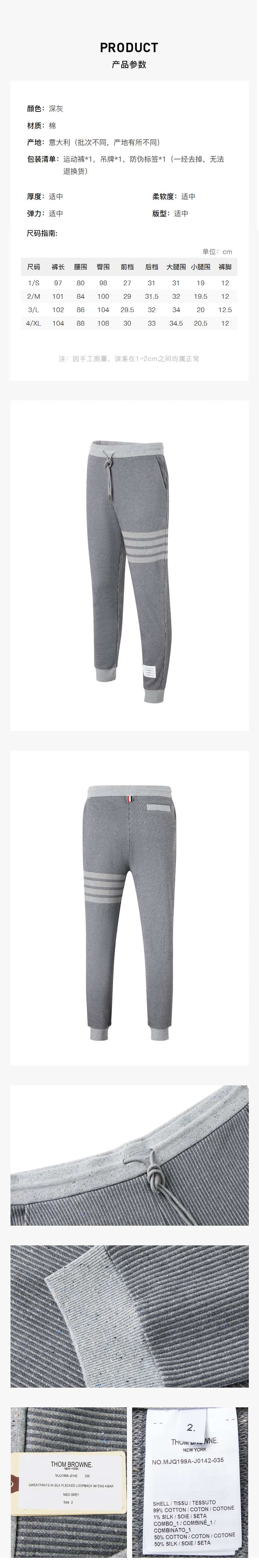 THOM BROWNE 汤姆·布朗 男士4条纹系带束脚休闲运动长裤 深灰 MJQ199A J0142