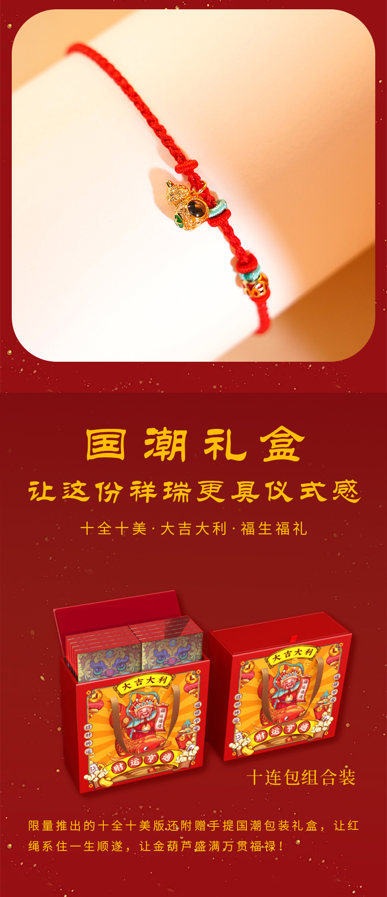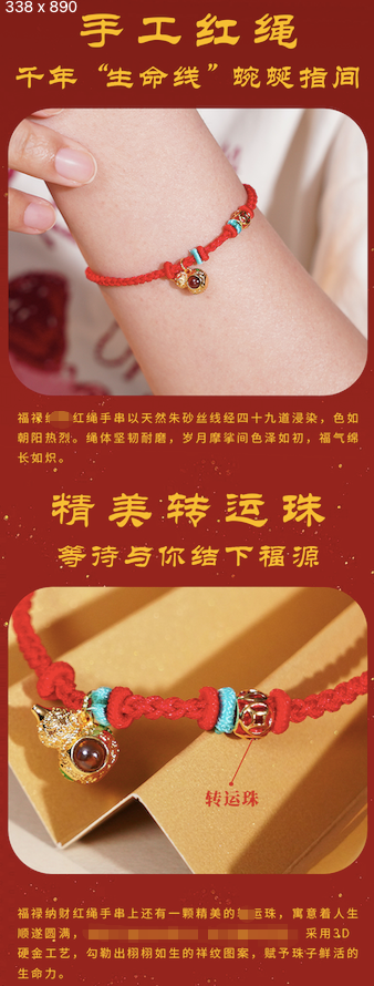 福禄财红绳手串 融合东方美学与现代工艺 流转间焕发光彩 福运滚滚来