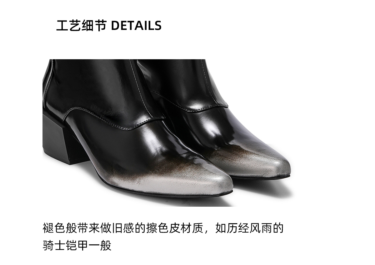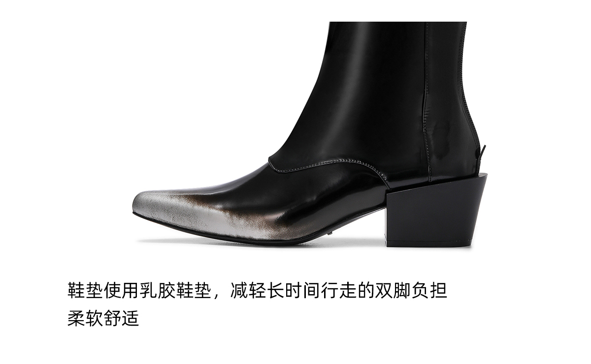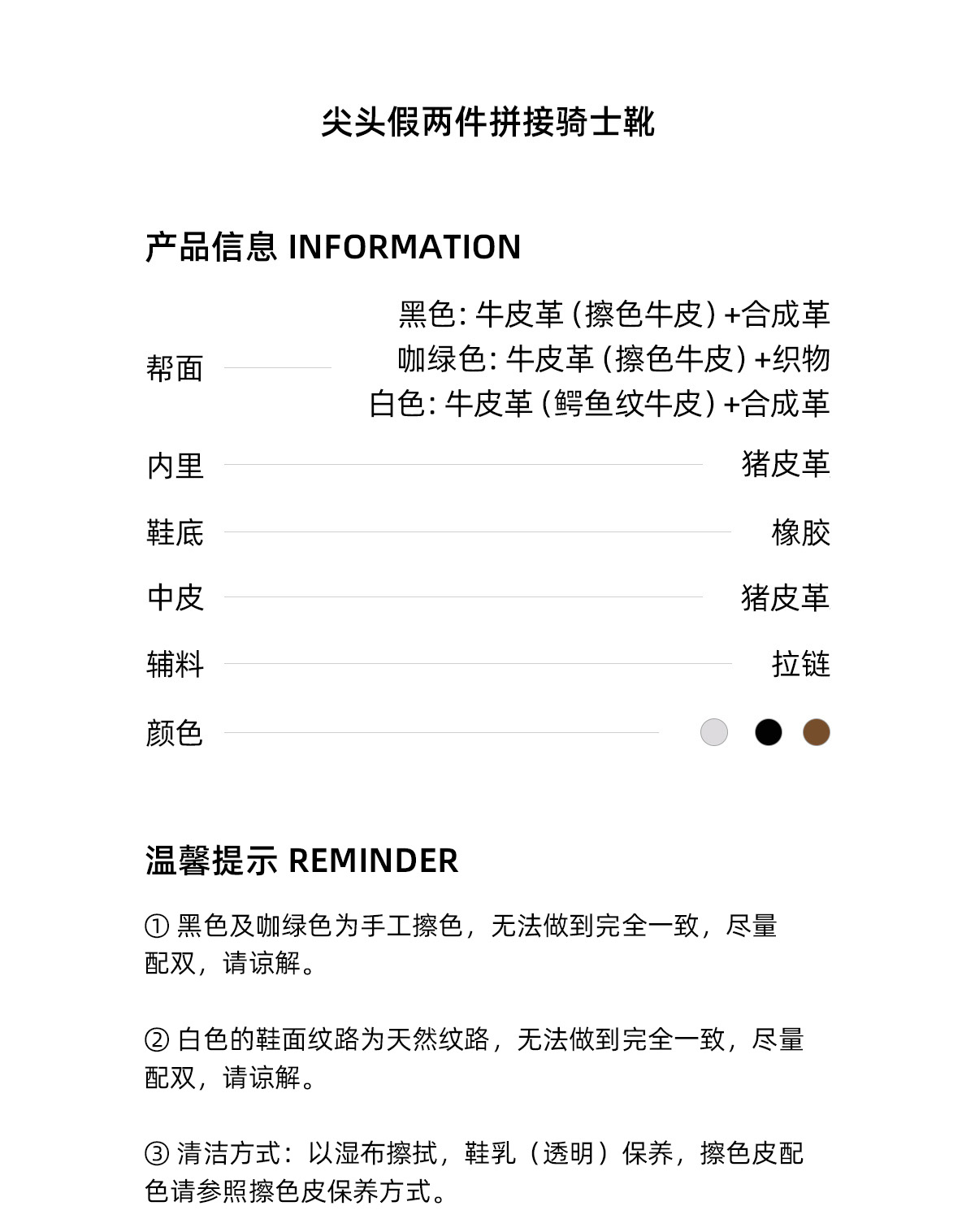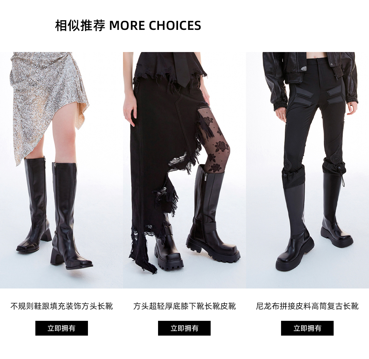 [捡漏价]lost in echo 设计师品牌尖头假两件拼接中筒靴骑士靴长靴膝下靴