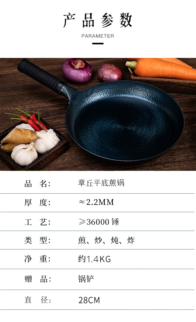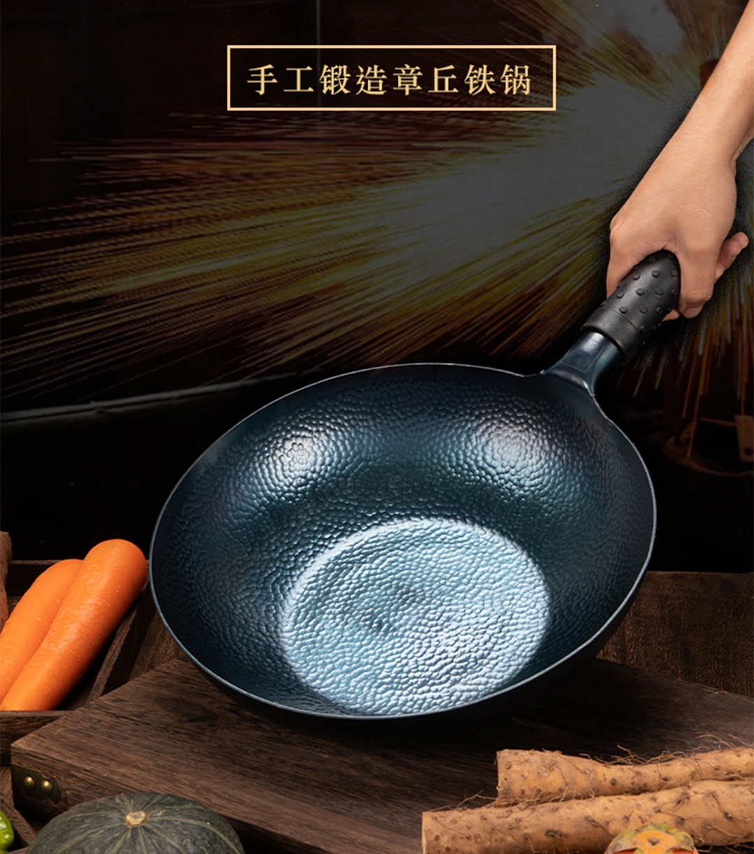 【为中国好味道而生】手工锻造章丘铁锅鱼鳞纹炒锅煎锅平底 不粘锅 匠心传承千锤百炼