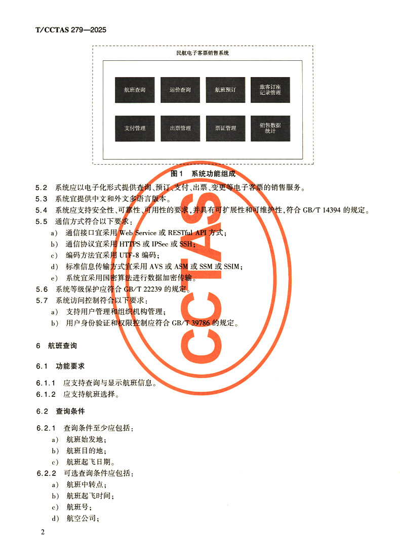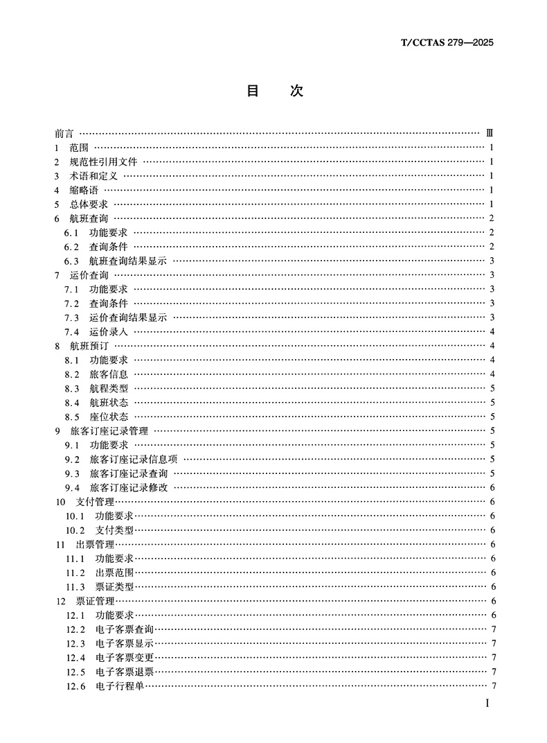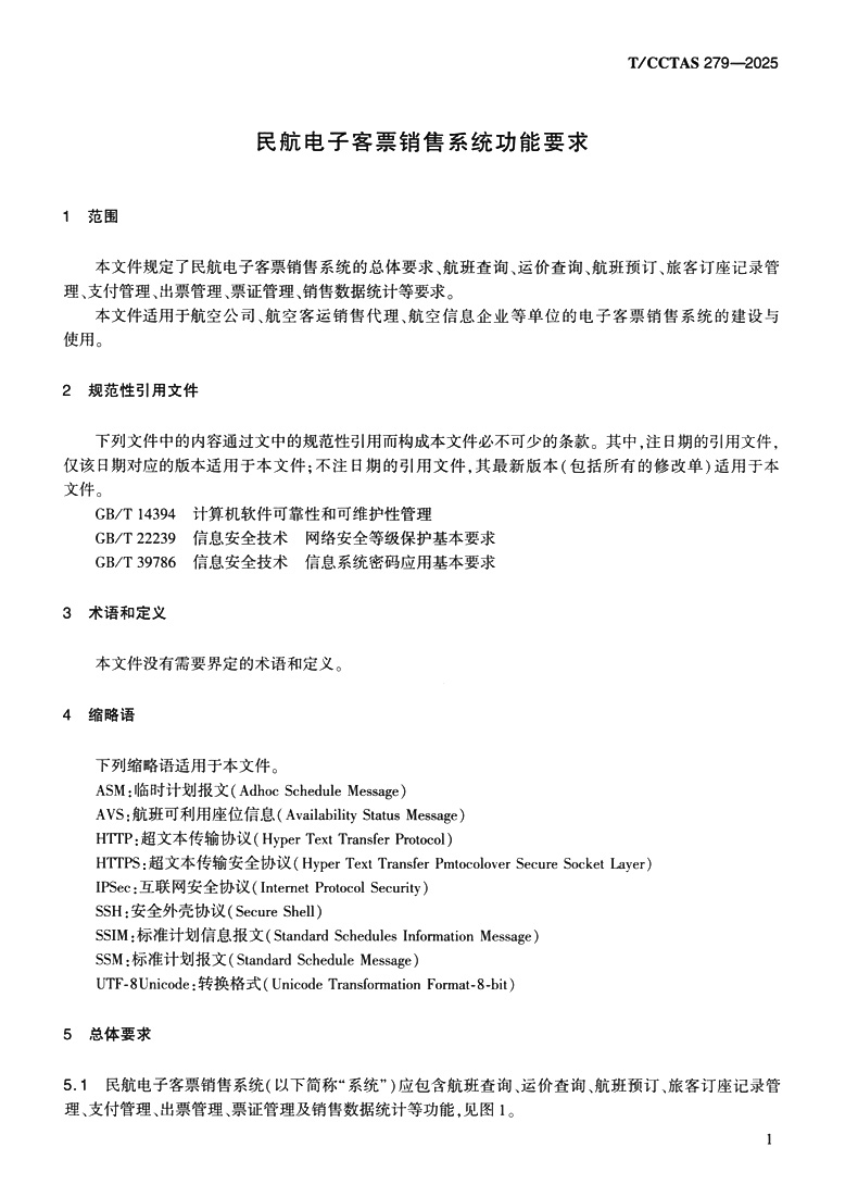 书名:民航电子客票销售系统功能要求T/CCTAS 279—2025