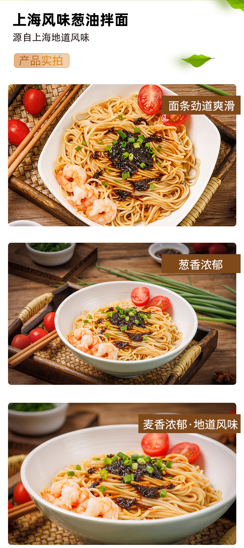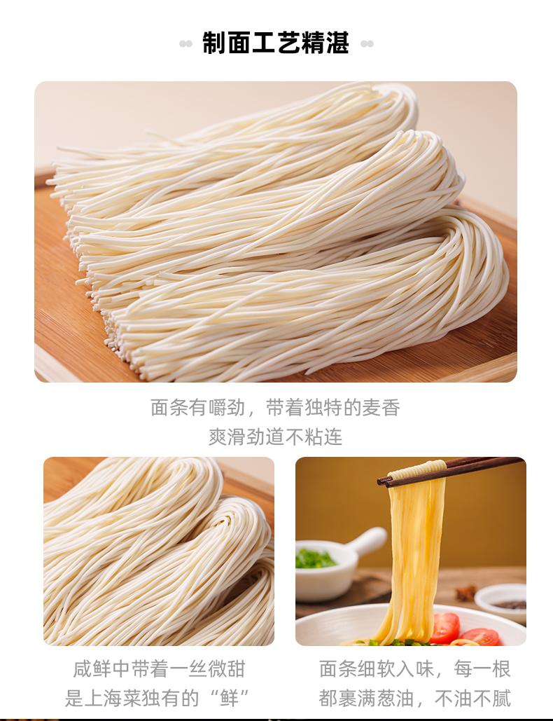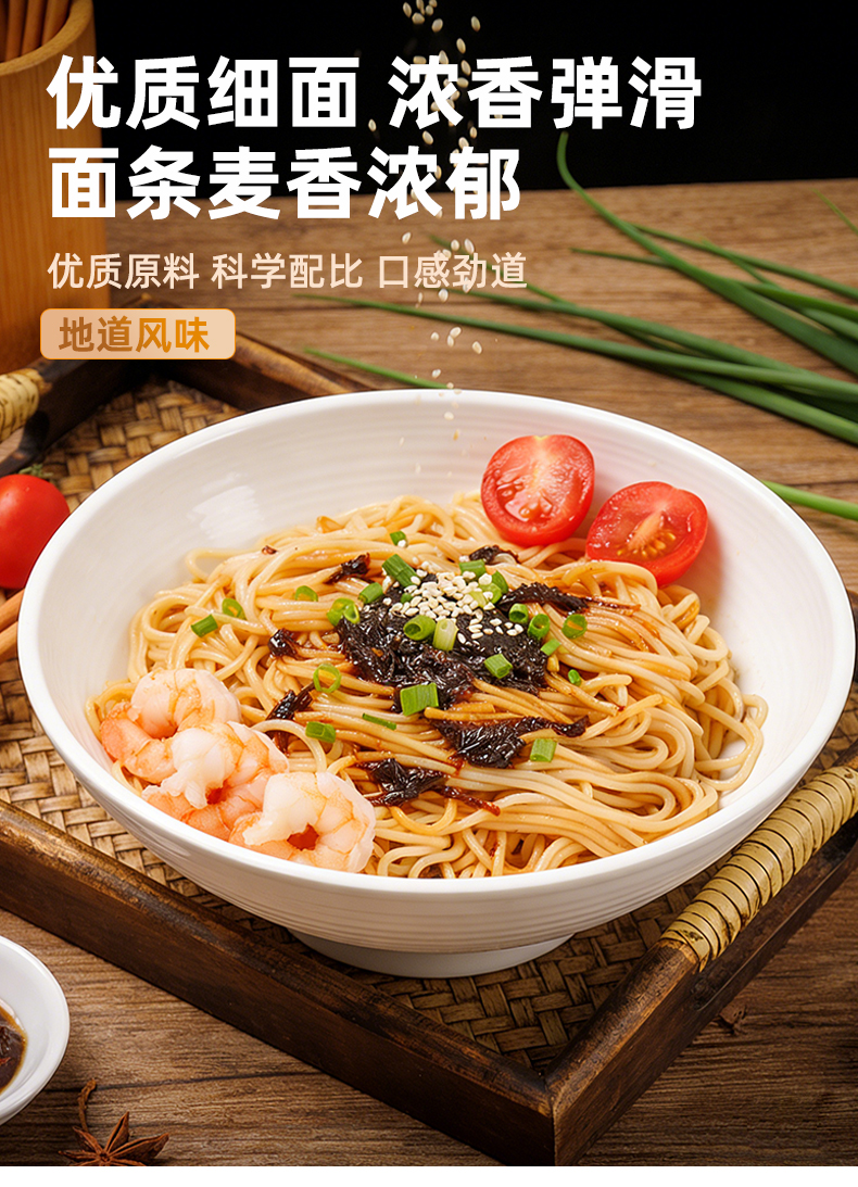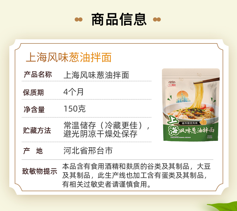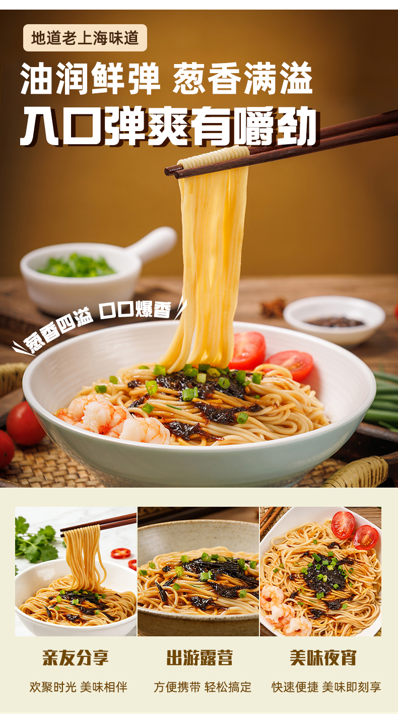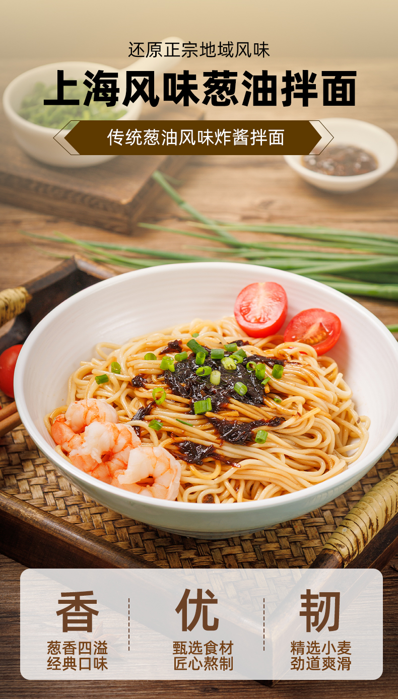 【城市限定风味上海风味面条劲道自带料包】三个樱桃上海风味葱油拌面150g*6袋