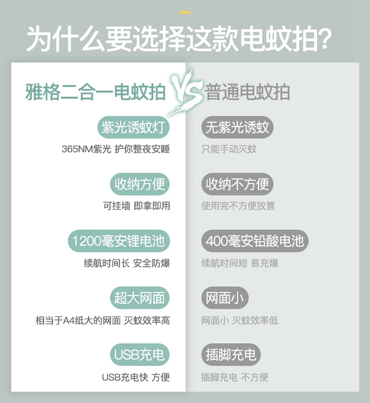 雅格 可壁挂灭蚊灯电蚊拍 充电锂电二合一 YG-D121(包邮直发)