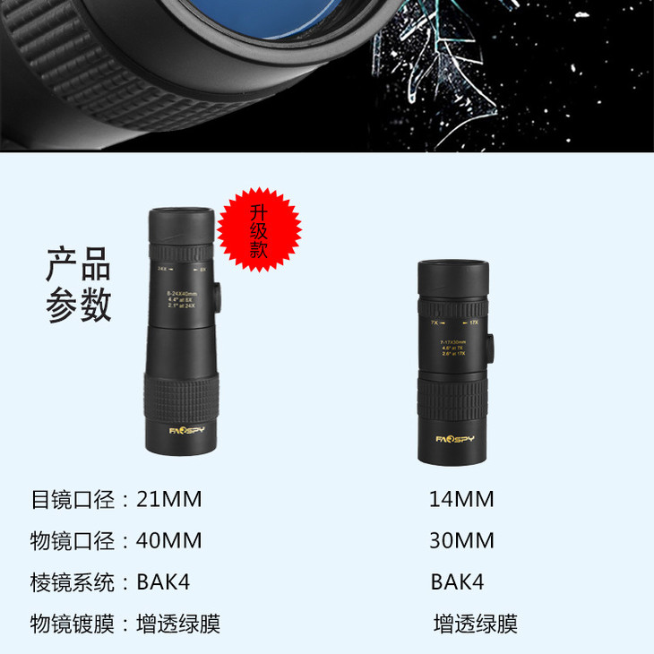 【升级版】高倍高清8-24x40伸缩变倍单筒望远镜 手机拍照