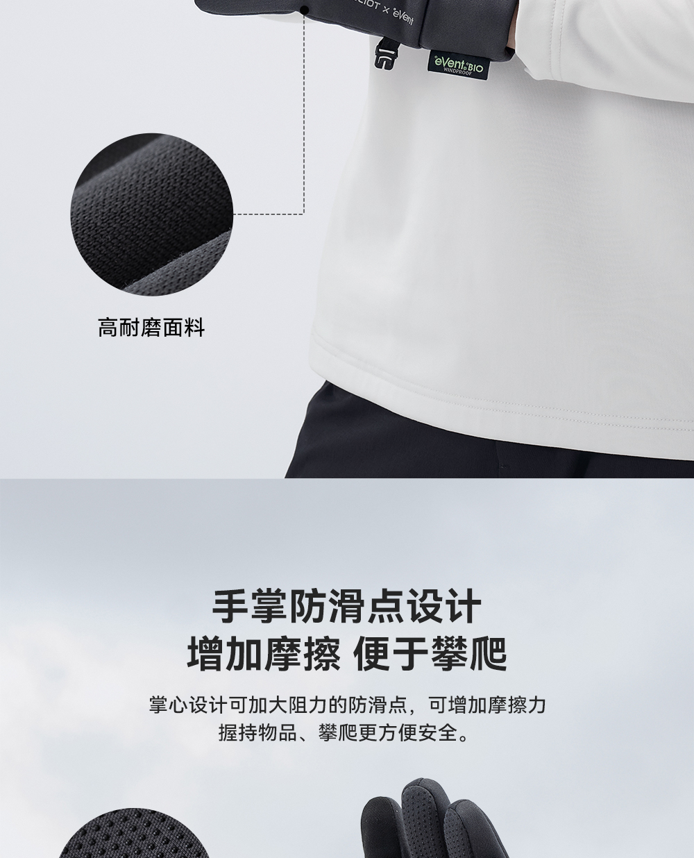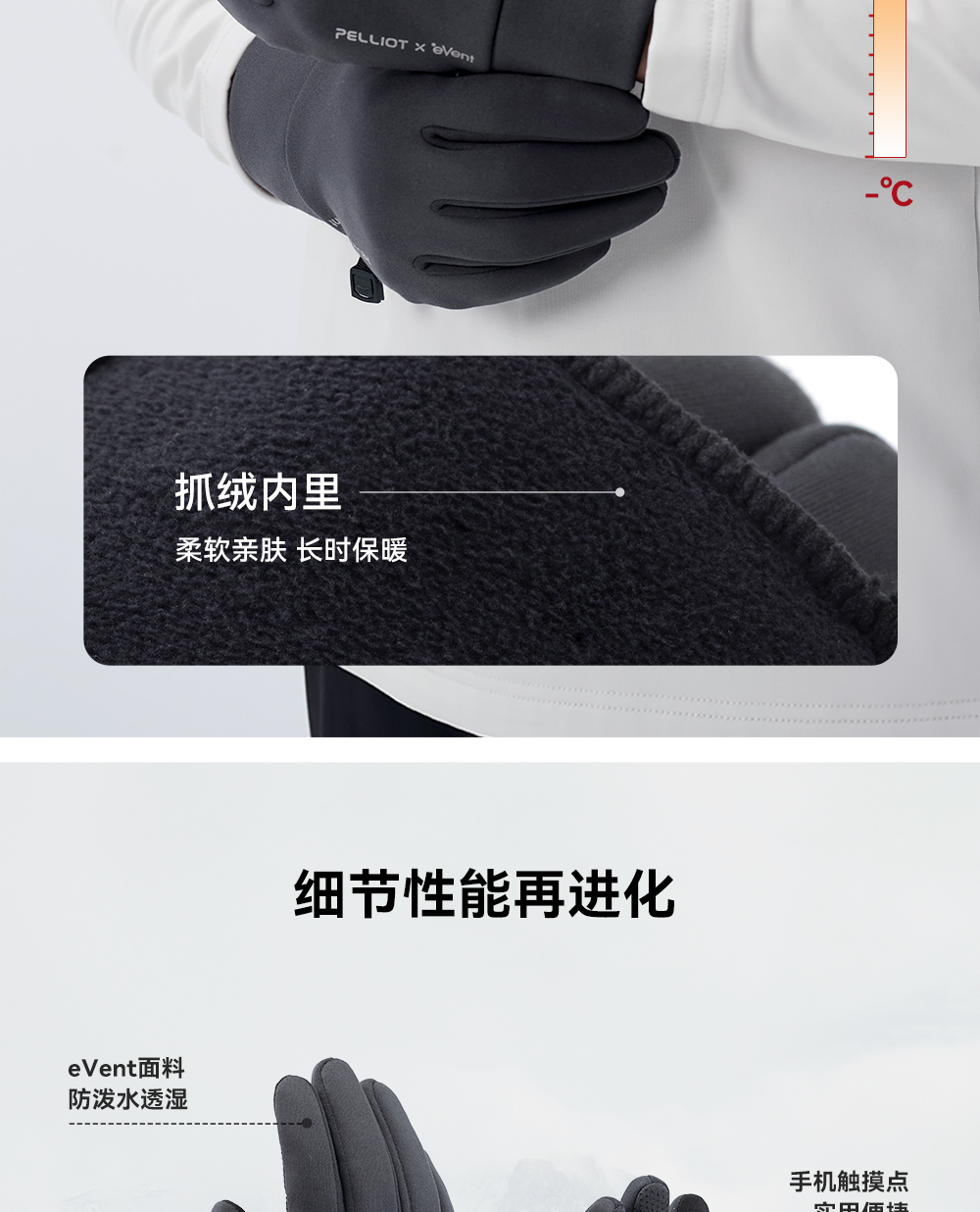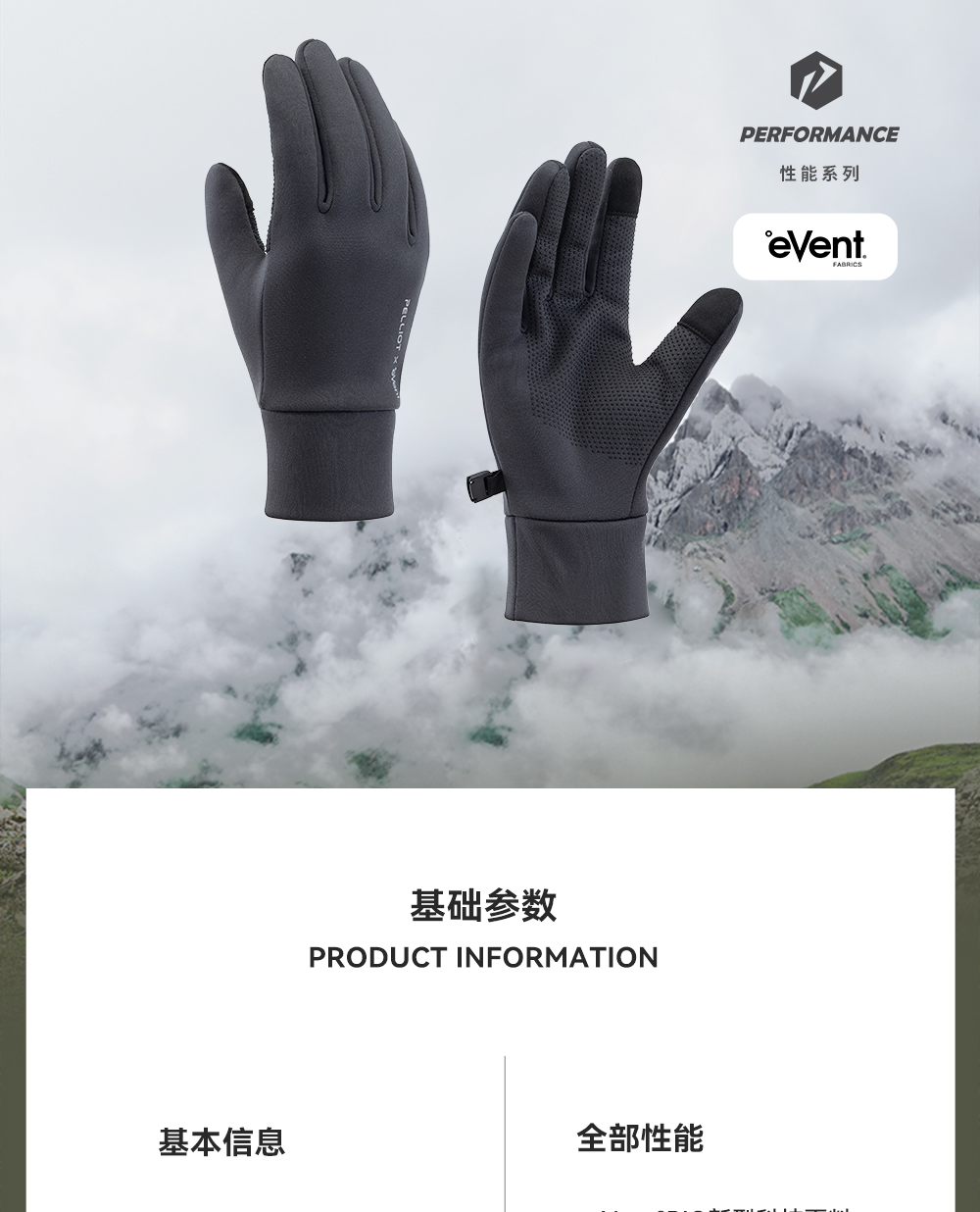 【P系列】伯希和户外手套男eVent防泼水滑雪登山抓绒保暖徒步女