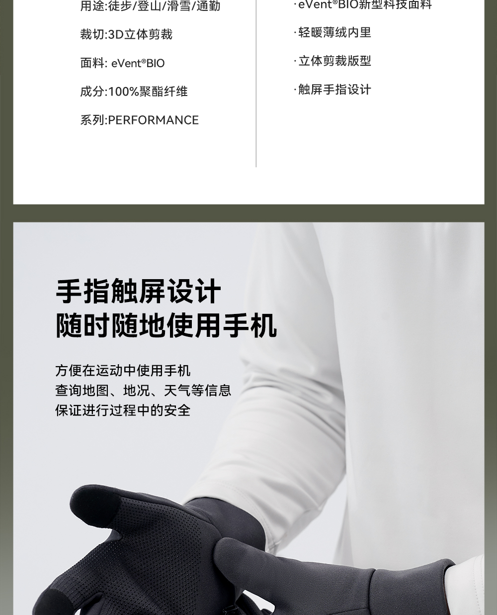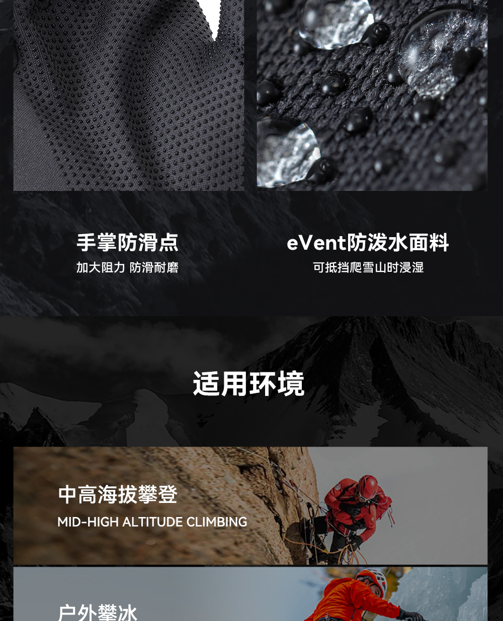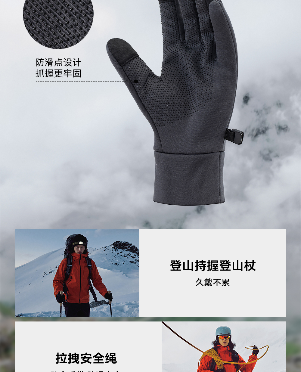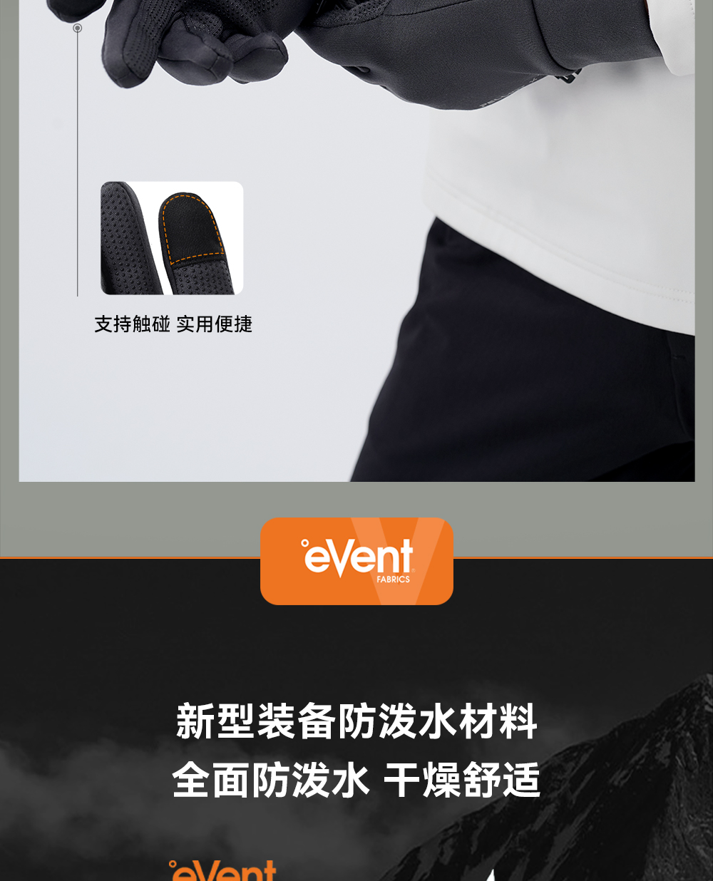 【P系列】伯希和户外手套男eVent防泼水滑雪登山抓绒保暖徒步女