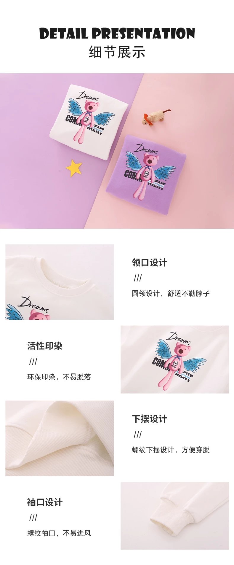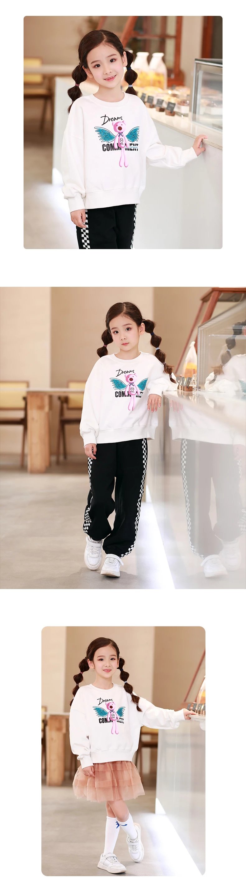 24反季清仓 龙之涵卫衣卫裤综合 奶酷印花系列卫衣  设计感撞色袖卫衣 宽松短款系列卫衣 蓬蓬袖邻家女孩卫衣   元气森林卫衣“ 云朵旅行记”休闲卫裤  儿童工装卫裤 商品图3