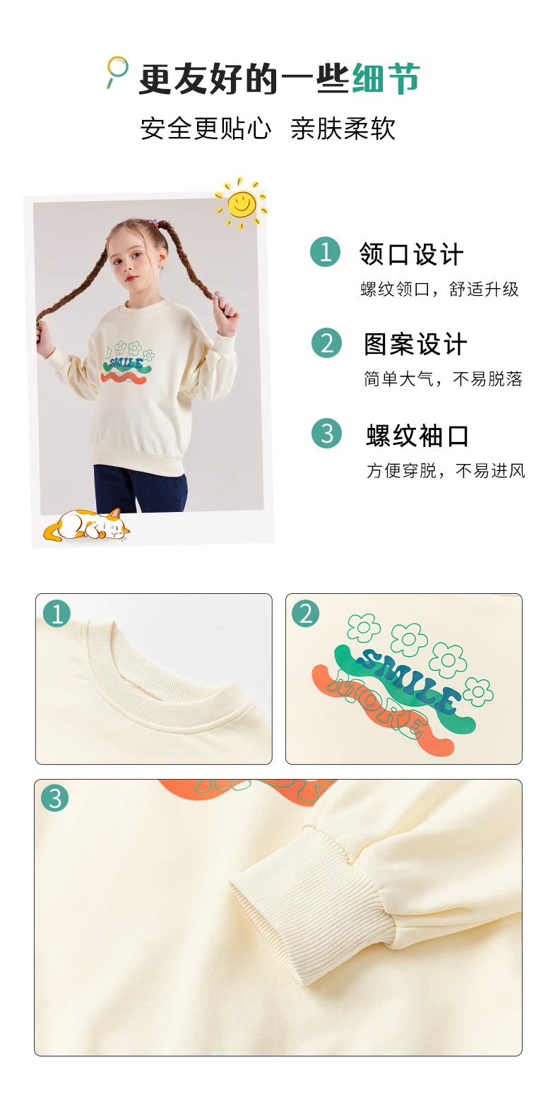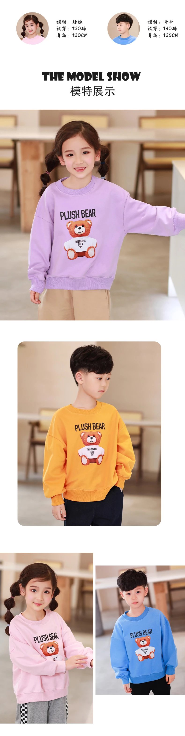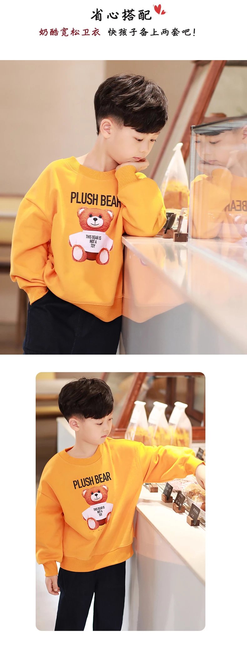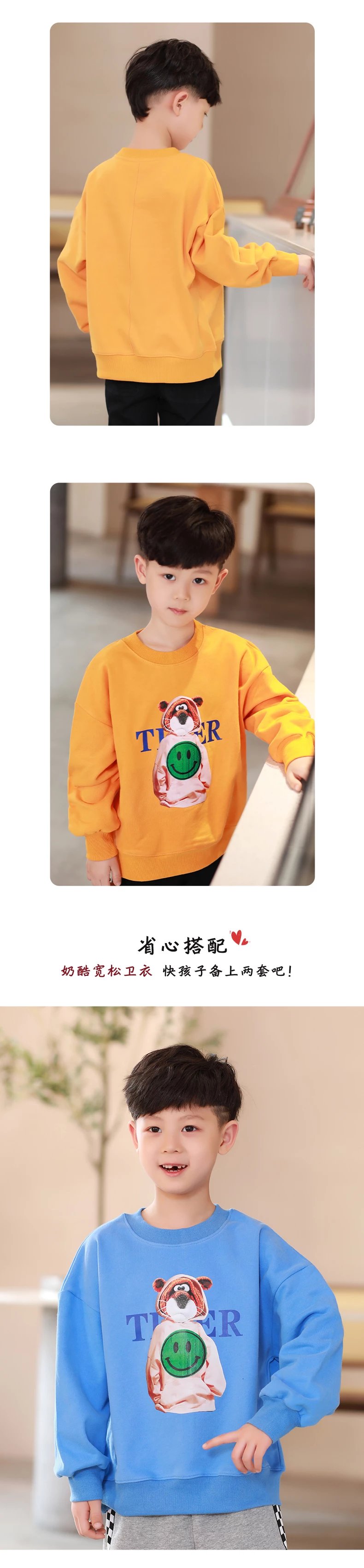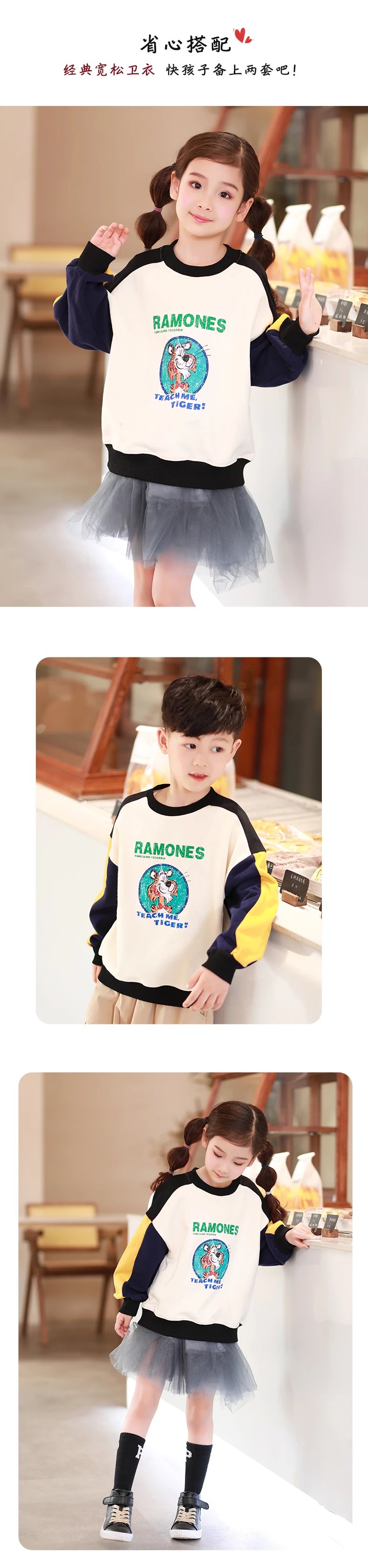 24反季清仓 龙之涵卫衣卫裤综合 奶酷印花系列卫衣  设计感撞色袖卫衣 宽松短款系列卫衣 蓬蓬袖邻家女孩卫衣   元气森林卫衣“ 云朵旅行记”休闲卫裤  儿童工装卫裤 商品图14