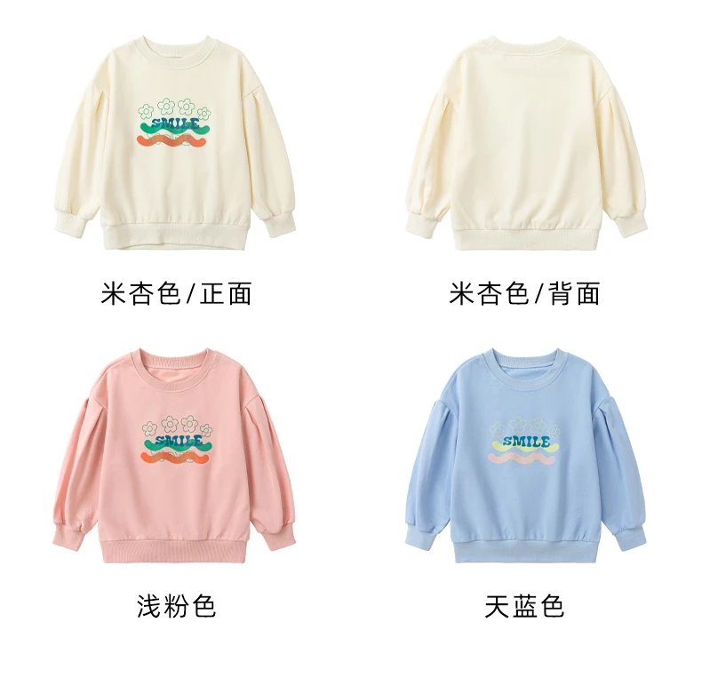24反季清仓 龙之涵卫衣卫裤综合 奶酷印花系列卫衣  设计感撞色袖卫衣 宽松短款系列卫衣 蓬蓬袖邻家女孩卫衣   元气森林卫衣“ 云朵旅行记”休闲卫裤  儿童工装卫裤 商品图2