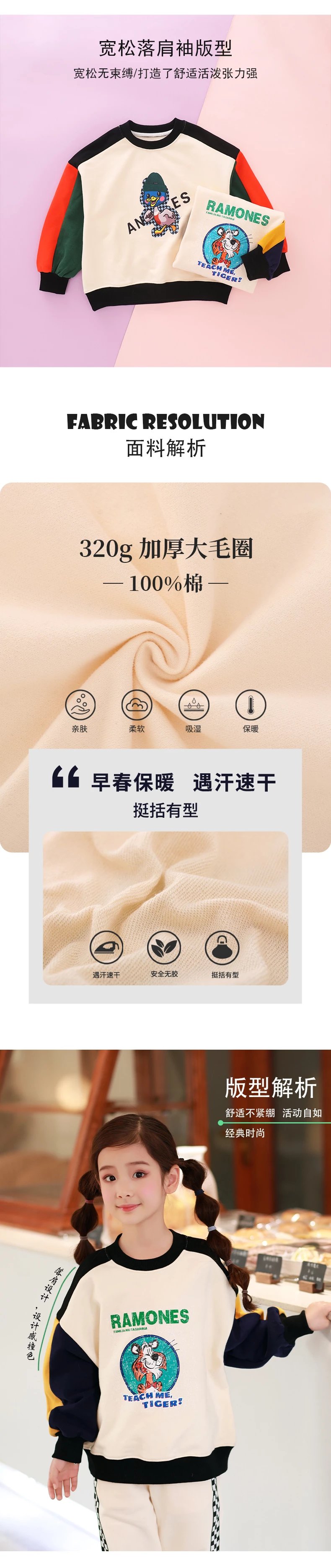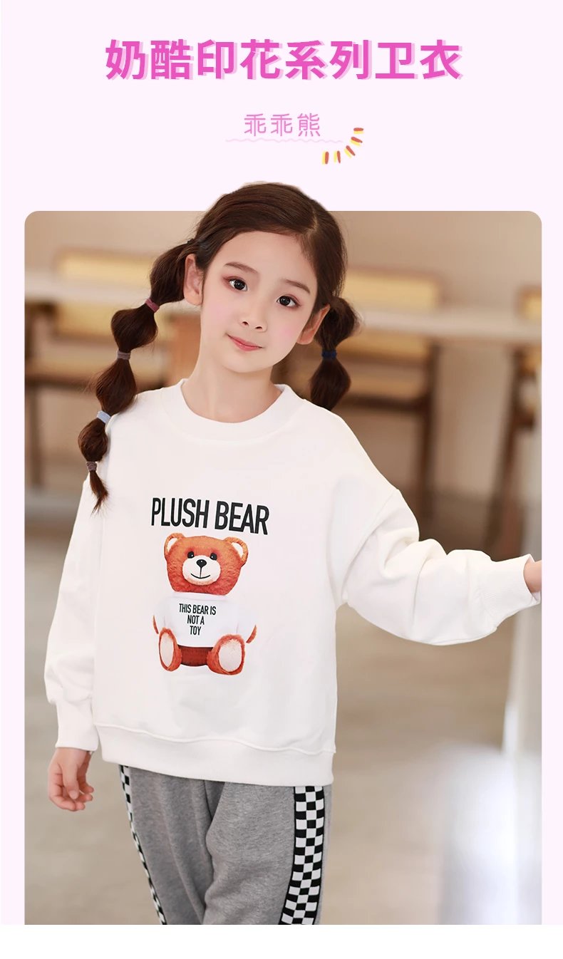 24反季清仓 龙之涵卫衣卫裤综合 奶酷印花系列卫衣  设计感撞色袖卫衣 宽松短款系列卫衣 蓬蓬袖邻家女孩卫衣   元气森林卫衣“ 云朵旅行记”休闲卫裤  儿童工装卫裤 商品图4