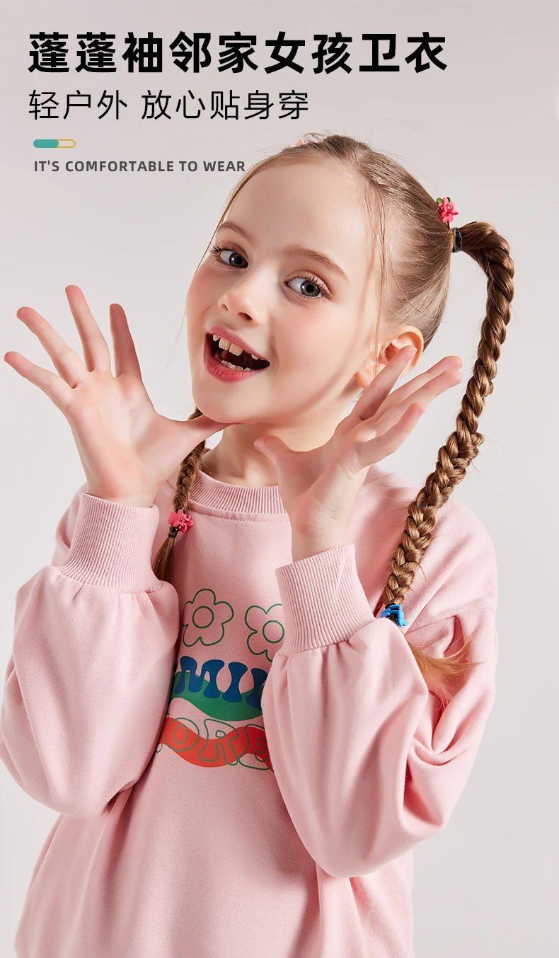 24反季清仓 龙之涵卫衣卫裤综合 奶酷印花系列卫衣  设计感撞色袖卫衣 宽松短款系列卫衣 蓬蓬袖邻家女孩卫衣   元气森林卫衣“ 云朵旅行记”休闲卫裤  儿童工装卫裤 商品图5