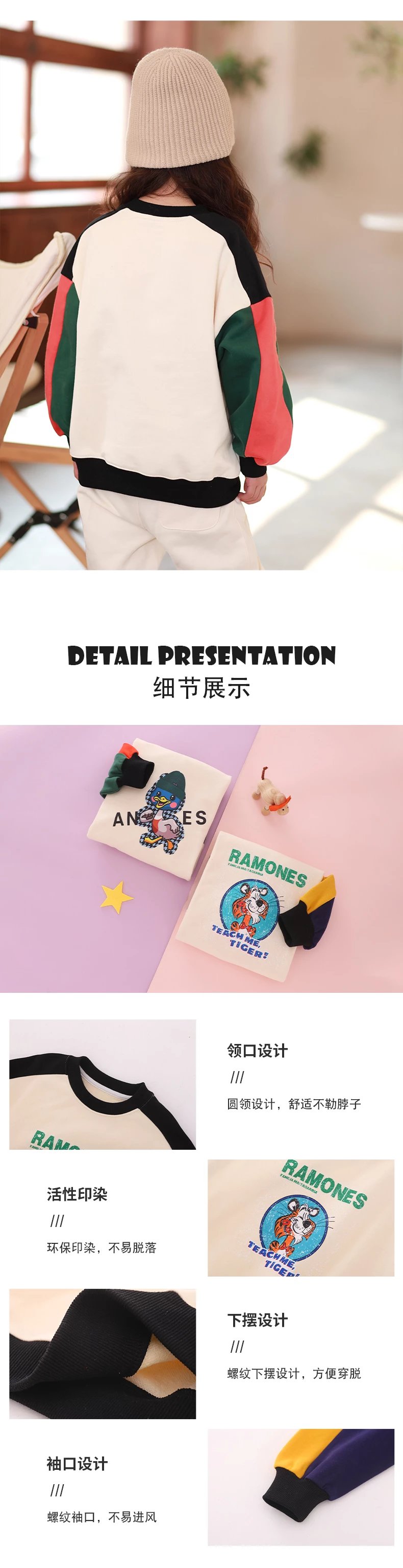 24反季清仓 龙之涵卫衣卫裤综合 奶酷印花系列卫衣  设计感撞色袖卫衣 宽松短款系列卫衣 蓬蓬袖邻家女孩卫衣   元气森林卫衣“ 云朵旅行记”休闲卫裤  儿童工装卫裤 商品图8