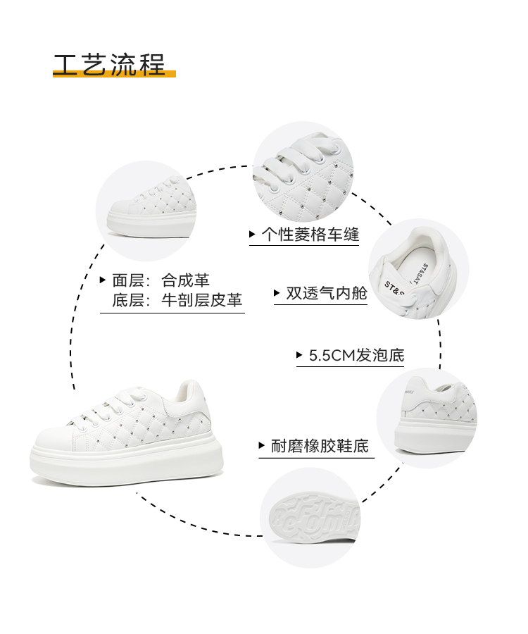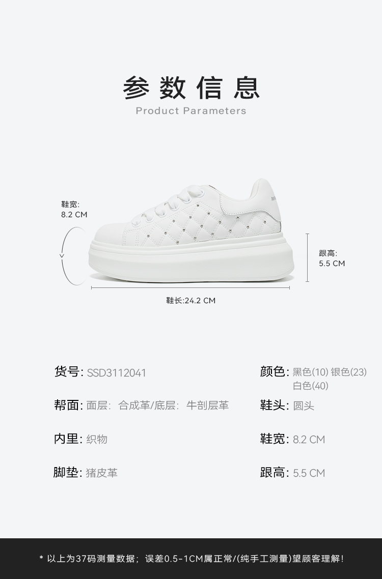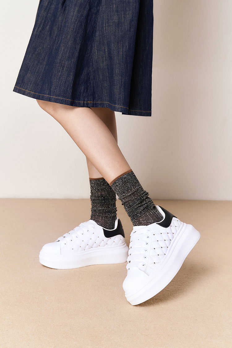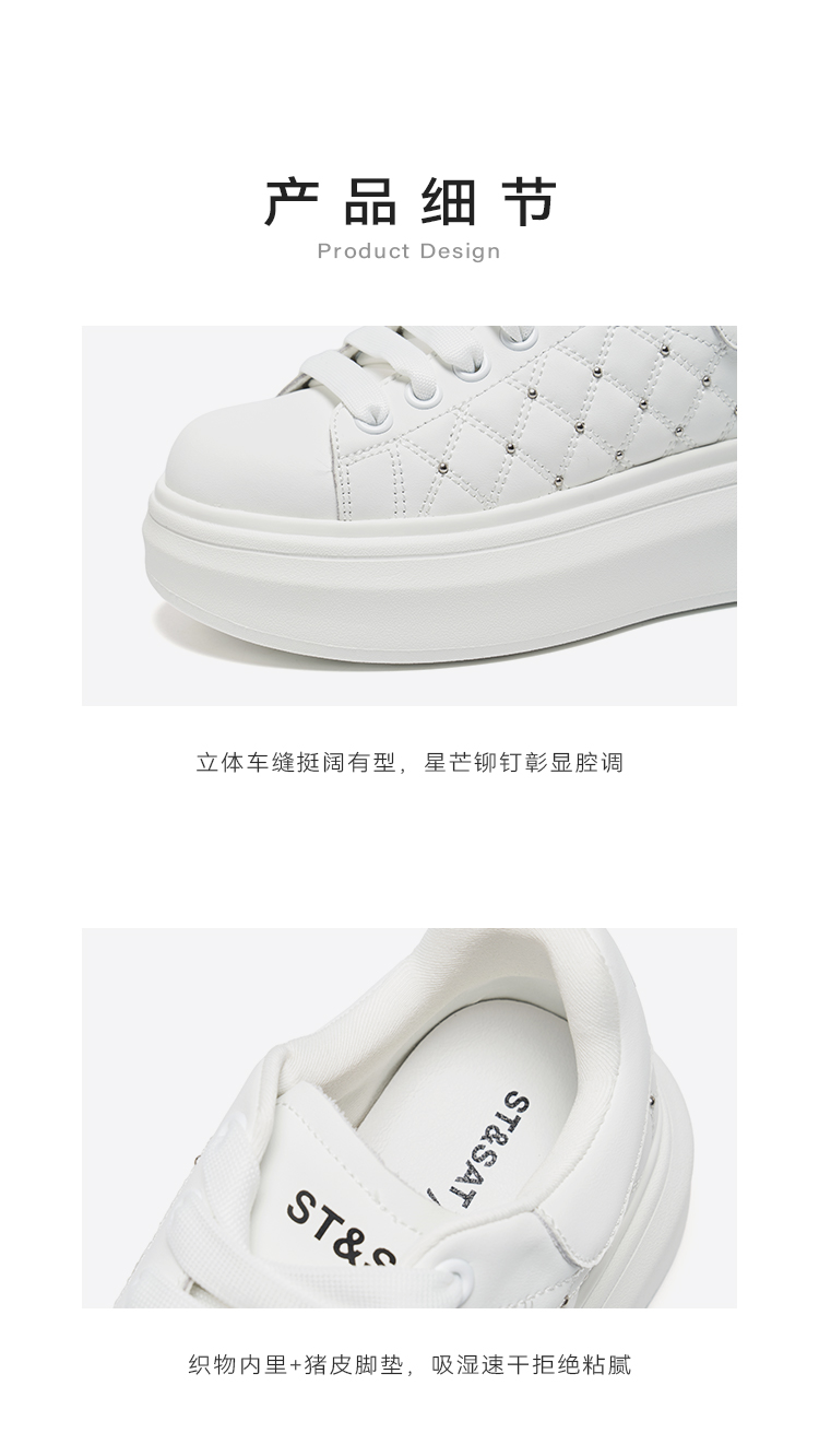 星期六时尚百搭菱格铆钉小白鞋SSD3112041
