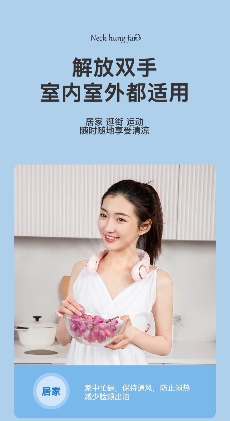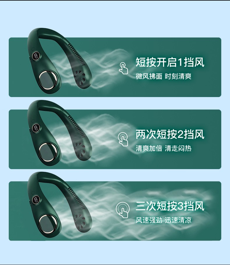 艾青春(AIYOUTH) 挂脖风扇随身便携式USB无叶小风扇手持挂颈懒人长续航静音迷你电风扇N20