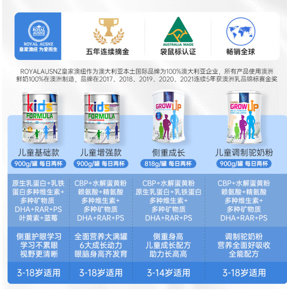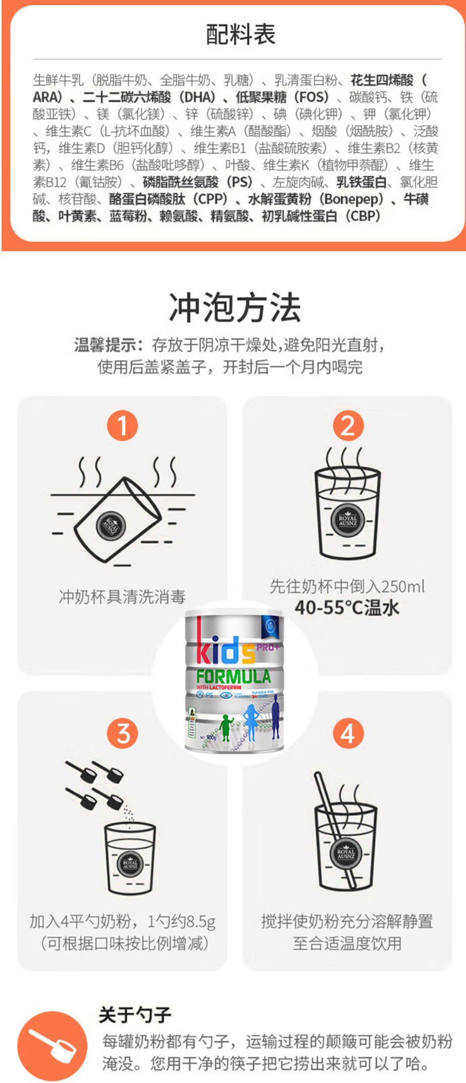28年2月 澳洲ROYALAUSNZ皇家澳纽强化版儿童奶粉900g