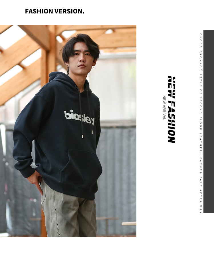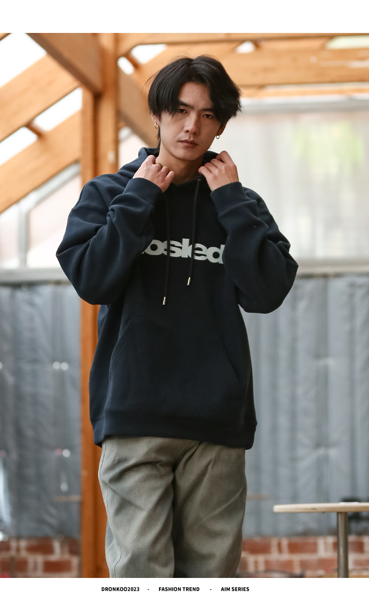 DRONKOO 2025 连帽胸前刺绣大字母细摇粒绒微阔厚卫衣