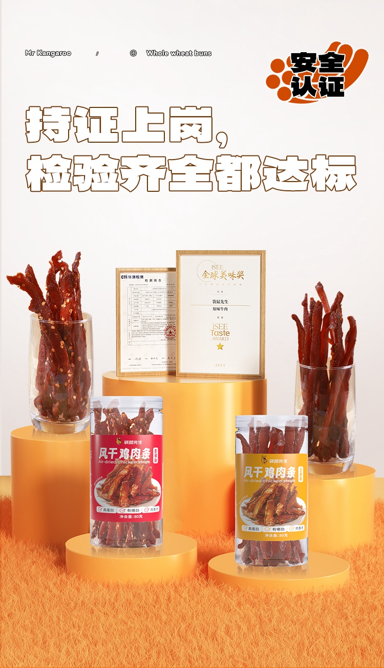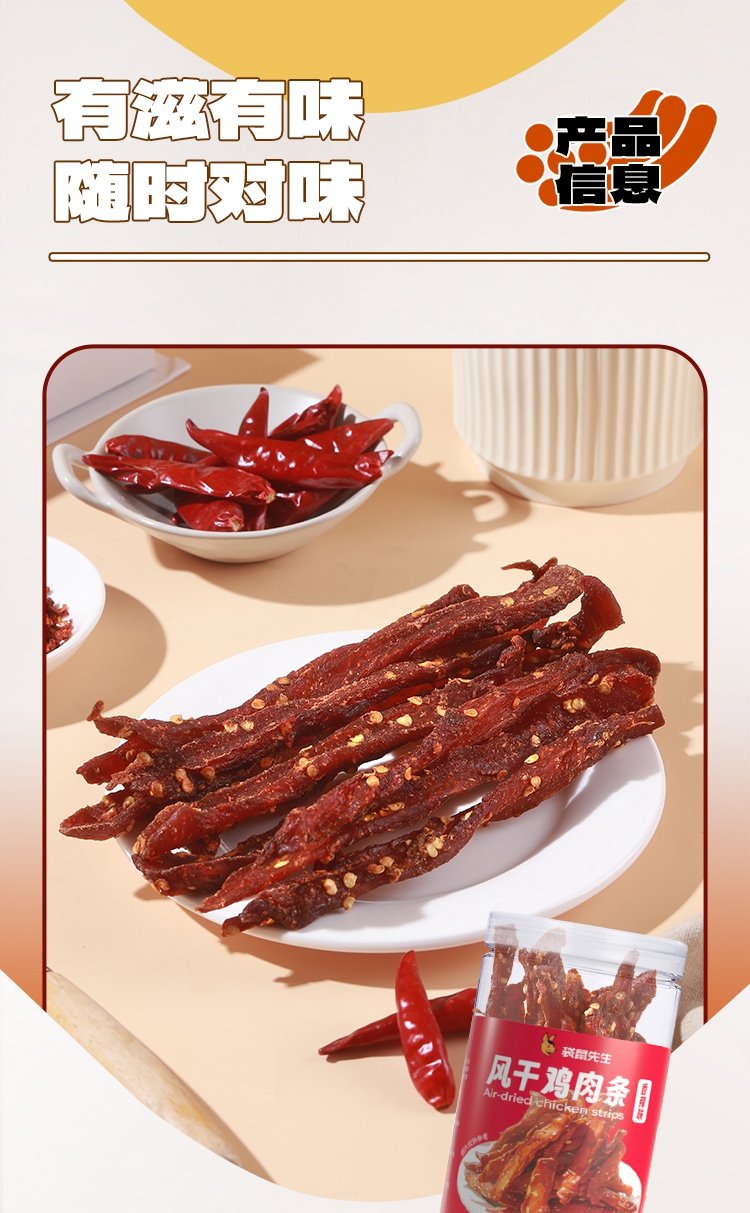 【99元任选10件】袋鼠先生风干鸡肉条/香辣味/五香味/80g(包装升级实际发货为袋装 克重不变)