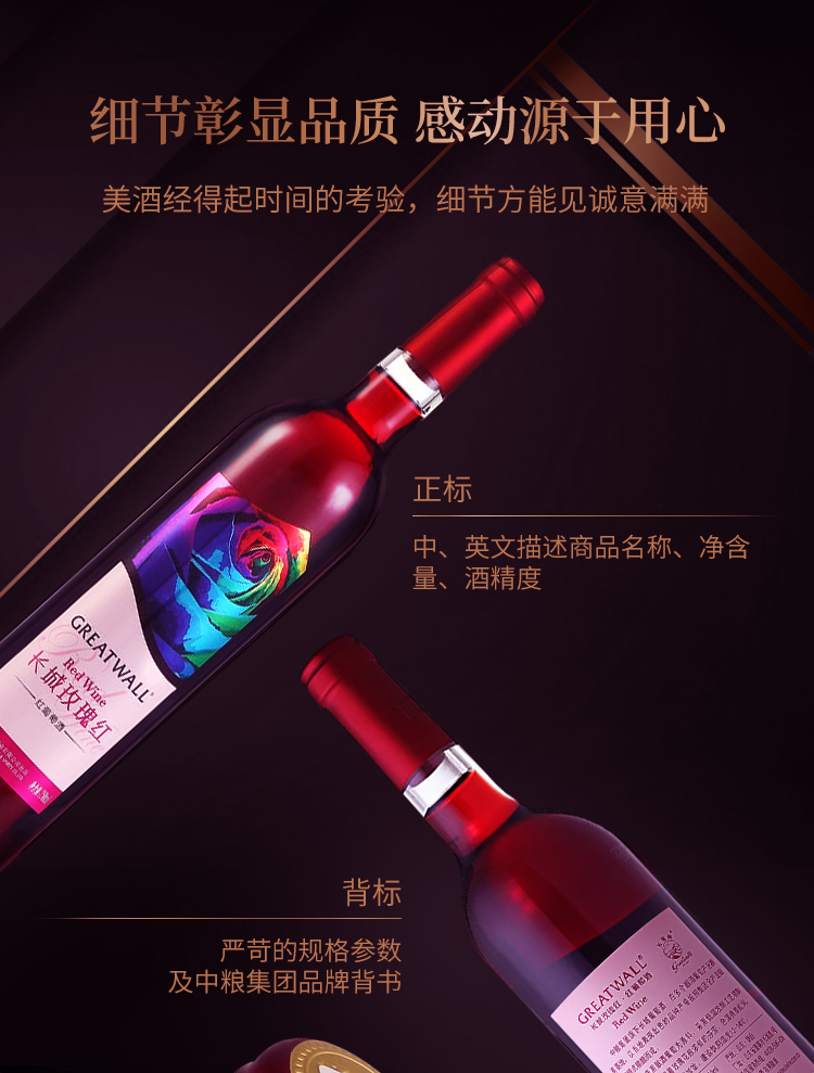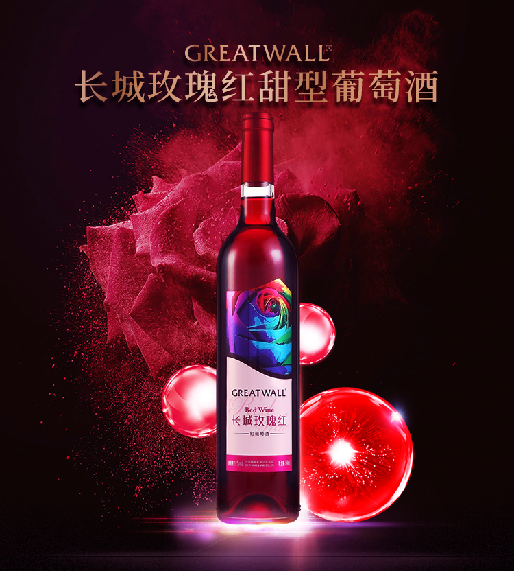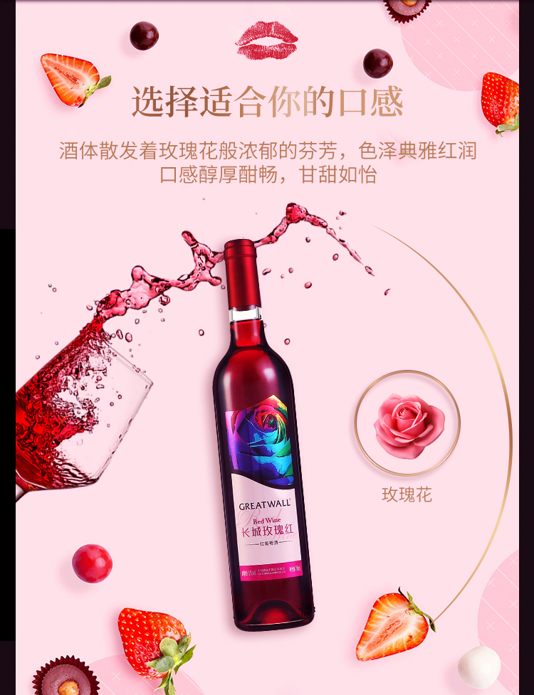 长城 玫瑰红甜型葡萄酒 750ml 单瓶装 中粮出品